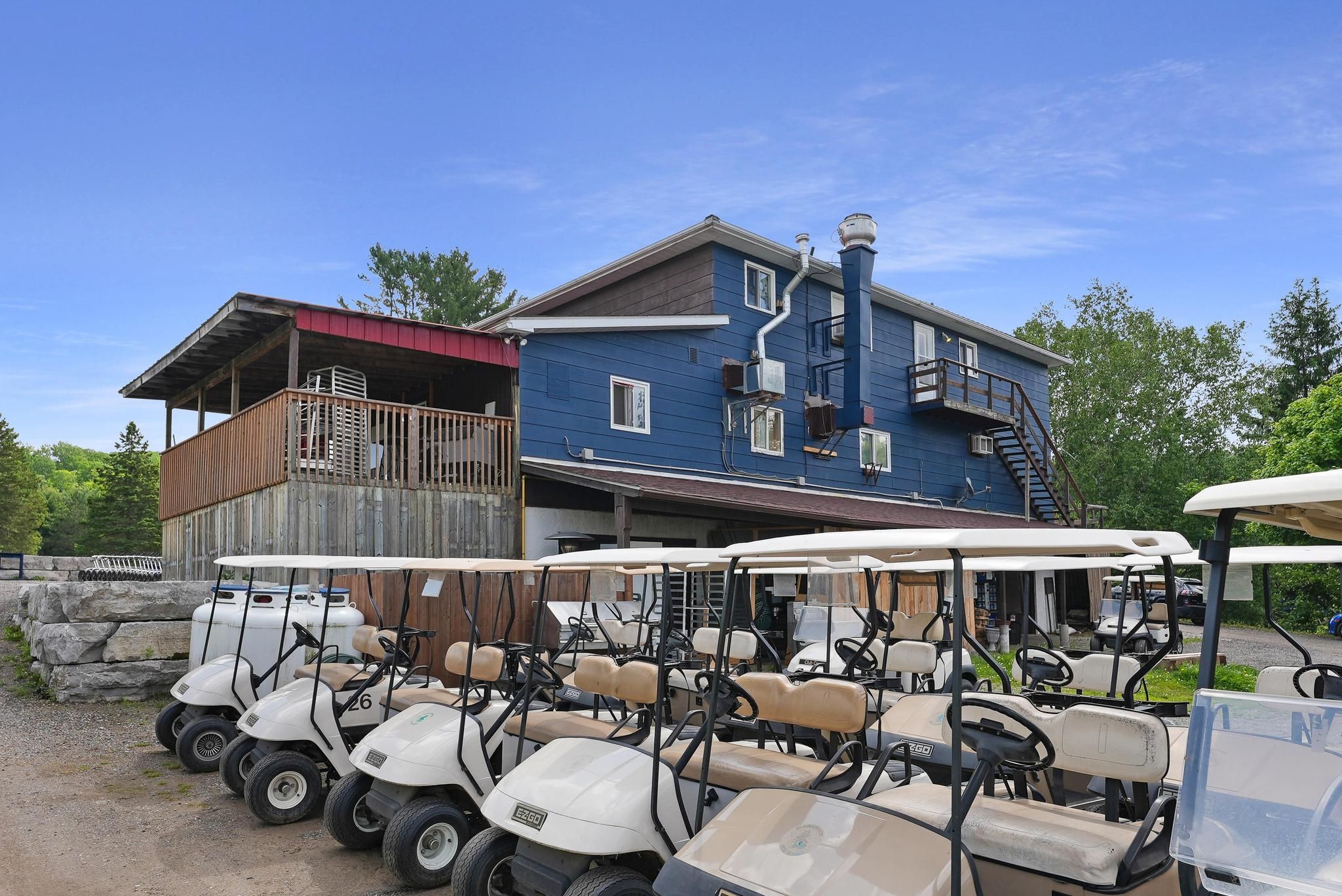 A unique offering. The gull river golf club has been a staple in the community of minden for a very long time. The beautifully scenic course winds around the gull river with over 2,200 feet of shoreline and is a favourite among locals and visitors alike. Offering 9 exceptional holes of golf, par 35, and includes a pro shop, putting green, chipping area and driving range. Mulligan's restaurant and patio (leased) is licensed for 150 people. Also included? A 3 bdrm. Apartment above the restaurant, a 6 bedroom, 3 bath house, two 2-bedroom cottages and a 1-bedroom cottage - all provide additional revenues to the property. The 3 cottages have a great view of beaver creek. The course hosts many tournaments and special events throughout the season. Outbuildings include a garage, a mechanical repair building and additional storage shed and the main building offers 2 attached garages behind. This is your opportunity to own a local treasure nestled in the heart of minden and the haliburton highlands.