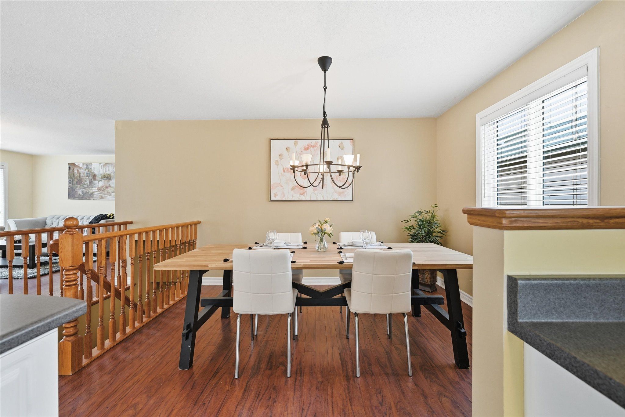 • Open concept layout with updated flooring and natural light throughout.