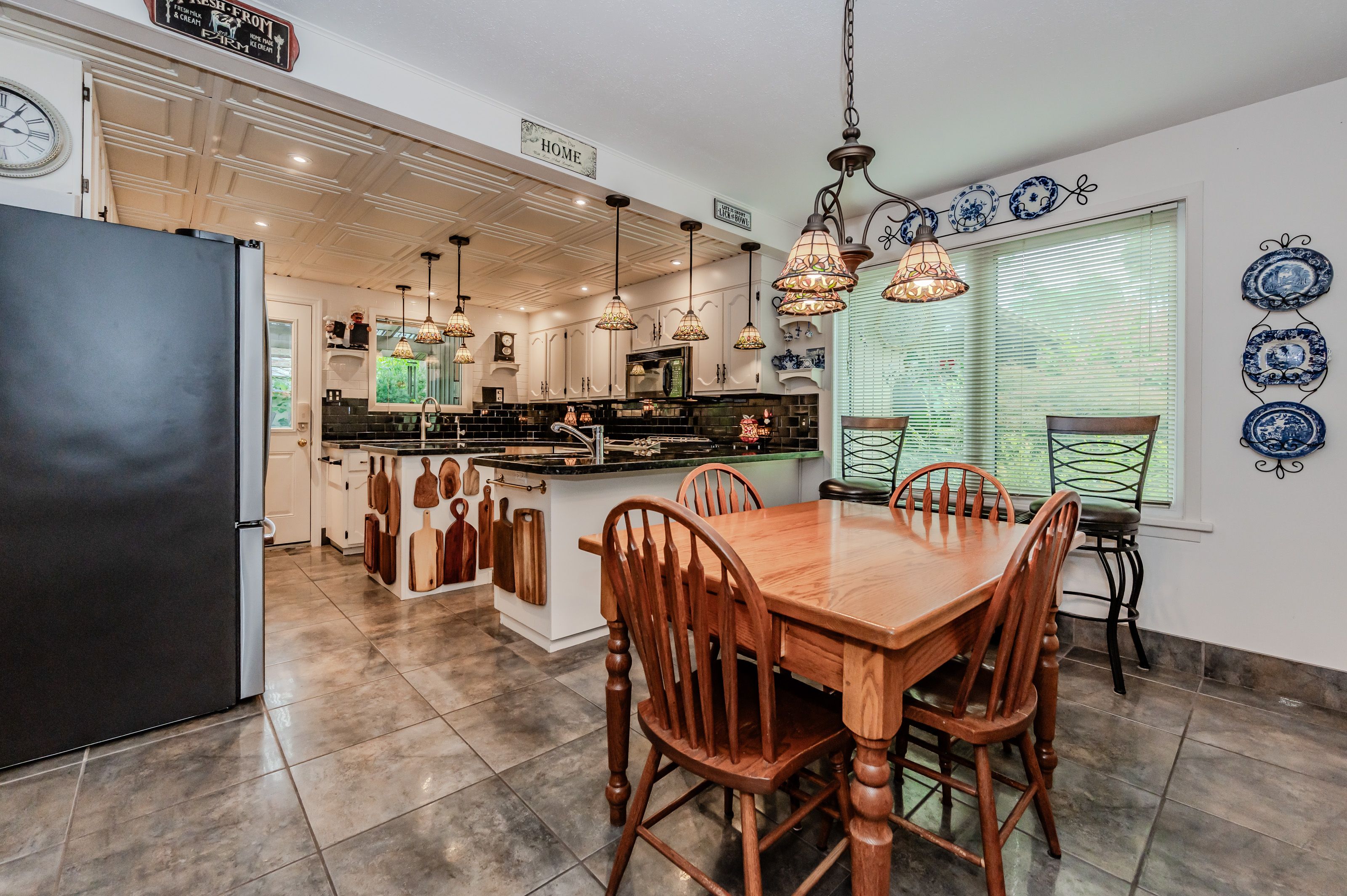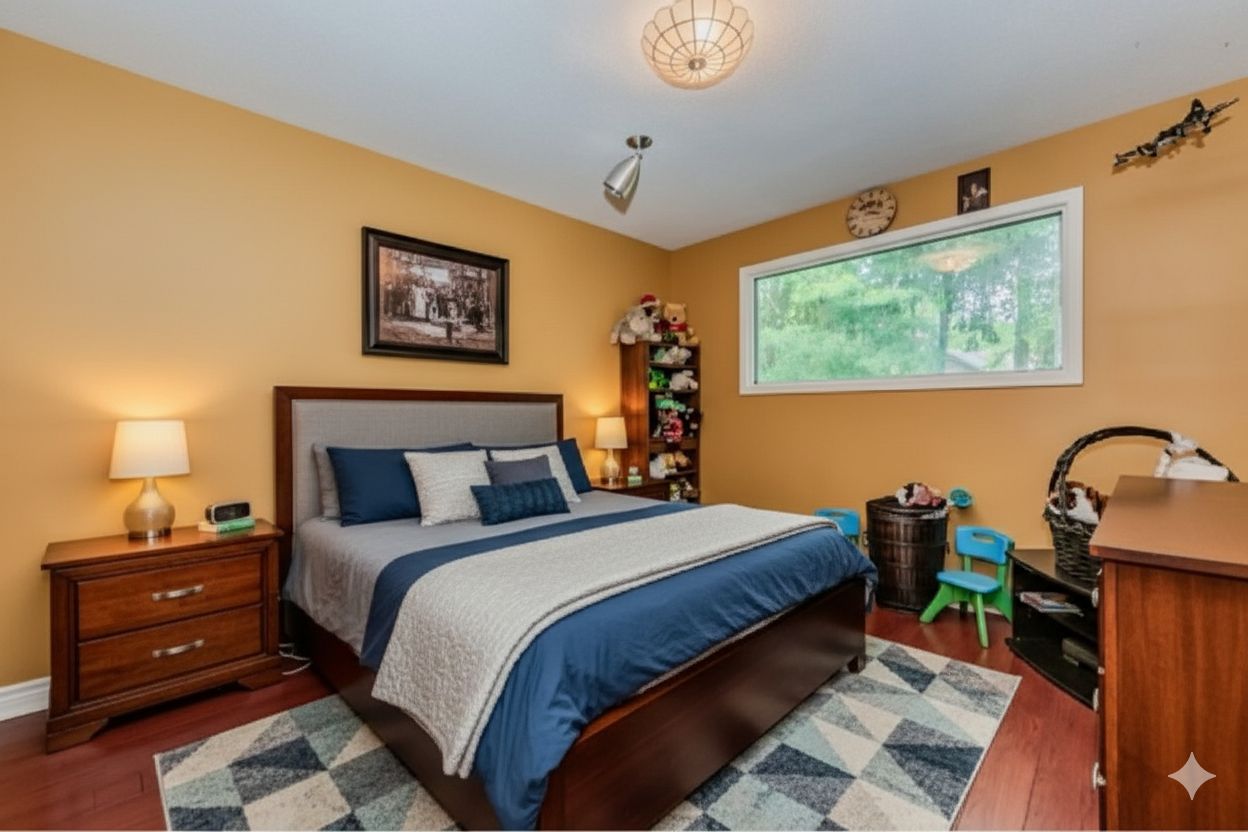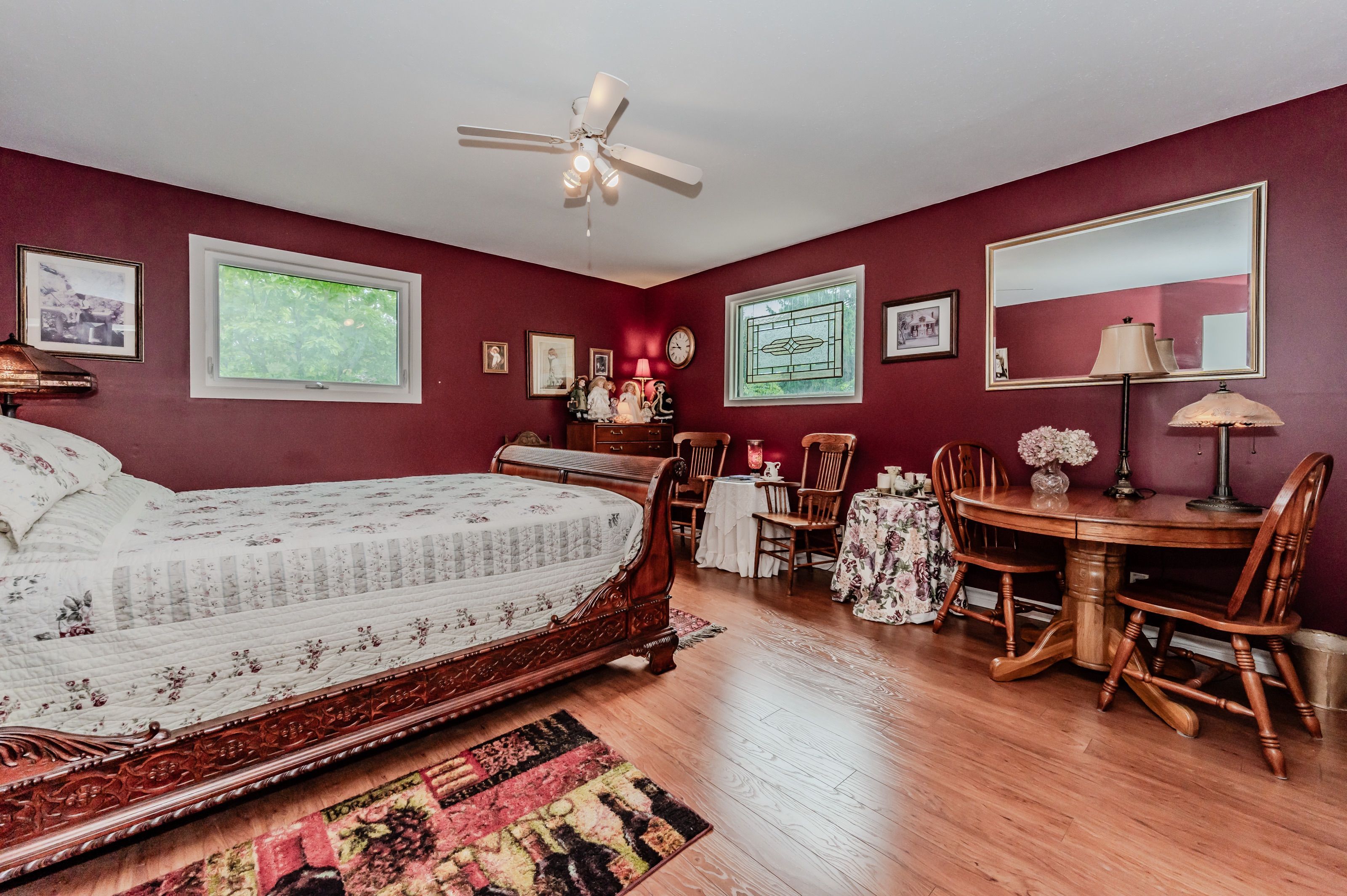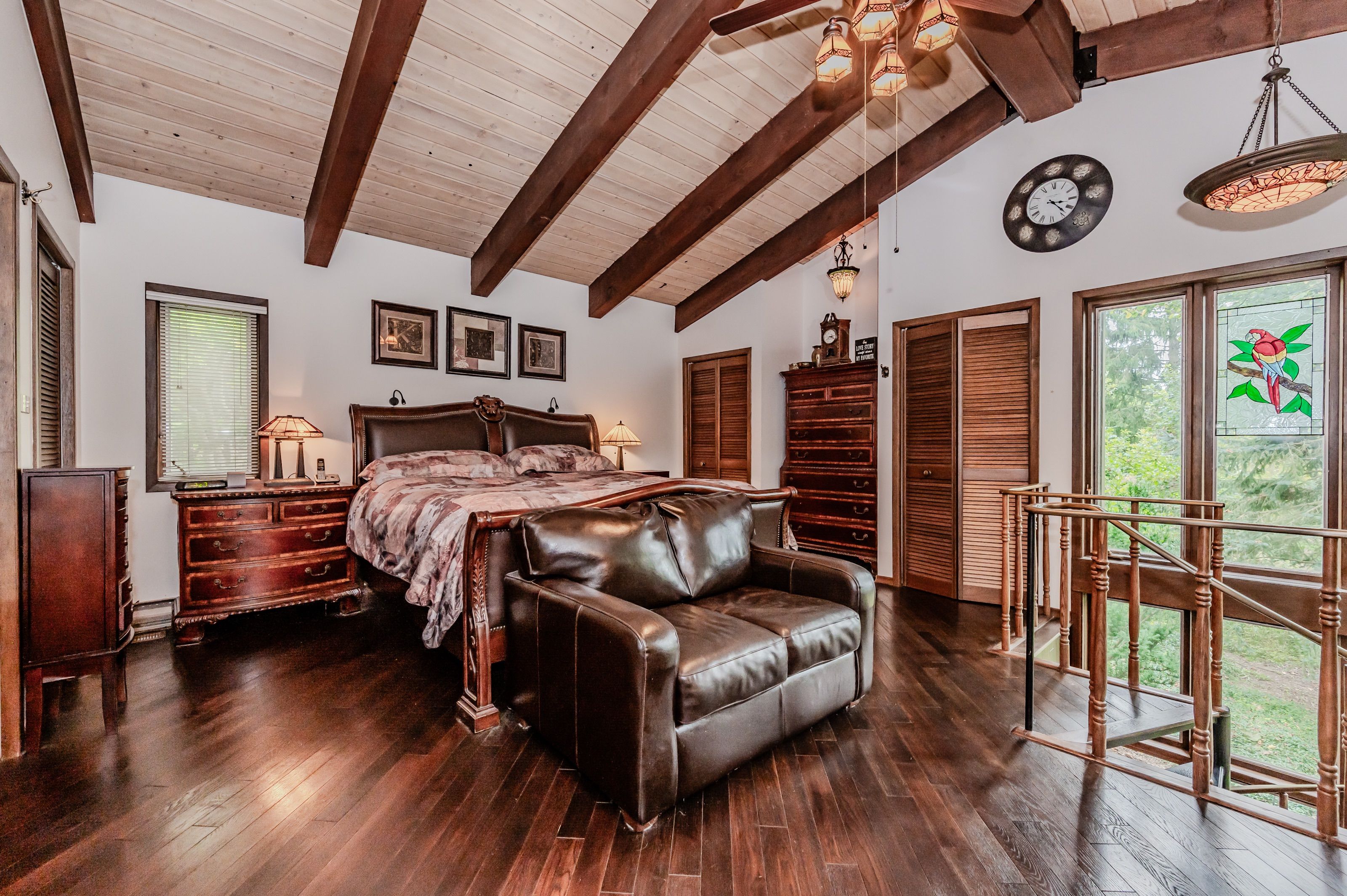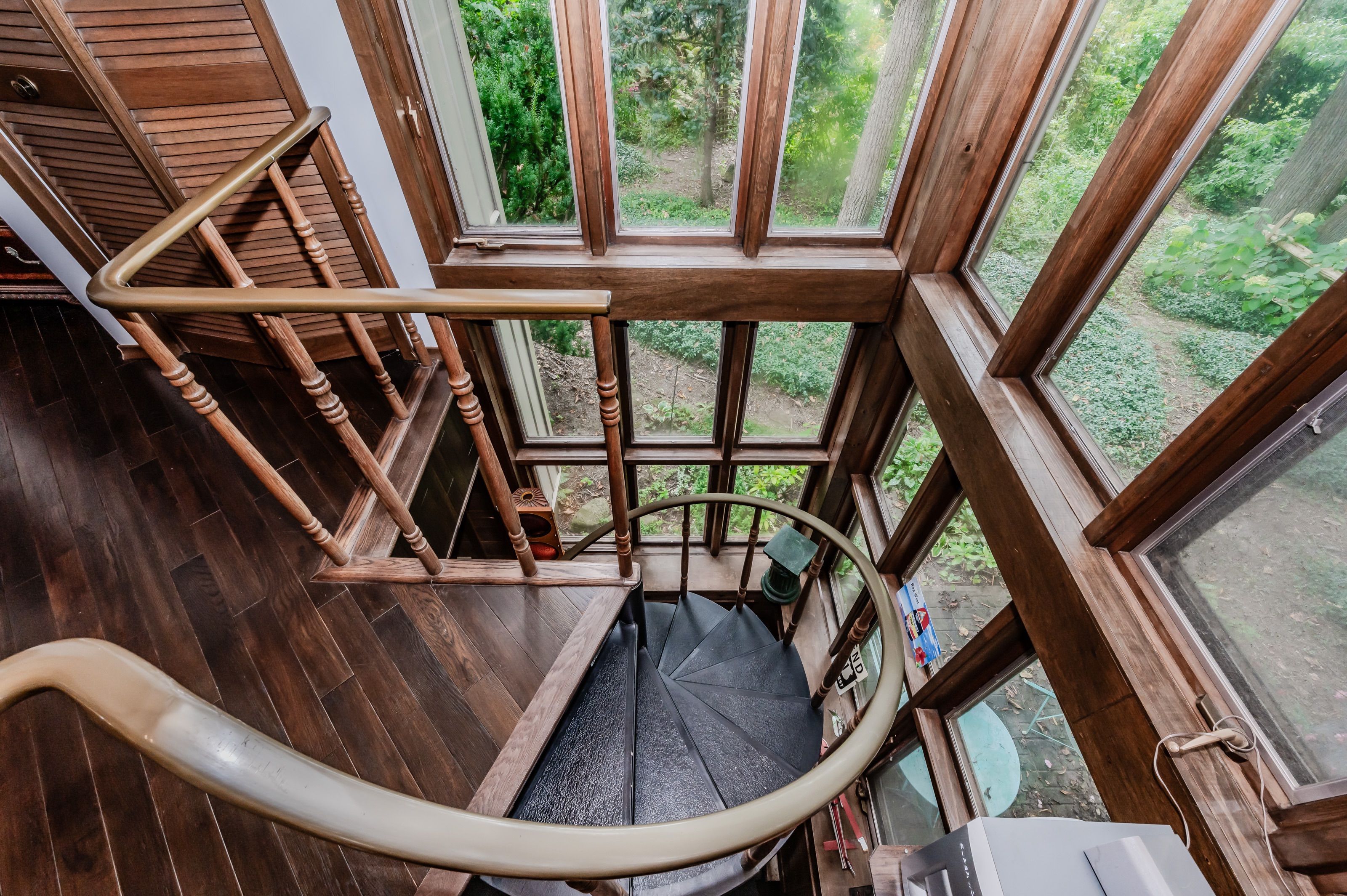 Rare find! Located on a stunning 1. 11 acre property, this unique home offers a postcard setting of singing pines, flowering trees, ponds, streams, an inviting inground pool and beautiful gardens. Step into the spacious foyer and to the left you'll find the serene primary suite addition (1983) featuring sloped ceilings, generous closet space, a spa-like ensuite, and a dramatic spiral staircase framed by windows that leads to the finished basement. The warm and welcoming kitchen is the room where your family will head for when they come home. The black granite counters contrast nicely with the white cabinetry, and there's lots of room for multiple people to cook with 2 sinks and a large island-perfect for casual family gatherings. Off the kitchen is a convenient powder room and laundry area. Enjoy garden views from the elegant formal dining room. A few steps up brings you to the large living room with cathedral ceilings and a cozy wood-burning fireplace-ideal for entertaining. From here, step into the enclosed, wrap-around sunroom deck that overlooks the magnificent yard. Travel up one more level to find three very spacious bedrooms and a full bath. The movie and sports crowd will love to relax in the lower-level family room with a wood stove, large windows, french doors to the patio and pool, and an adjacent full bathroom. The basement offers endless possibilities with space for a games room, home gym, hobbies, and ample storage. A bonus feature is the huge workshop with its own exterior entrance-great for hobbyists or home-based projects. With five finished levels, this home is ideal for large or multi-generational families. Magnificent sunsets!