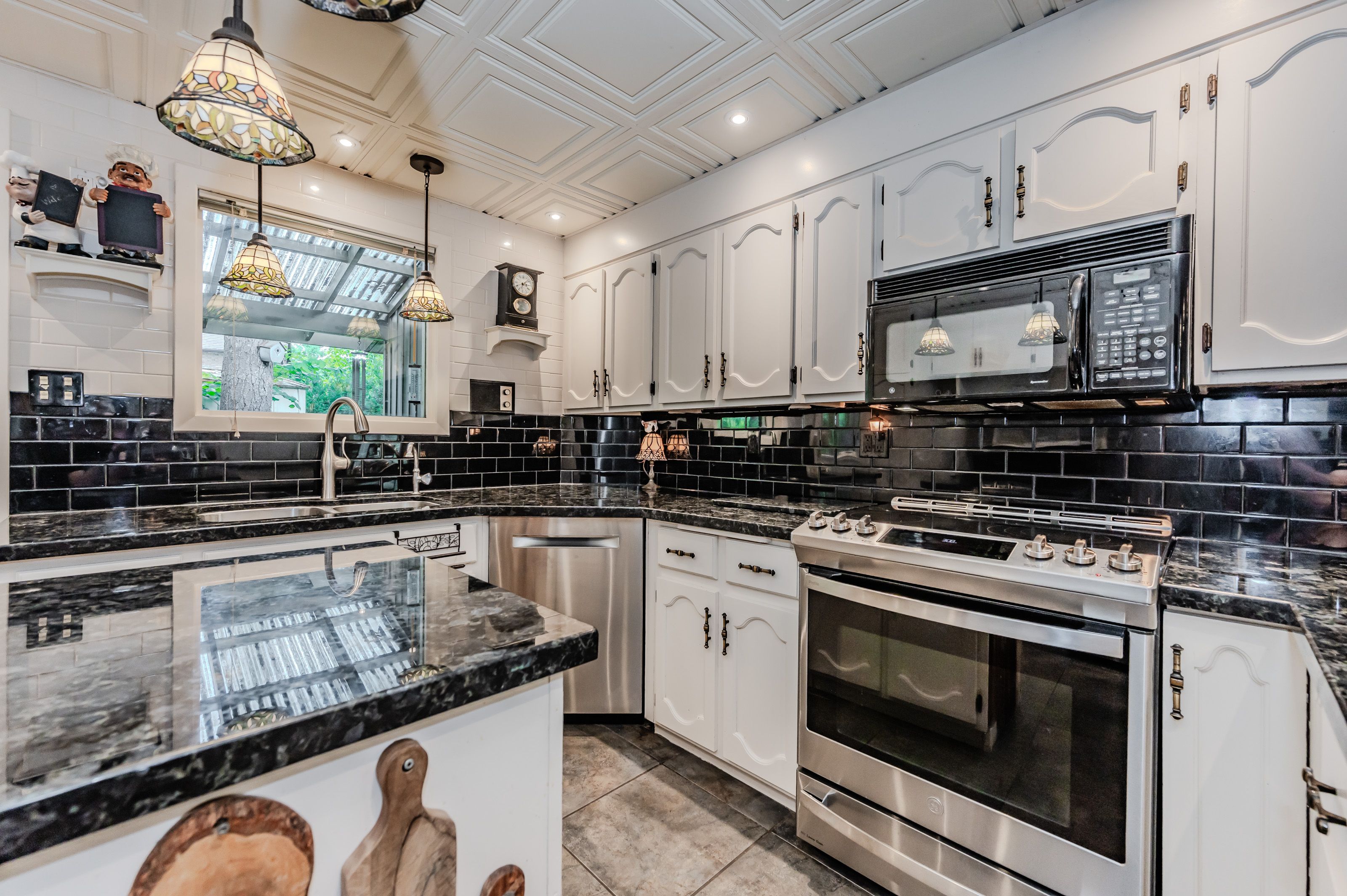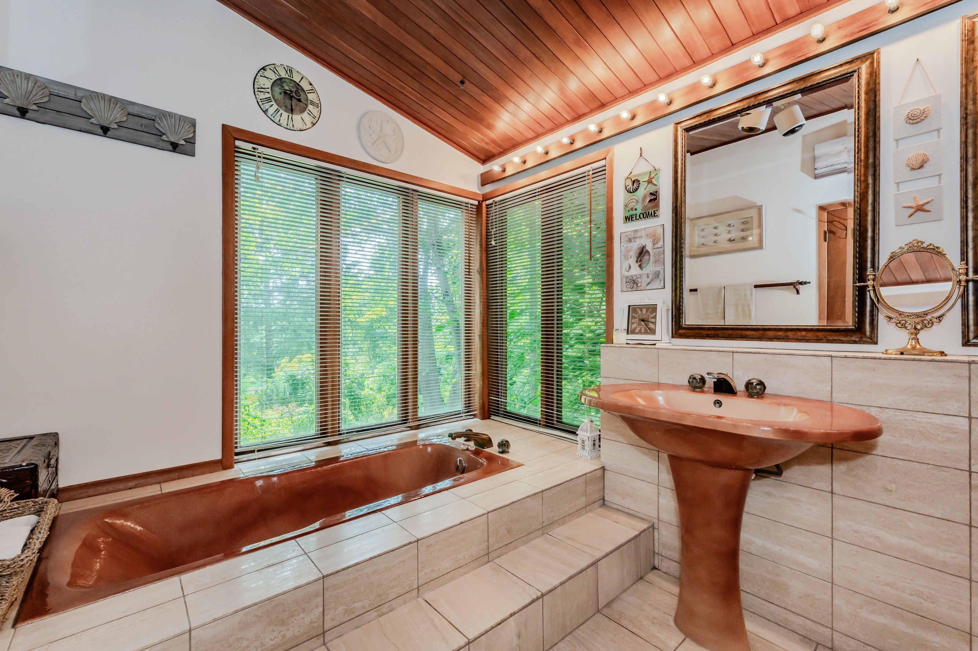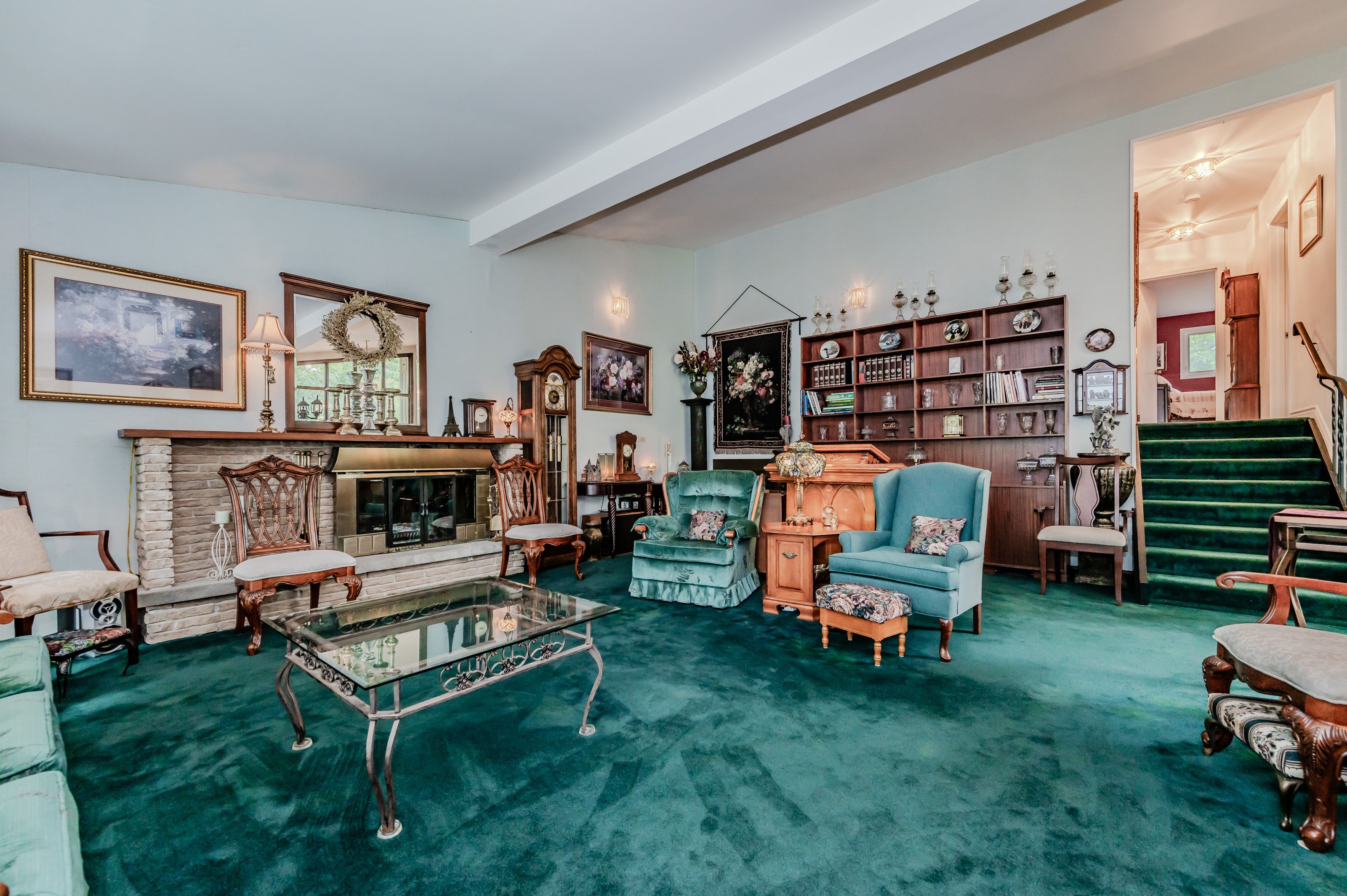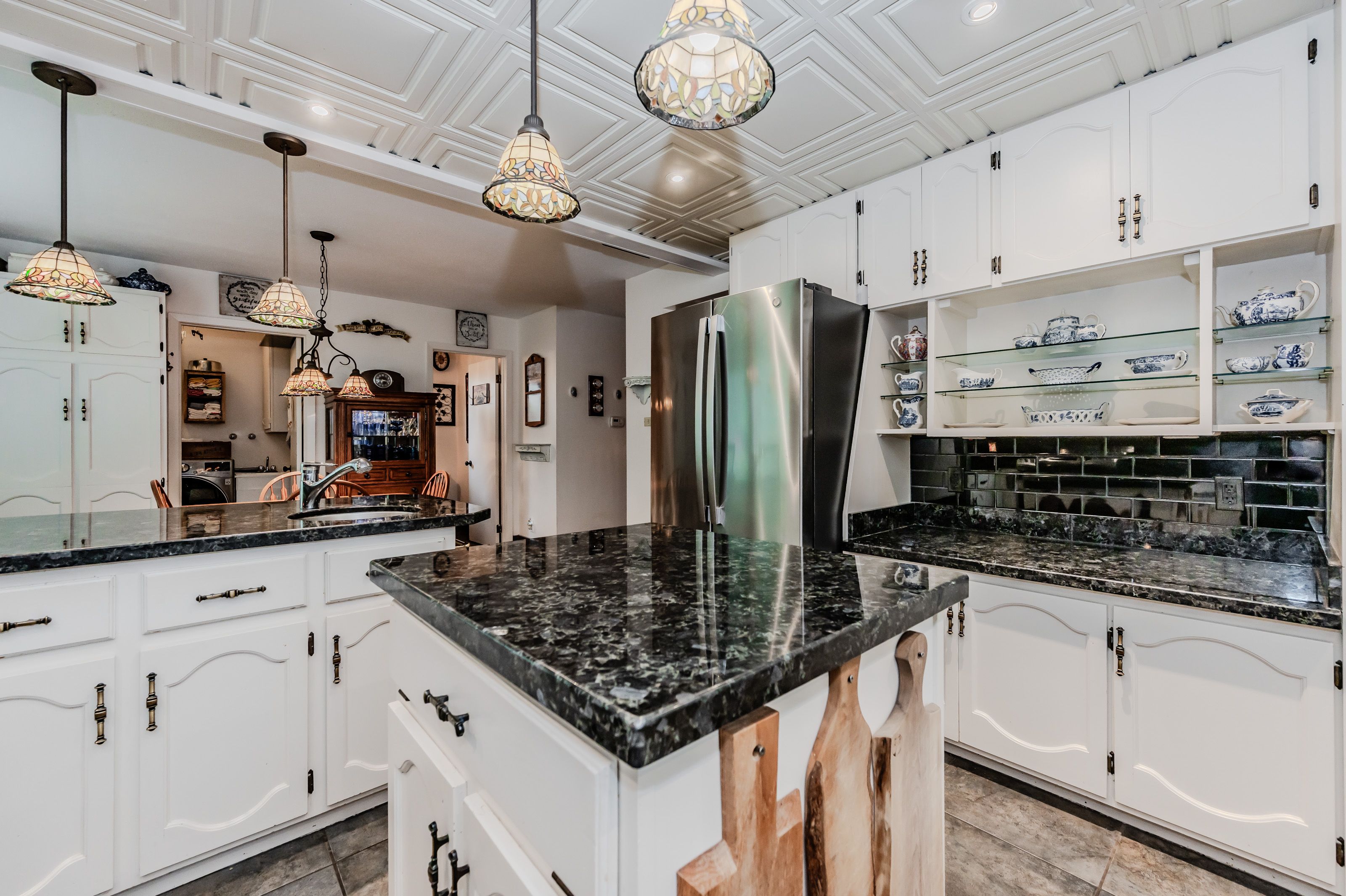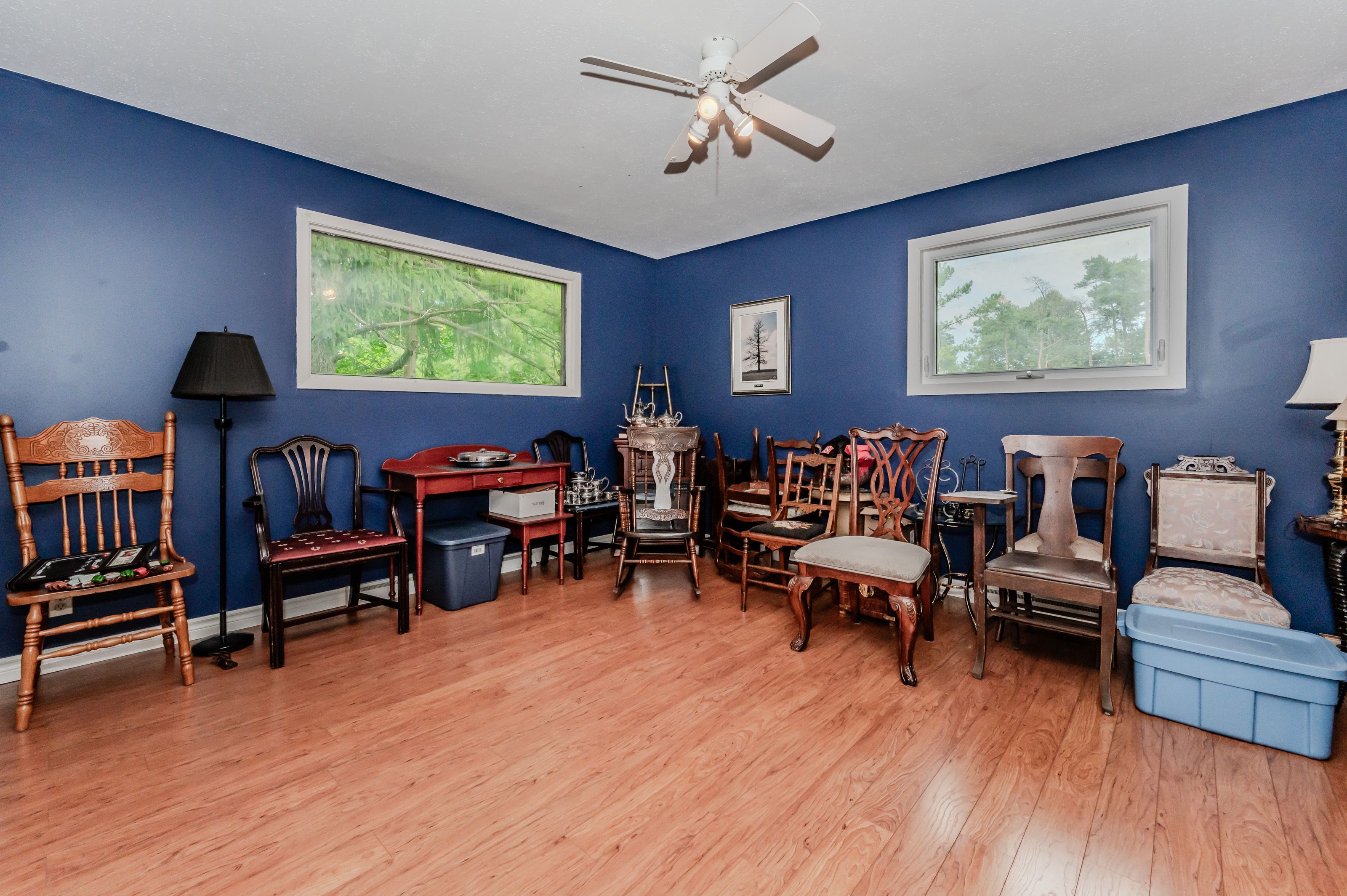 Rare find! Located on a stunning 1. 11 acre property, this unique home offers a postcard setting of singing pines, flowering trees, ponds, streams, an inviting inground pool and beautiful gardens. Step into the spacious foyer and to the left you'll find the serene primary suite addition (1983) featuring sloped ceilings, generous closet space, a spa-like ensuite, and a dramatic spiral staircase framed by windows that leads to the finished basement. The warm and welcoming kitchen is the room where your family will head for when they come home. The black granite counters contrast nicely with the white cabinetry, and there's lots of room for multiple people to cook with 2 sinks and a large island-perfect for casual family gatherings. Off the kitchen is a convenient powder room and laundry area. Enjoy garden views from the elegant formal dining room. A few steps up brings you to the large living room with cathedral ceilings and a cozy wood-burning fireplace-ideal for entertaining. From here, step into the enclosed, wrap-around sunroom deck that overlooks the magnificent yard. Travel up one more level to find three very spacious bedrooms and a full bath. The movie and sports crowd will love to relax in the lower-level family room with a wood stove, large windows, french doors to the patio and pool, and an adjacent full bathroom. The basement offers endless possibilities with space for a games room, home gym, hobbies, and ample storage. A bonus feature is the huge workshop with its own exterior entrance-great for hobbyists or home-based projects. With five finished levels, this home is ideal for large or multi-generational families. Magnificent sunsets!