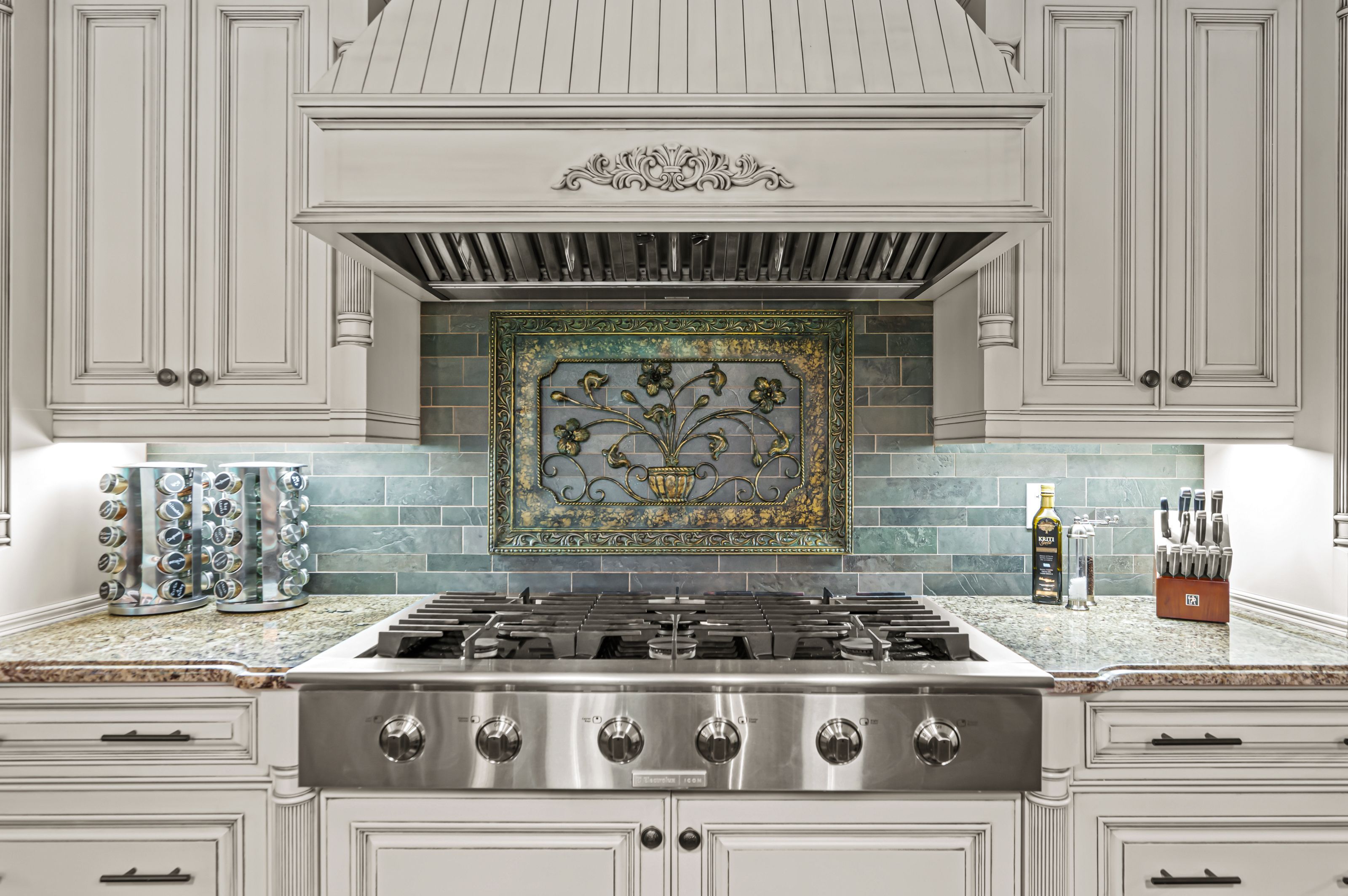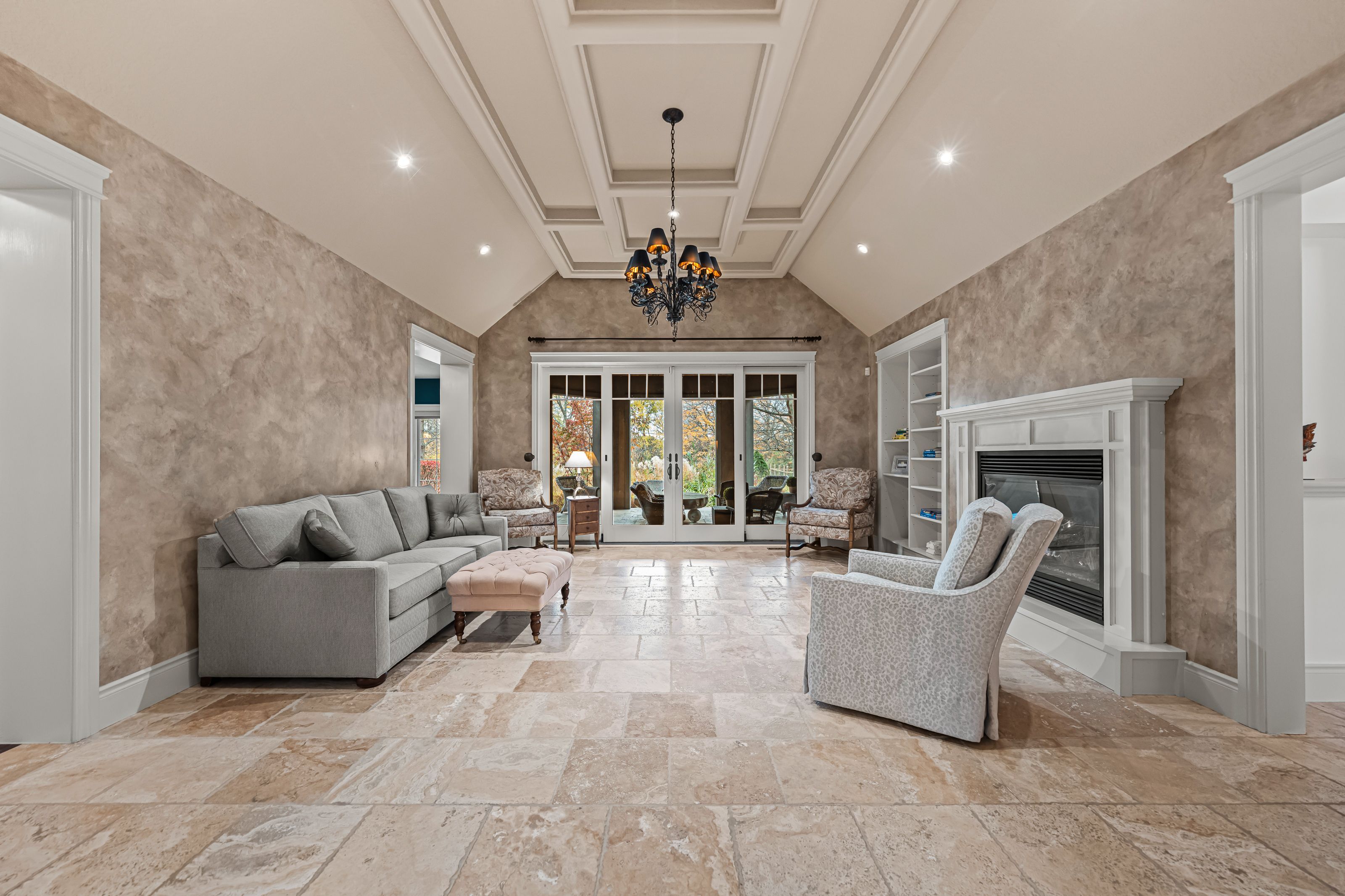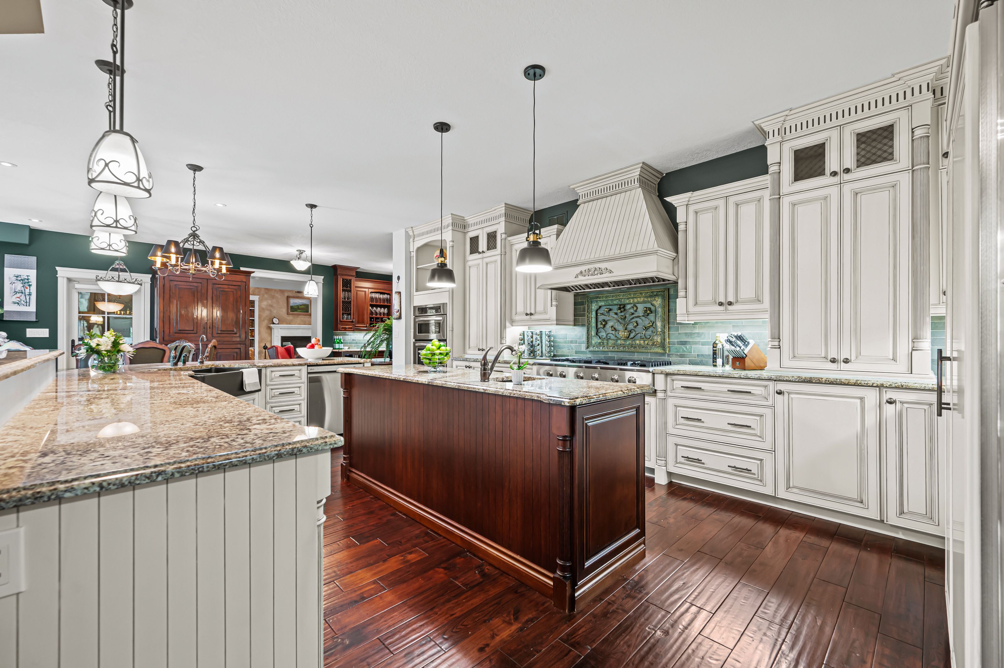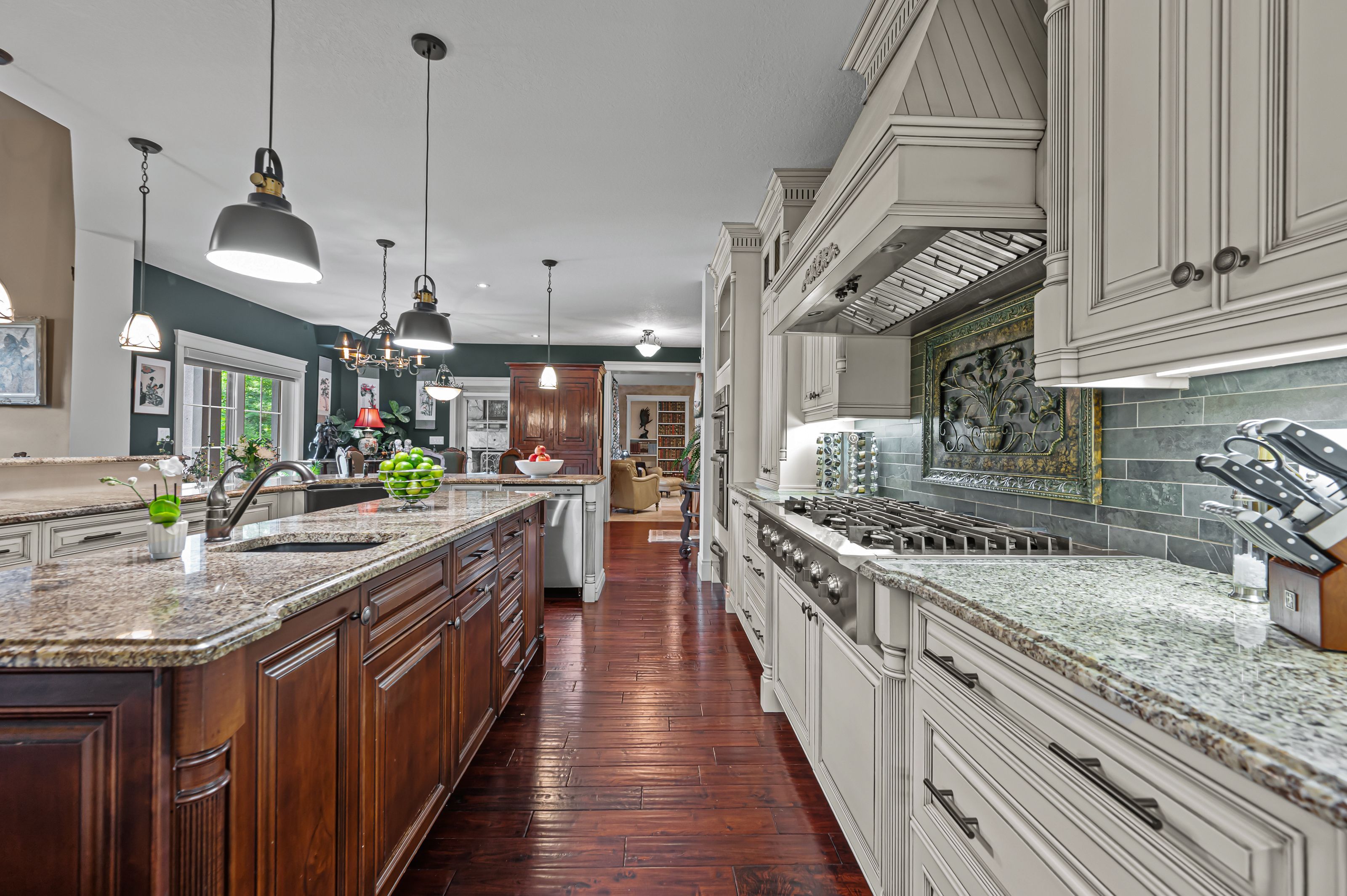 • Custom chef's kitchen with high-end appliances and an oversized island.