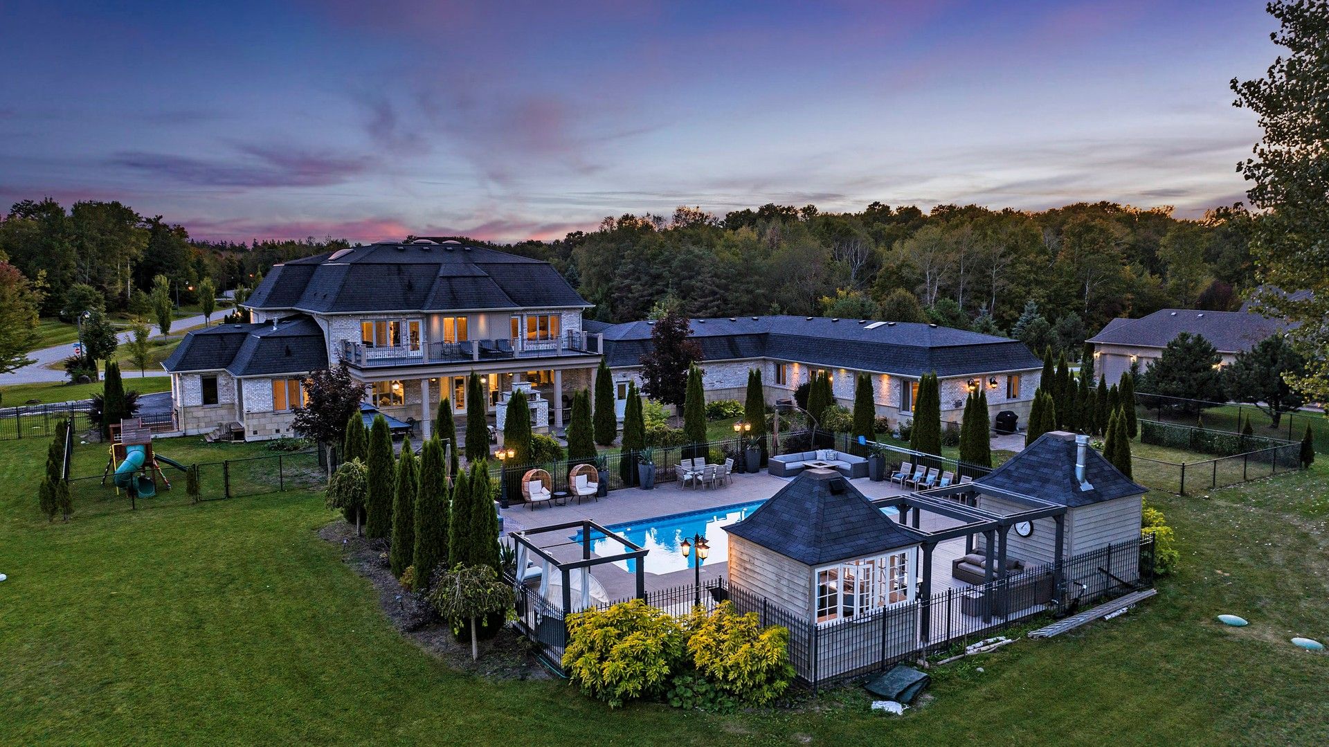 A rare and remarkable find. This multi-generational french chateau style home offers over 11636sqft of luxury living space with two luxury residence, the estate comprises a main house, anattached aprox 2800sqft open concept coach bungalow w/vaulted ceilings & a grand home office. Aseparate lower level nanny-suite w/walkup separate entrance. Extra large home gym, grand livingroom, 4 gas fireplace, 1 electric fire place, gourmet kitchen and spacious family room, anelegant dining, the house has been strategically designed to maximize the awe-inspiring views. This gem sits on 2 acres, flooded with natural light throughout. A rewarding escape, peacefullysituated in the coveted community of camelot estates. Home office w/ vaulted ceiling & separateentry, study room, home theatre. Built/in speakers, wet bar. 2 walk-in custom wine cellars. Bell fibe internet, radiant heated floors, 12 minutes to hwy 404 & 407 & the new old elmstouffville go train station. Enjoy the oasis vacation-style backyard with inground heatedpool, 2 pool cabanas with service kitchen, beer tap, bbq, change rm & 2 pc bath. Too much moreto list. A must see!!!