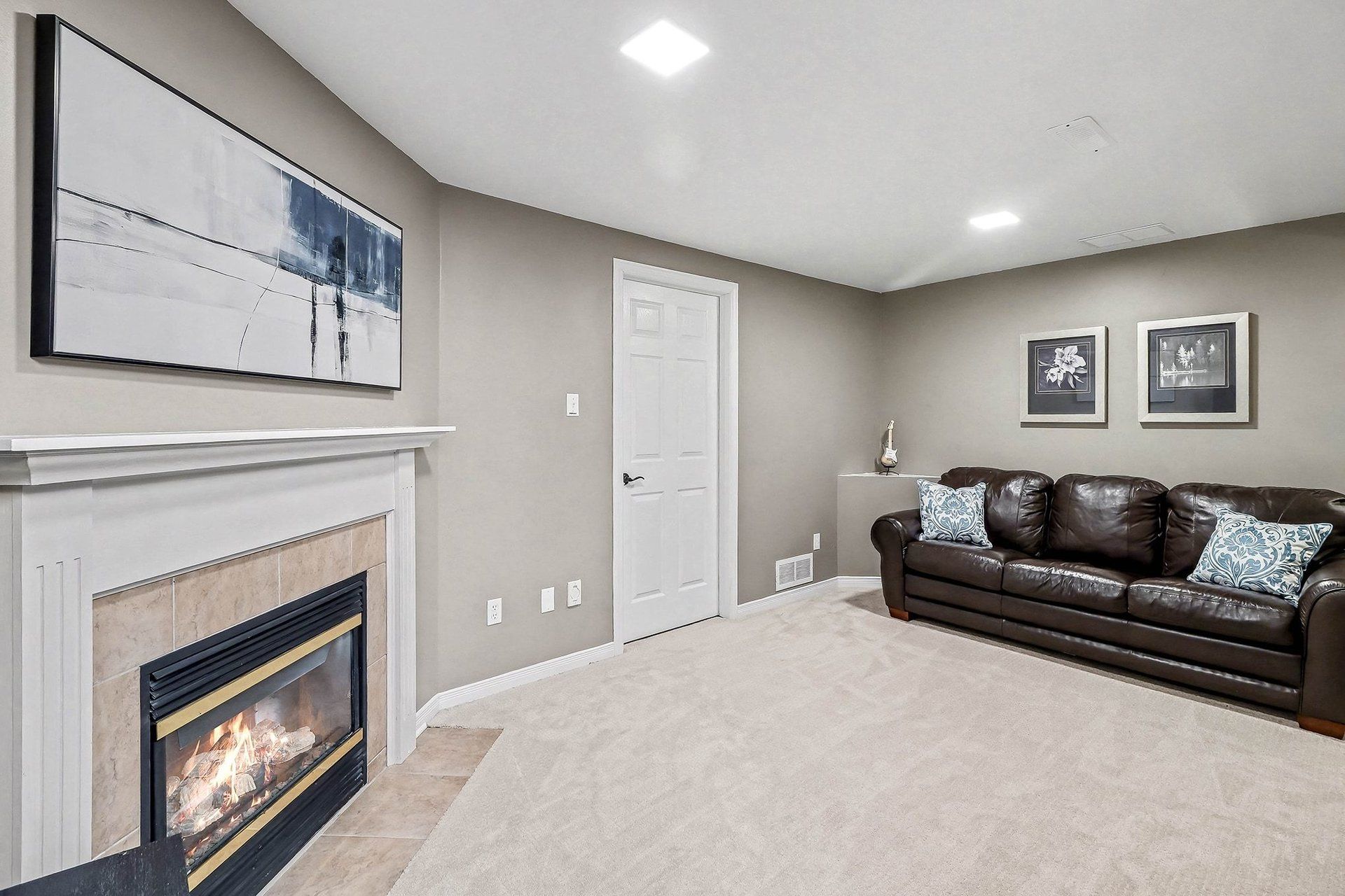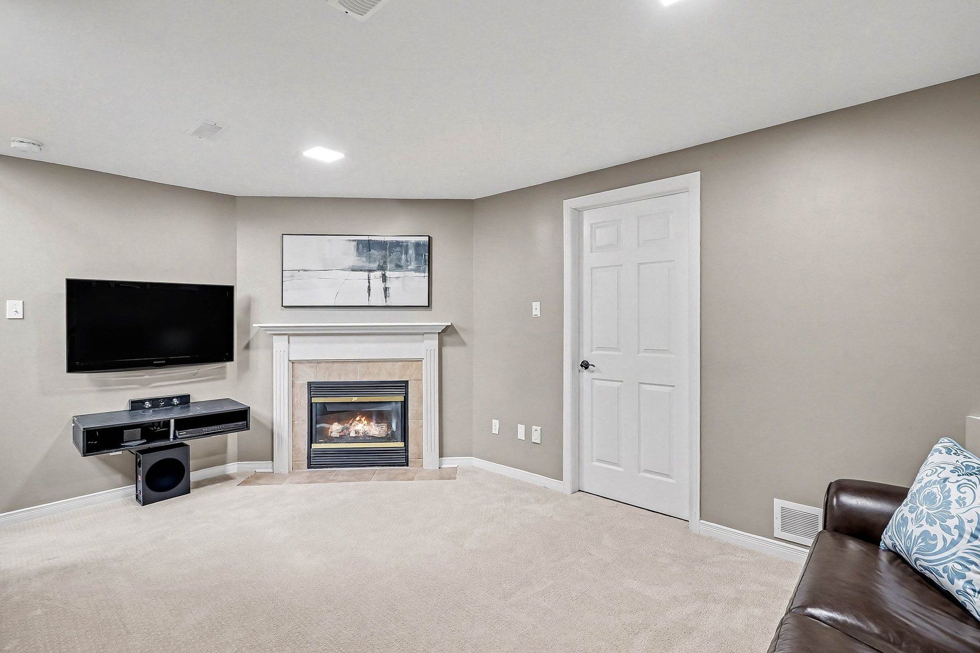 • Cozy lower-level family room with a gas fireplace for relaxation.