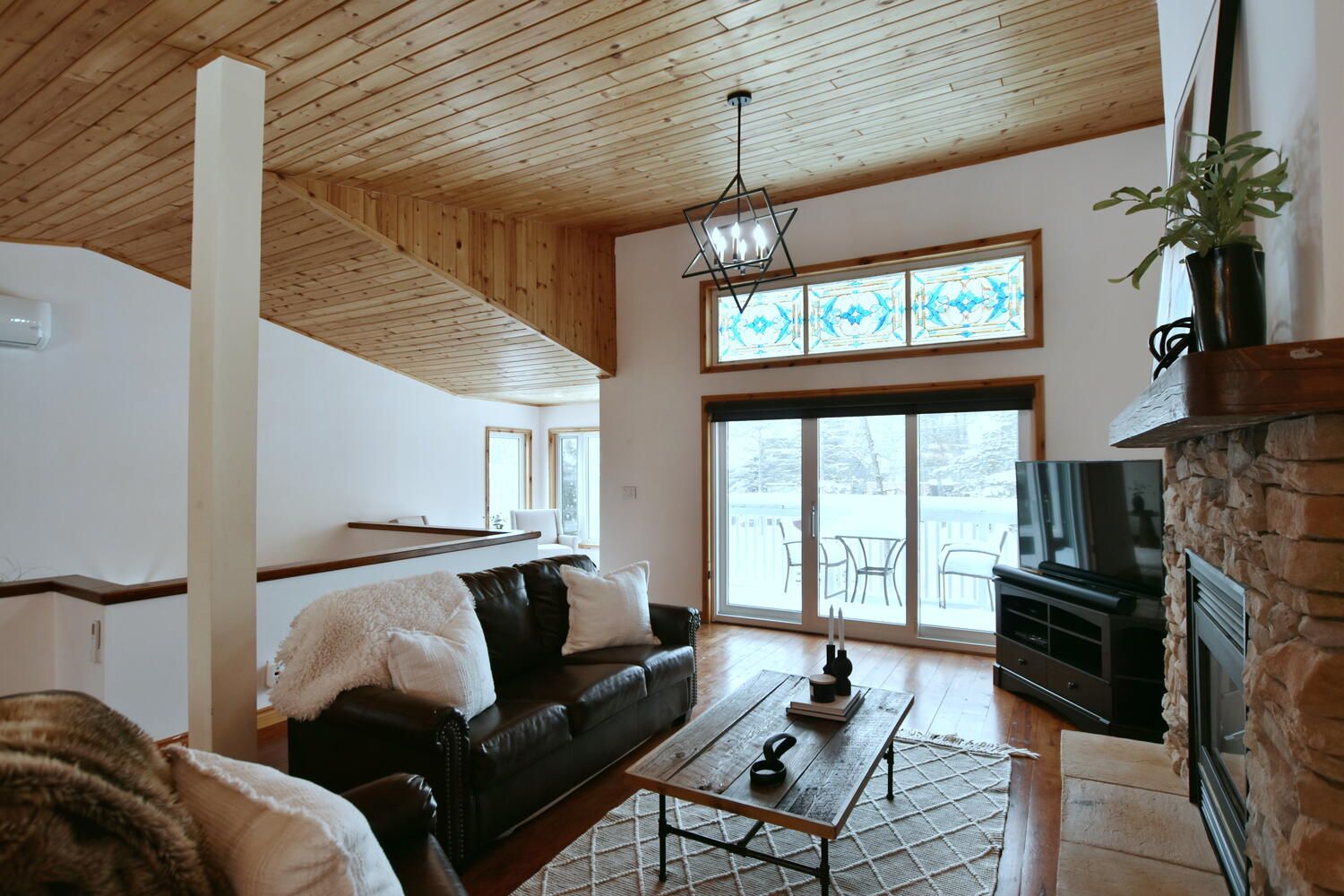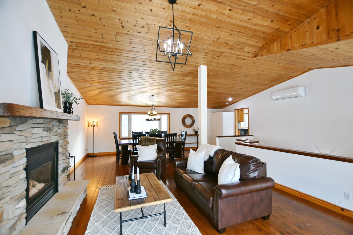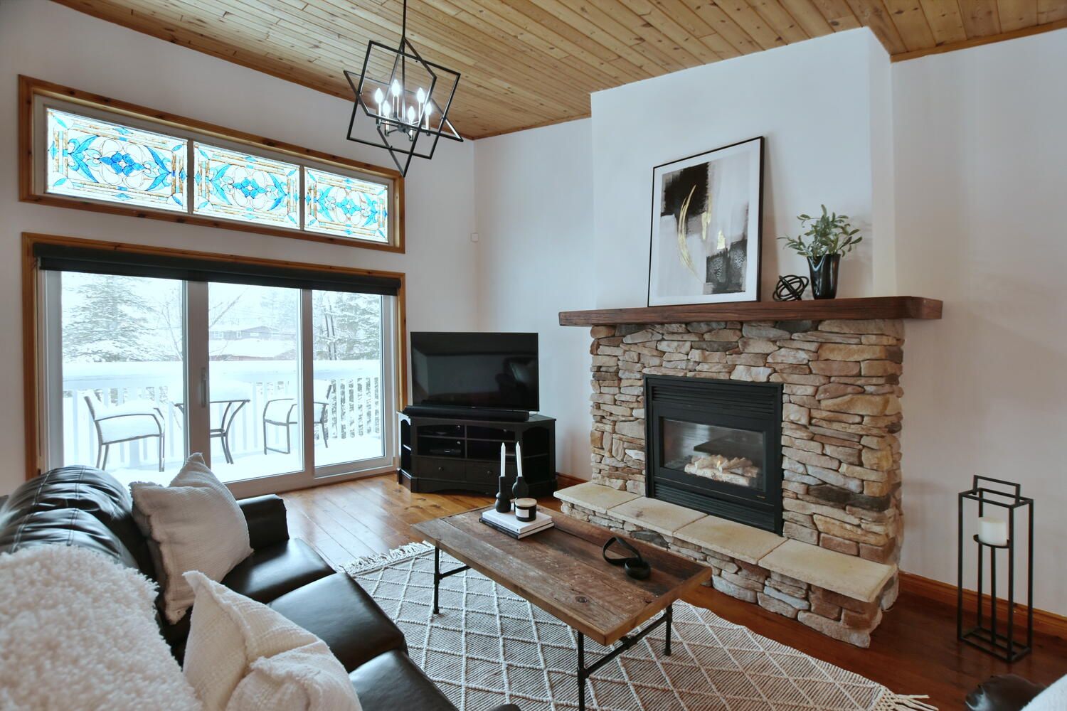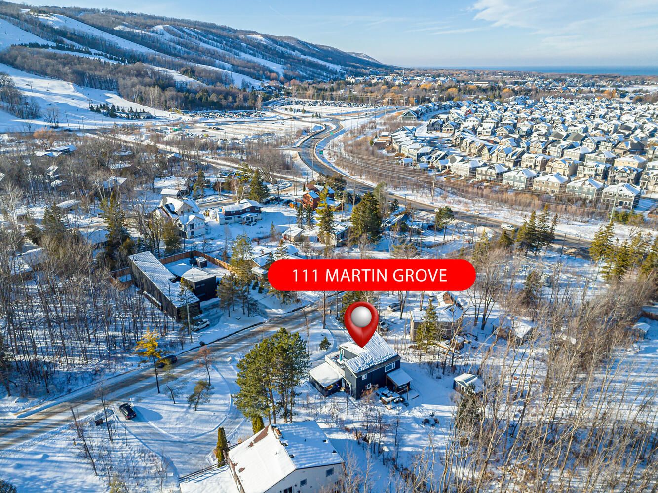 Welcome to 111 martin grove road, a fantastic blue mountain chalet offering approximately 2,100 square feet of well-designed living space, set on a large, private, wooded lot in one of the area's most sought-after locations!! Tucked away among mature trees, this home delivers a true four-season lifestyle with privacy, hill views, and walkability. Thoughtfully designed with a reverse floor plan, the upper level is made for entertaining and relaxing. The open-concept living and dining area features a cozy gas fireplace, generous natural light, and seamless flow to an expansive deck-perfect for après-ski gatherings, summer barbecues, or simply soaking in the spectacular views of blue from the front deck. The main level hosts a spacious primary bedroom with ensuite bath and walk-out, creating a private retreat with easy access to the outdoors. Two additional well-sized bedrooms and a 3-piece bath provide comfortable accommodation for family and guests. Multiple decks at both the front and rear of the home extend the living space and offer peaceful outdoor settings surrounded by nature. Recent updates include a new ductless heat pump, updated electrical panel and fresh paint throughout, making the home move-in ready while leaving room for personal touches. Outside, enjoy evenings around the fire pit, star-filled skies, and the quiet ambiance that only a wooded lot can provide. Ideally located within walking distance to the orchard at blue mountain, and just minutes from skiing, golf, hiking, dining, and the vibrant village atmosphere, this property is perfectly suited as a full-time residence, weekend escape, or investment opportunity. A charming chalet offering space, privacy, and an unbeatable blue mountain lifestyle- 111 martin grove road is ready to be enjoyed year-round!! (new water heater 2025 new anti-icedam system on roof 2025 shed exterior redone with new roof 2025 new fridge 2025 new ac and heating system 2025)