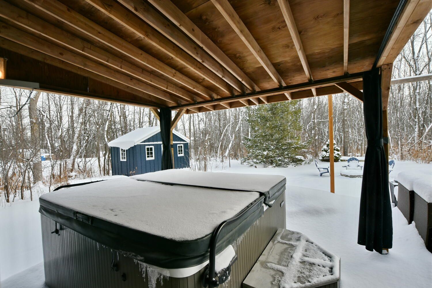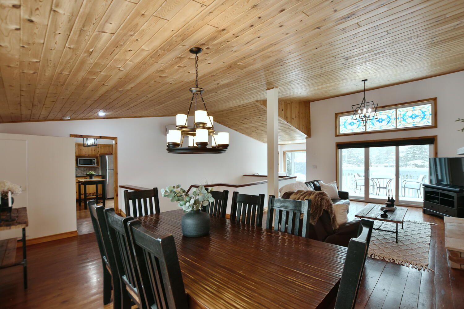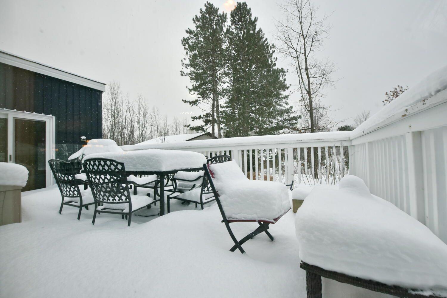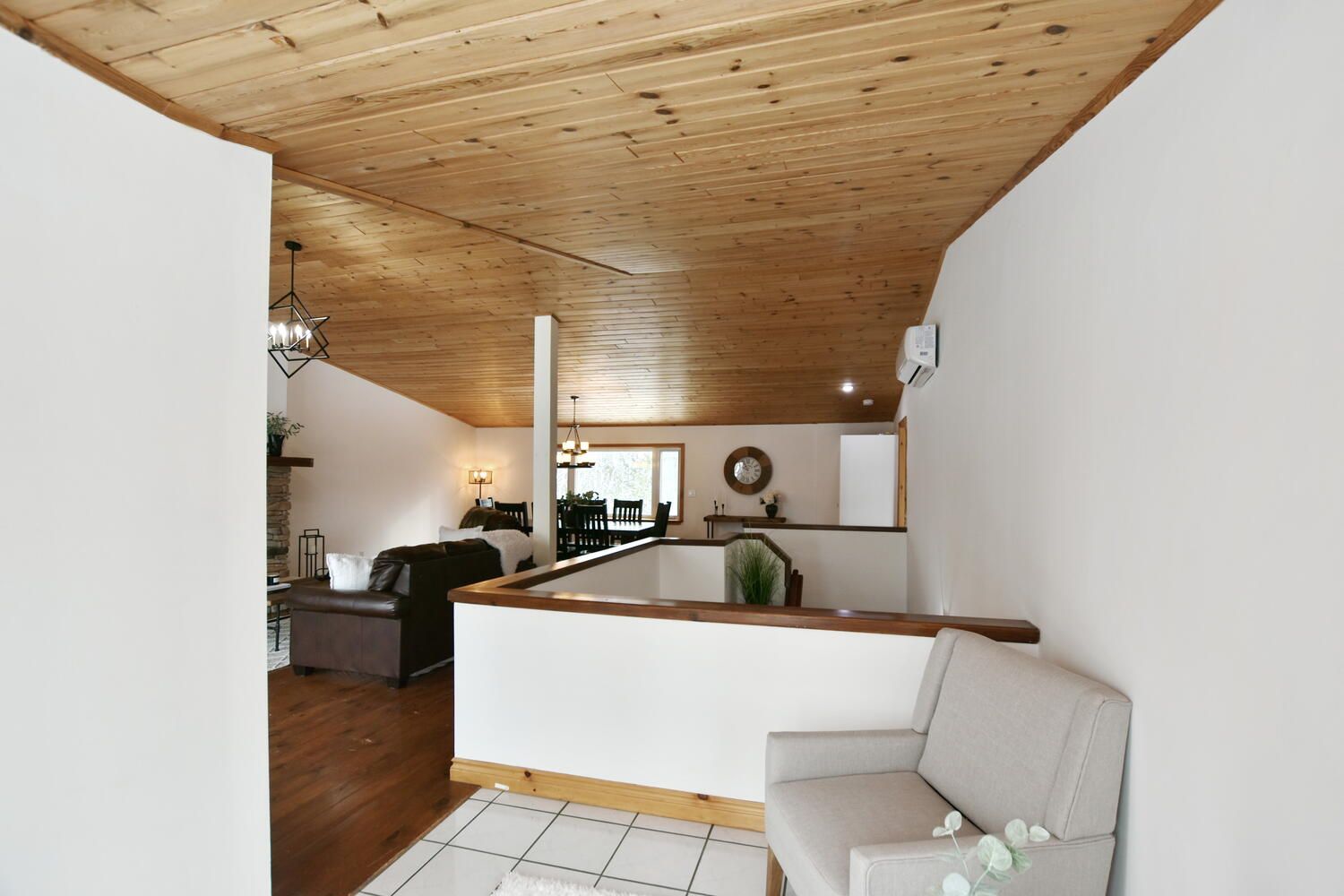 Welcome to 111 martin grove road, a fantastic blue mountain chalet offering approximately 2,100 square feet of well-designed living space, set on a large, private, wooded lot in one of the area's most sought-after locations!! Tucked away among mature trees, this home delivers a true four-season lifestyle with privacy, hill views, and walkability. Thoughtfully designed with a reverse floor plan, the upper level is made for entertaining and relaxing. The open-concept living and dining area features a cozy gas fireplace, generous natural light, and seamless flow to an expansive deck-perfect for après-ski gatherings, summer barbecues, or simply soaking in the spectacular views of blue from the front deck. The main level hosts a spacious primary bedroom with ensuite bath and walk-out, creating a private retreat with easy access to the outdoors. Two additional well-sized bedrooms and a 3-piece bath provide comfortable accommodation for family and guests. Multiple decks at both the front and rear of the home extend the living space and offer peaceful outdoor settings surrounded by nature. Recent updates include a new ductless heat pump, updated electrical panel and fresh paint throughout, making the home move-in ready while leaving room for personal touches. Outside, enjoy evenings around the fire pit, star-filled skies, and the quiet ambiance that only a wooded lot can provide. Ideally located within walking distance to the orchard at blue mountain, and just minutes from skiing, golf, hiking, dining, and the vibrant village atmosphere, this property is perfectly suited as a full-time residence, weekend escape, or investment opportunity. A charming chalet offering space, privacy, and an unbeatable blue mountain lifestyle- 111 martin grove road is ready to be enjoyed year-round!! (new water heater 2025 new anti-icedam system on roof 2025 shed exterior redone with new roof 2025 new fridge 2025 new ac and heating system 2025)