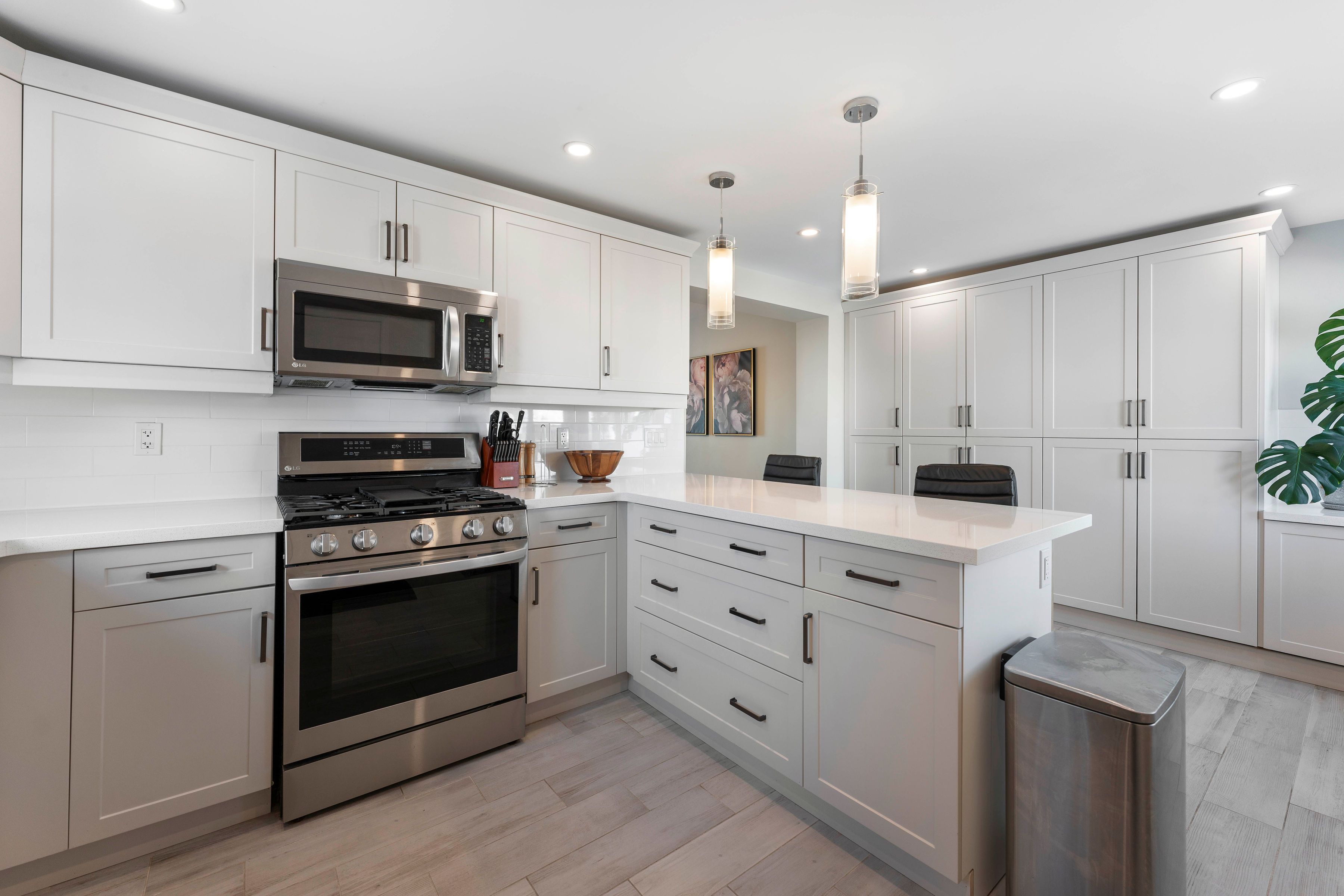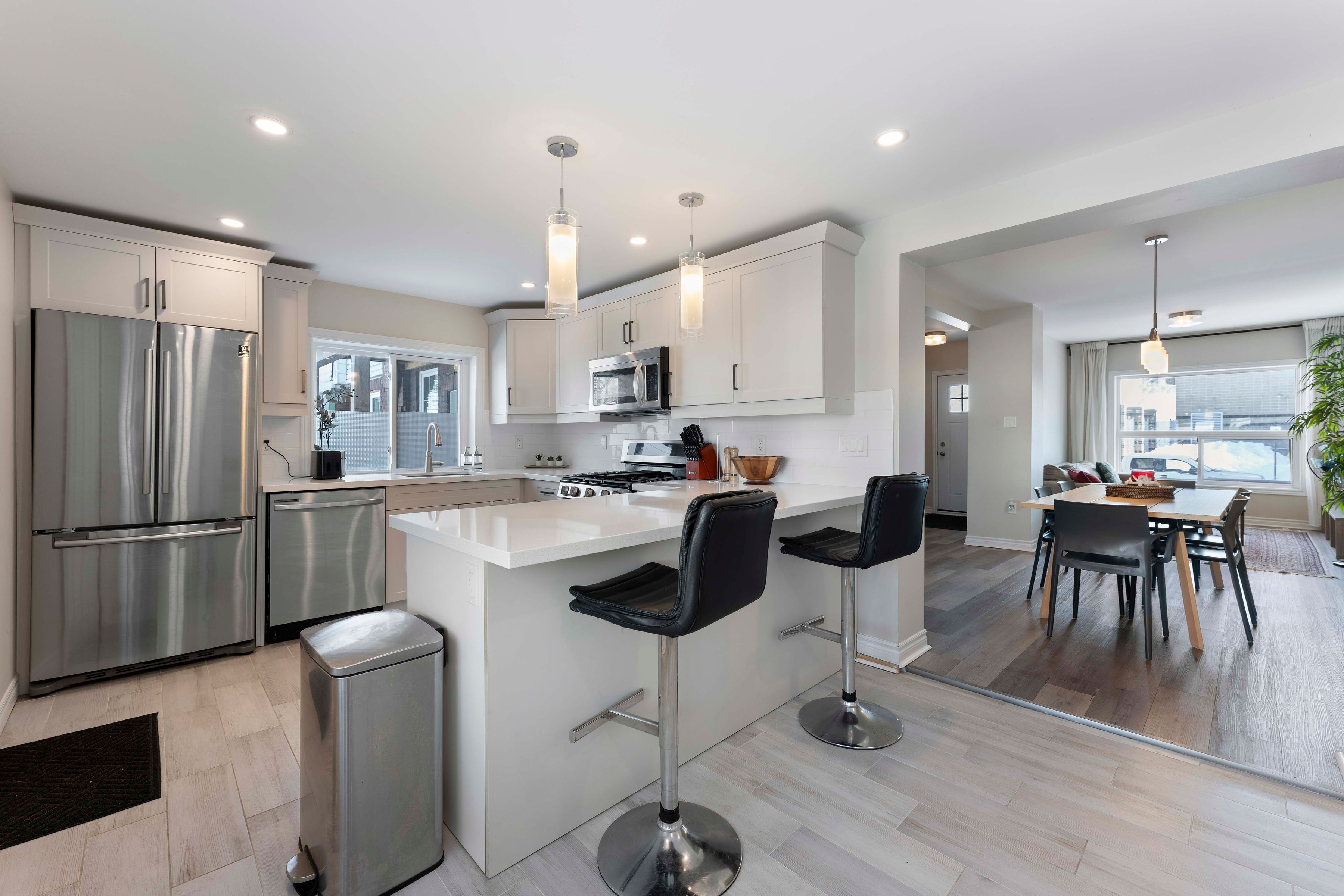 • Updated kitchen with modern appliances and breakfast bar.