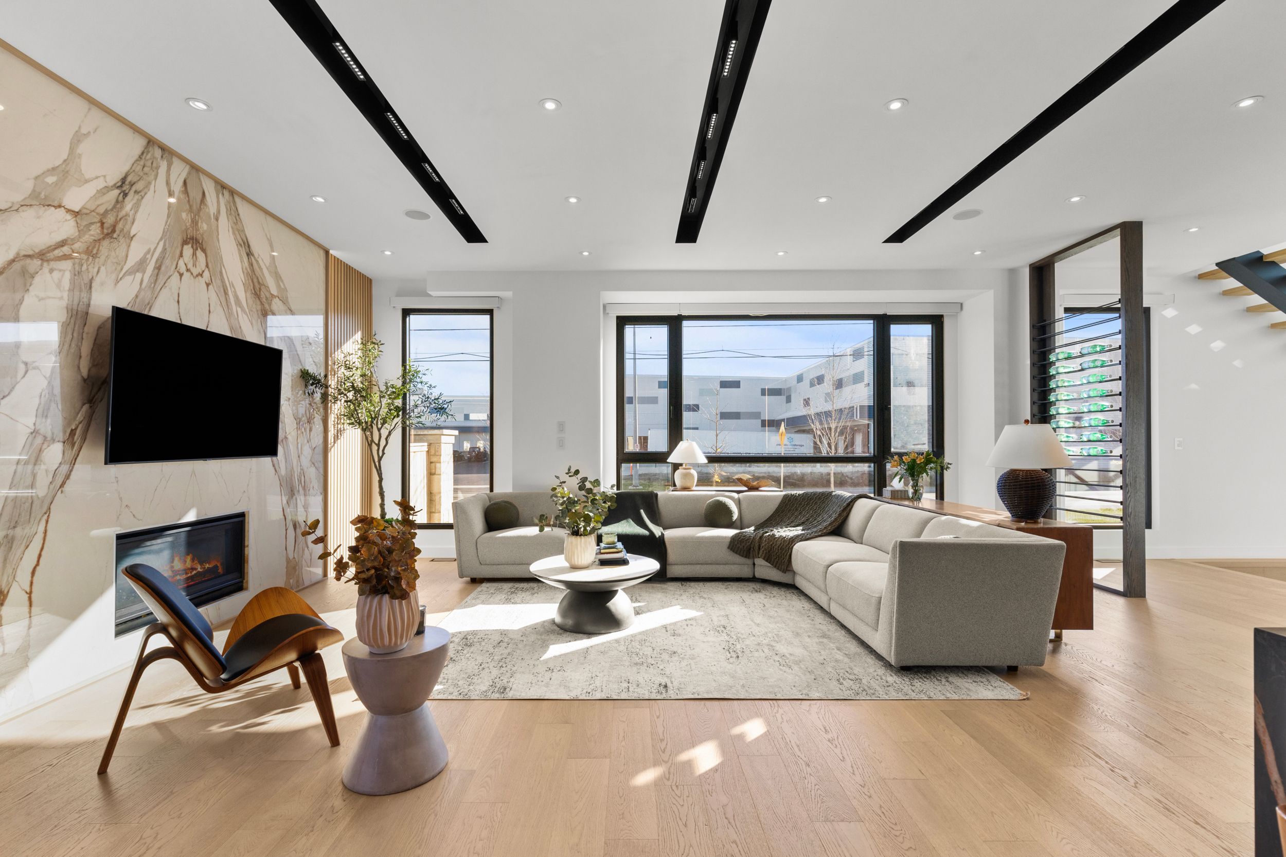 • Spacious open-concept design with grand staircase and abundant natural light.