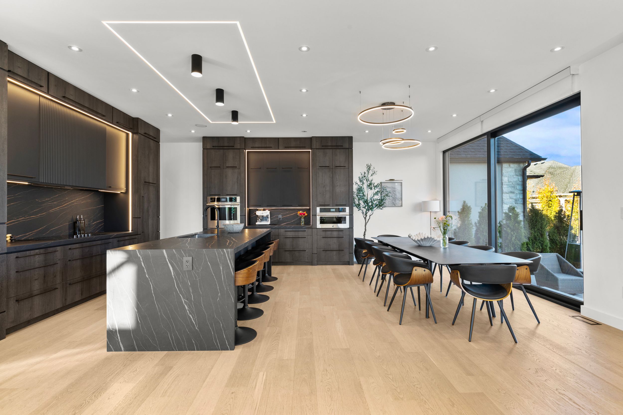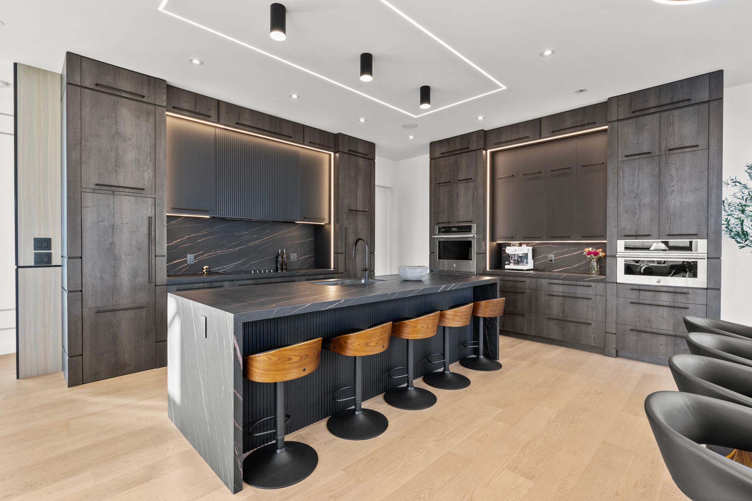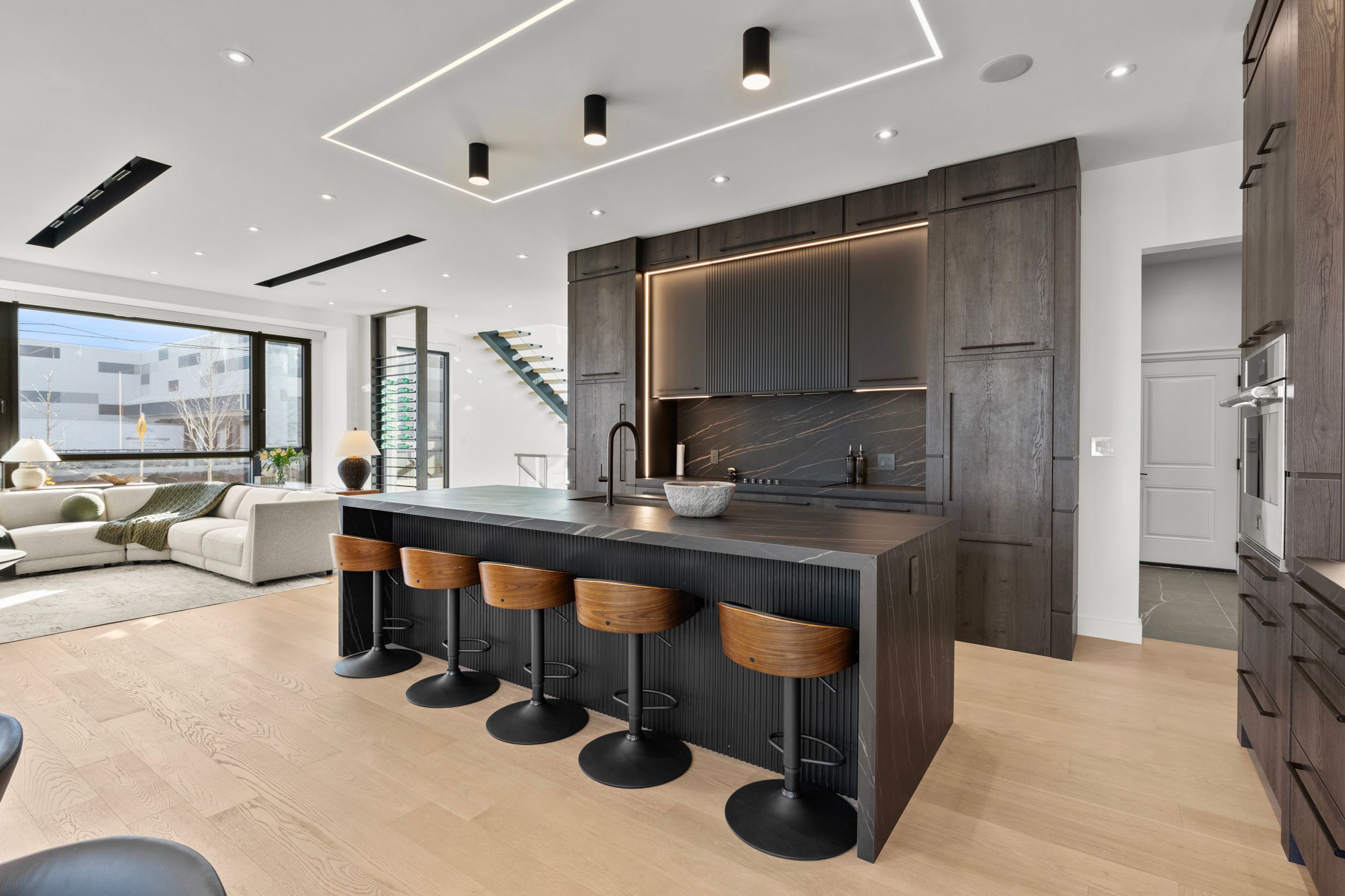 • Chef's kitchen features a large island, premium appliances, and stylish finishes.