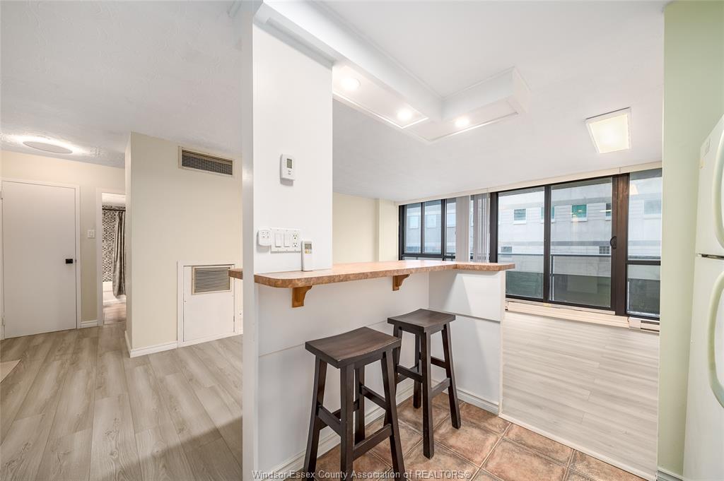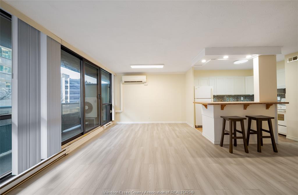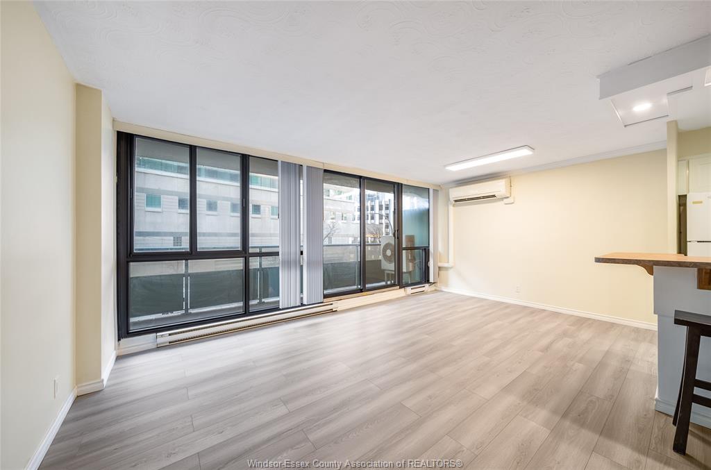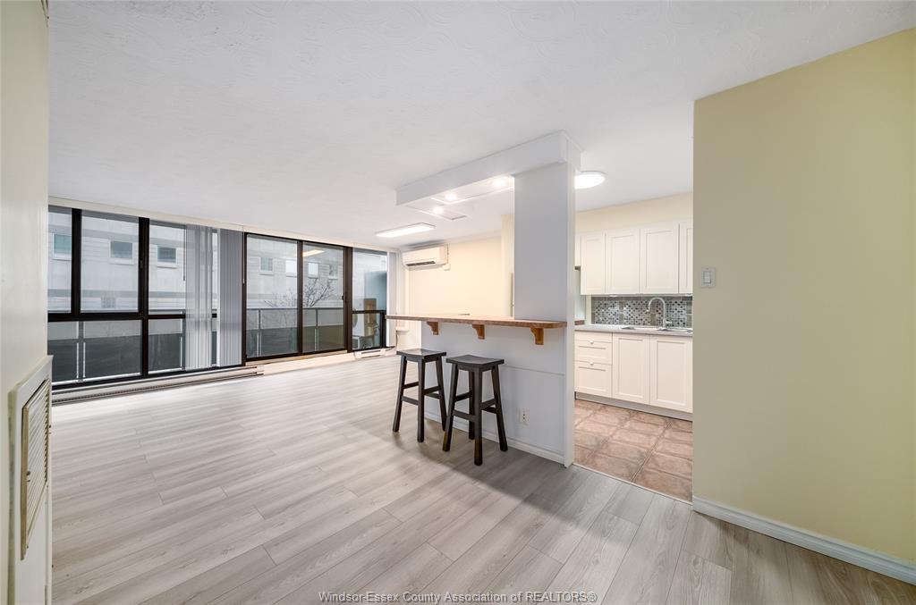 Prime downtown location! Bright, spacious, and affordable riverfront living in the heart of windsor. Unit 311 at 111 riverside dr e is a move-in-ready 1-bedroom, 1-bathroom condo featuring an open-concept layout, a renovated kitchen with modern cabinetry and countertops, fully updated 100 amp electrical, a renovated 4-piece bathroom, a spacious, bright bedroom, and floor-to-ceiling windows leading to a balcony with city views. Equipped with a mitsubishi split unit, this condo provides year-round comfort, efficiently heating in the winter and cooling in the summer. Condo fees include all utilities, one underground parking spot, and access to a heated saltwater pool and fitness centre with sauna. Conveniently located near the detroit–windsor tunnel and ambassador bridge, the university of windsor and st. Clair college downtown campuses, bus routes, parks, restaurants, shopping, nightlife, and public transit, this unit is perfect for first-time buyers, investors, or anyone seeking an affordable downtown lifestyle.
