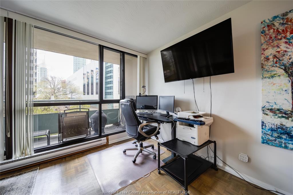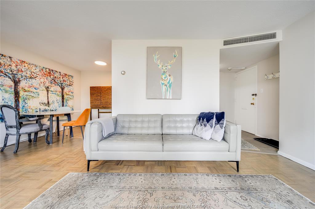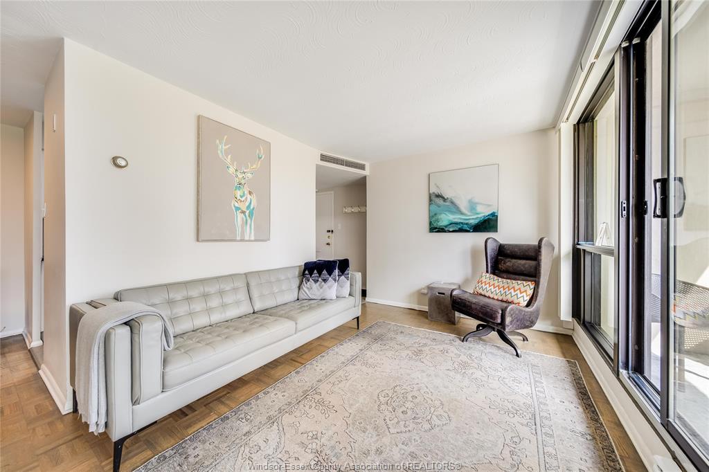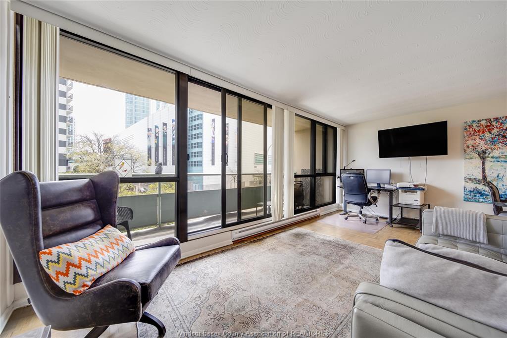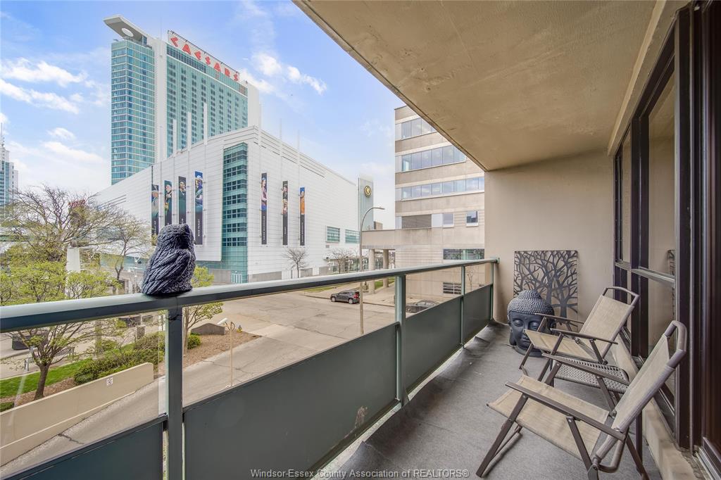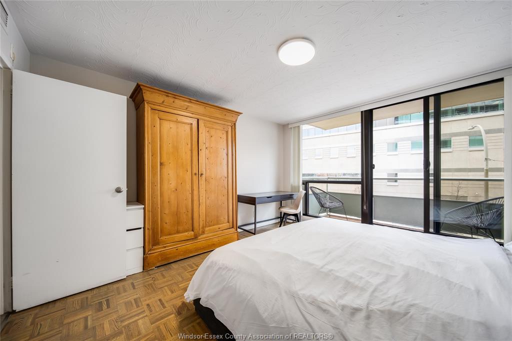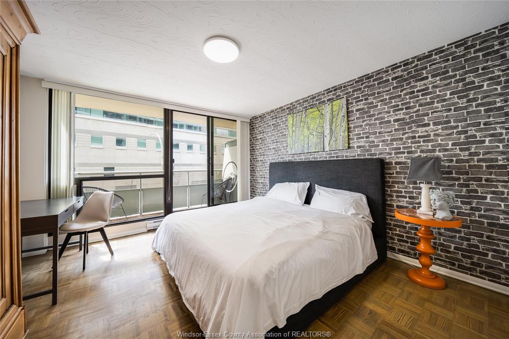 An incredible unit in the legoyeau building awaits you! This charming 1-bedroom unit is stylish, practical, and turn-key! Enjoy the best of windsor waterfront views from your first balcony facing north east. The open-concept living room features polished contemporary-style flooring, a white galley kitchen, an updated three-piece bath and a new accent wall in the primary bedroom. Take in lavish views and enjoy even more outdoor living space on your second balcony facing caesars windsor. This unit and building offer absolute carefree living with low common fees that include all utilities. Located in the heart of windsor, providing an easy commute to the us through one of two bridges or the tunnel. The building is well maintained and renovated, with spacious halls and inviting common areas. New 2025 high efficiency split heating/cooling system & updated electrical panel. Soak up the best of windsor’s tropical weather in the outdoor pool! Additional amenities include a gym and a sauna. Live the lifestyle you’ve always wanted—call the listing agent today to make this place yours!