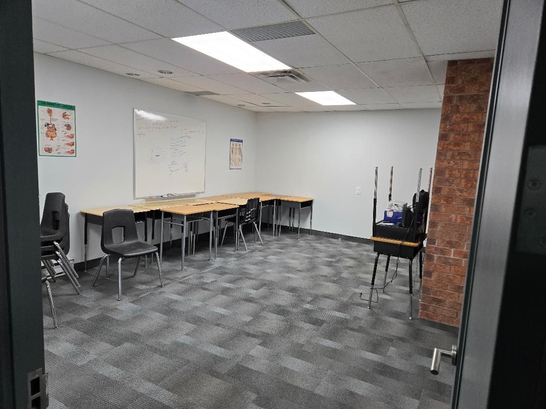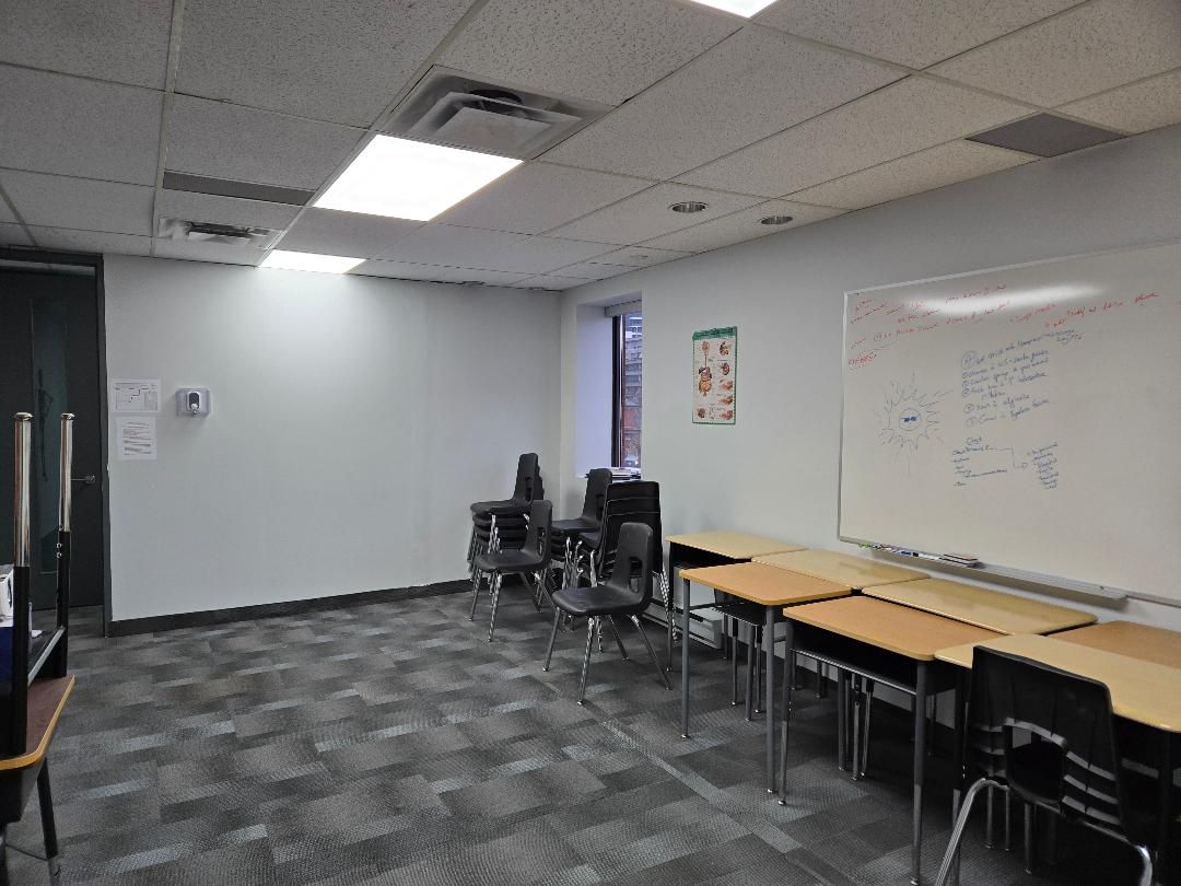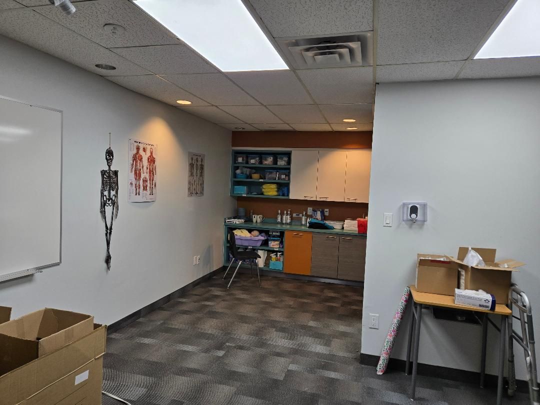 • Spacious 1110 sq ft second-floor office space with flexible room options.
