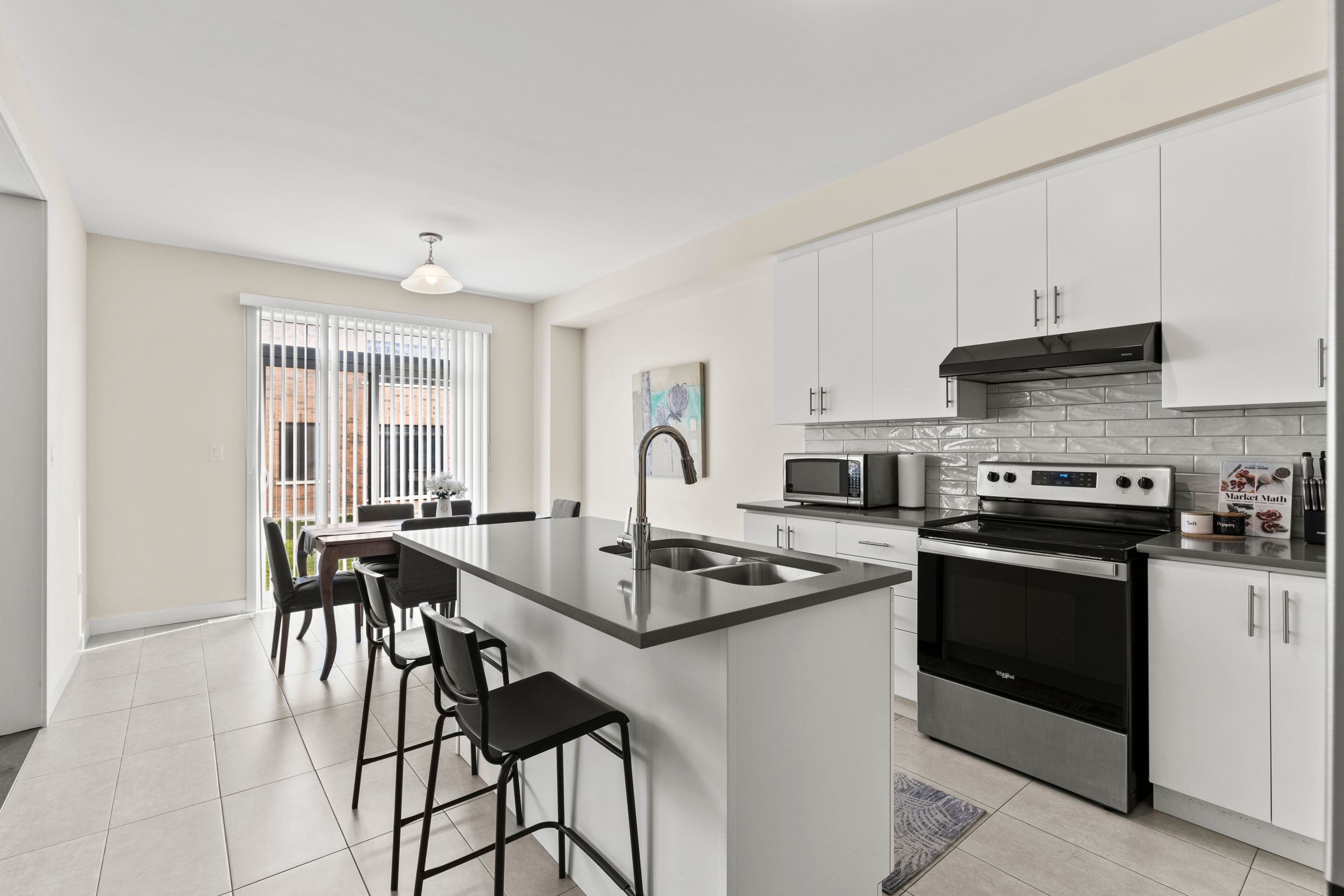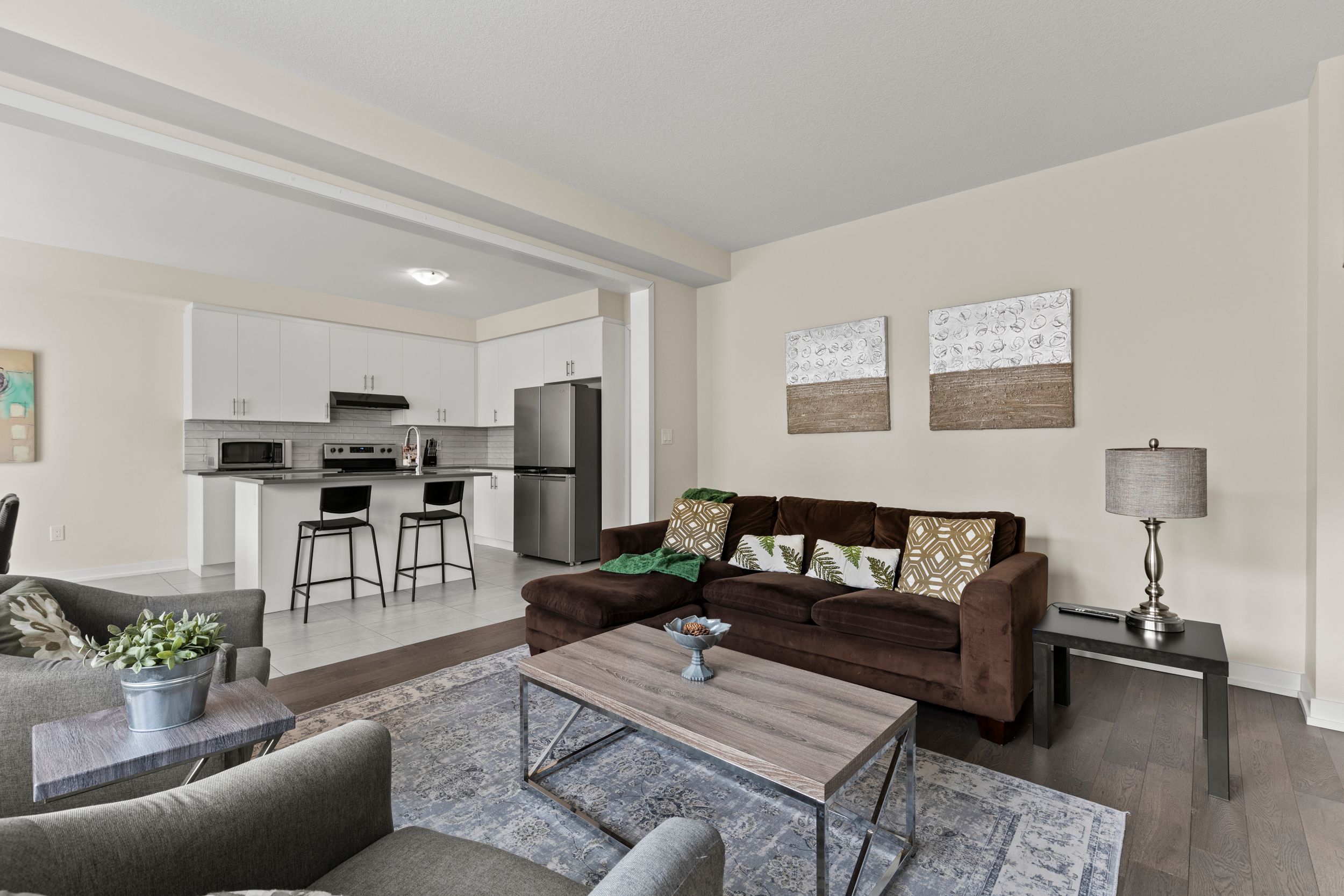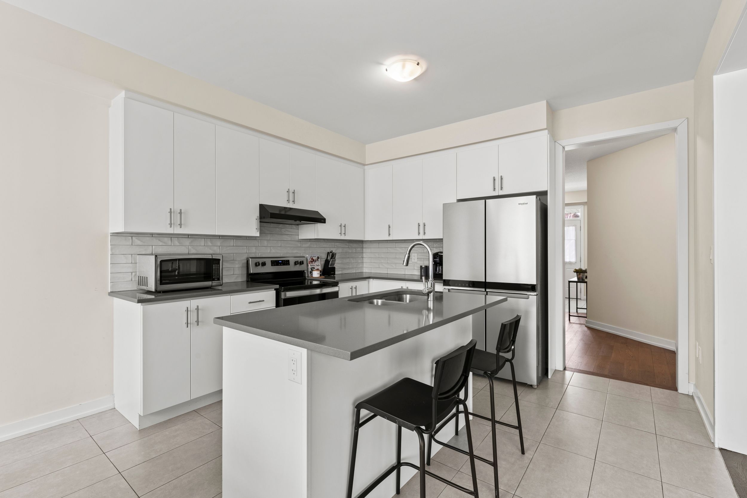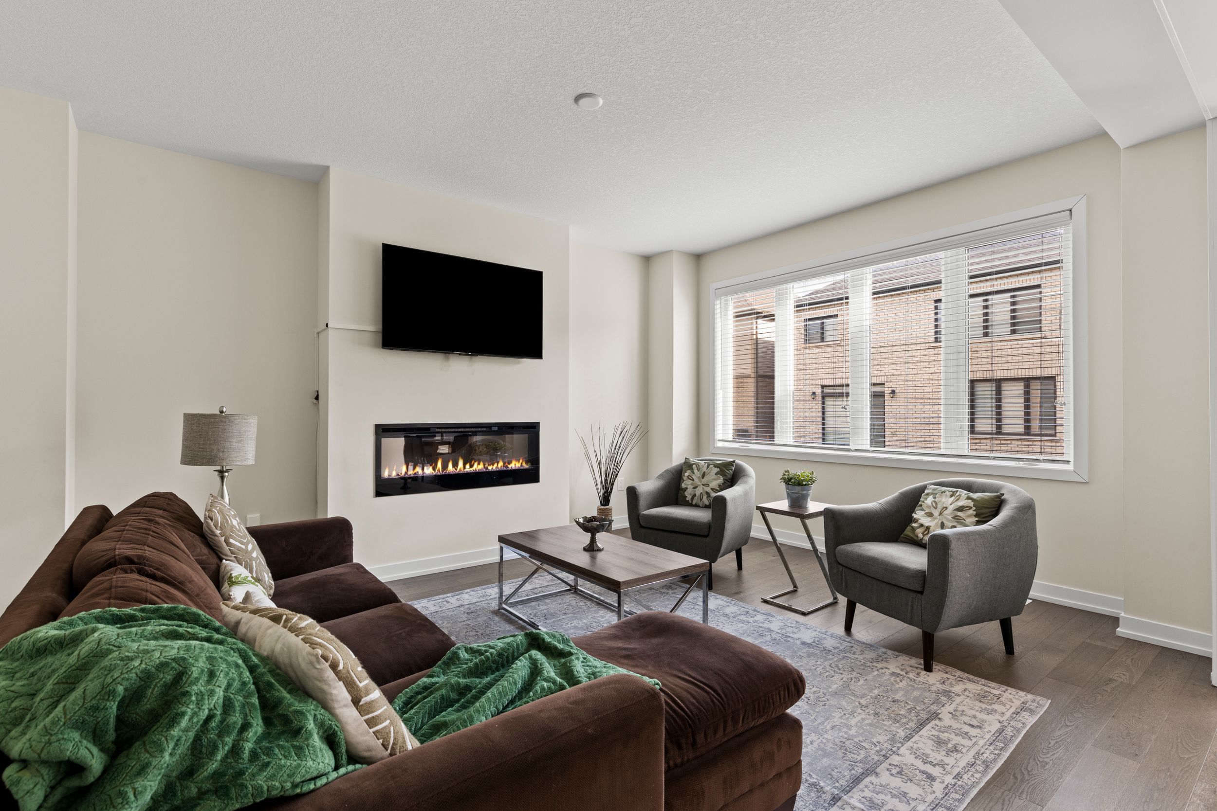 • Bright open-concept main floor featuring an upgraded kitchen and electric fireplace.