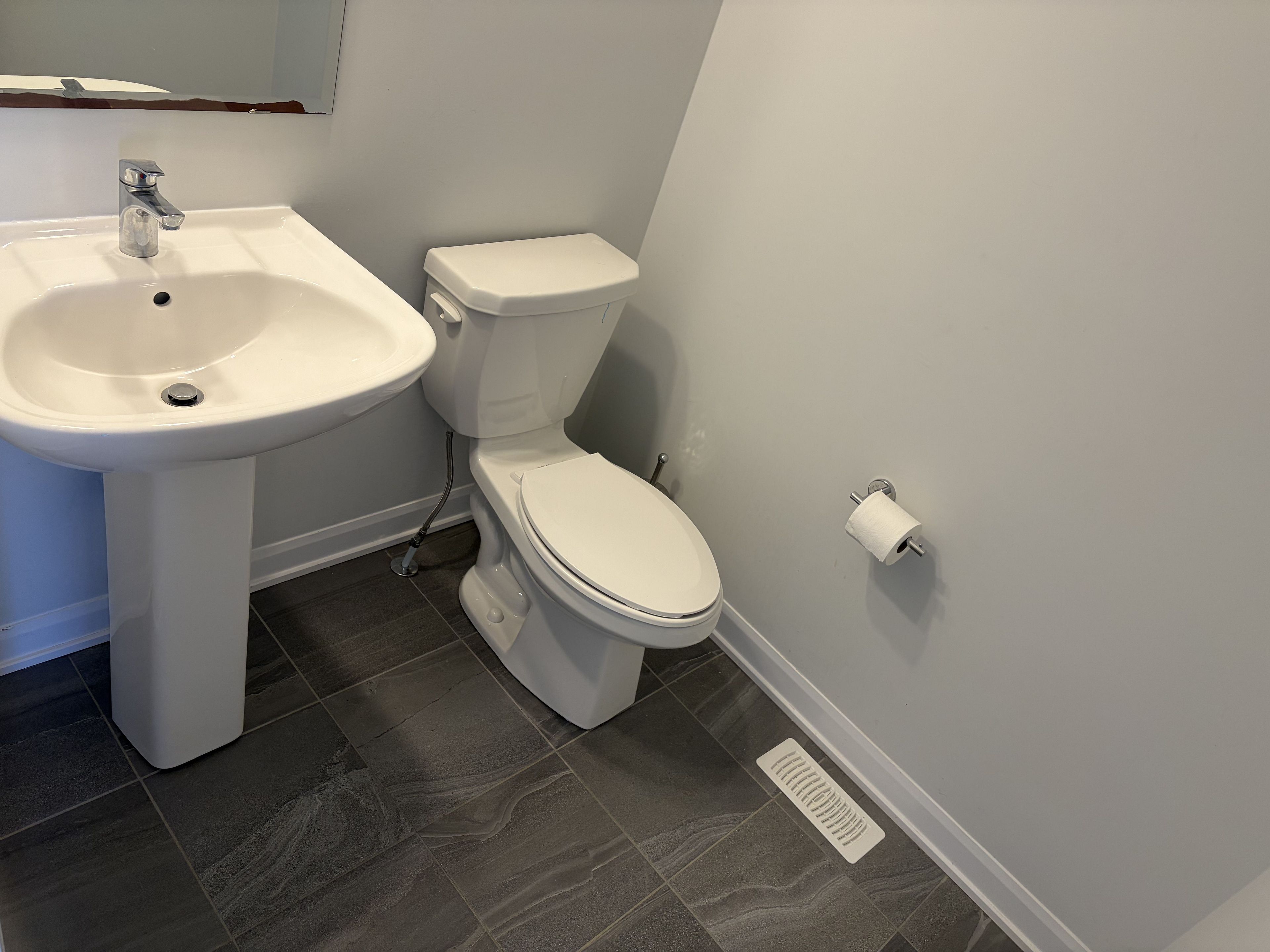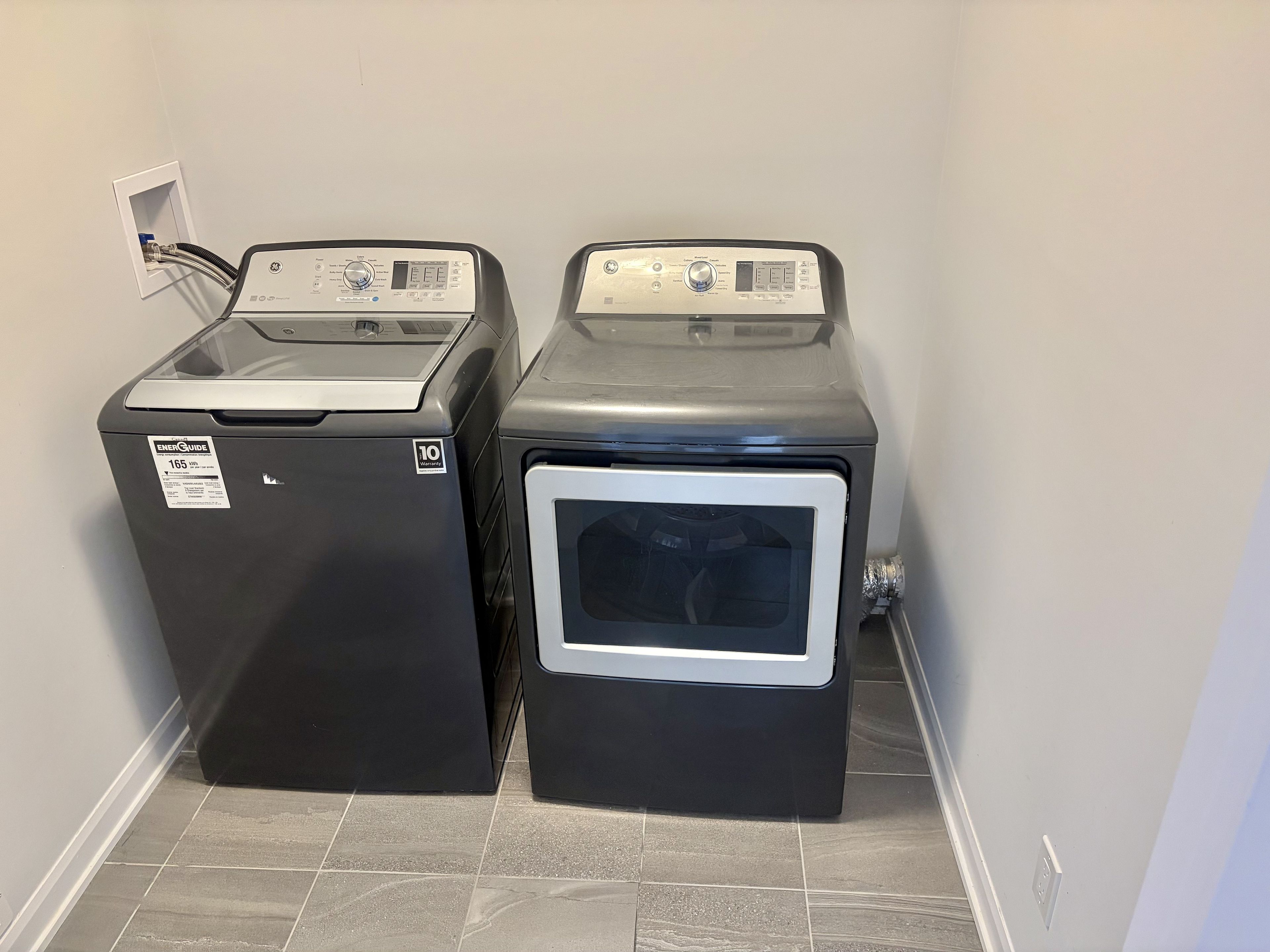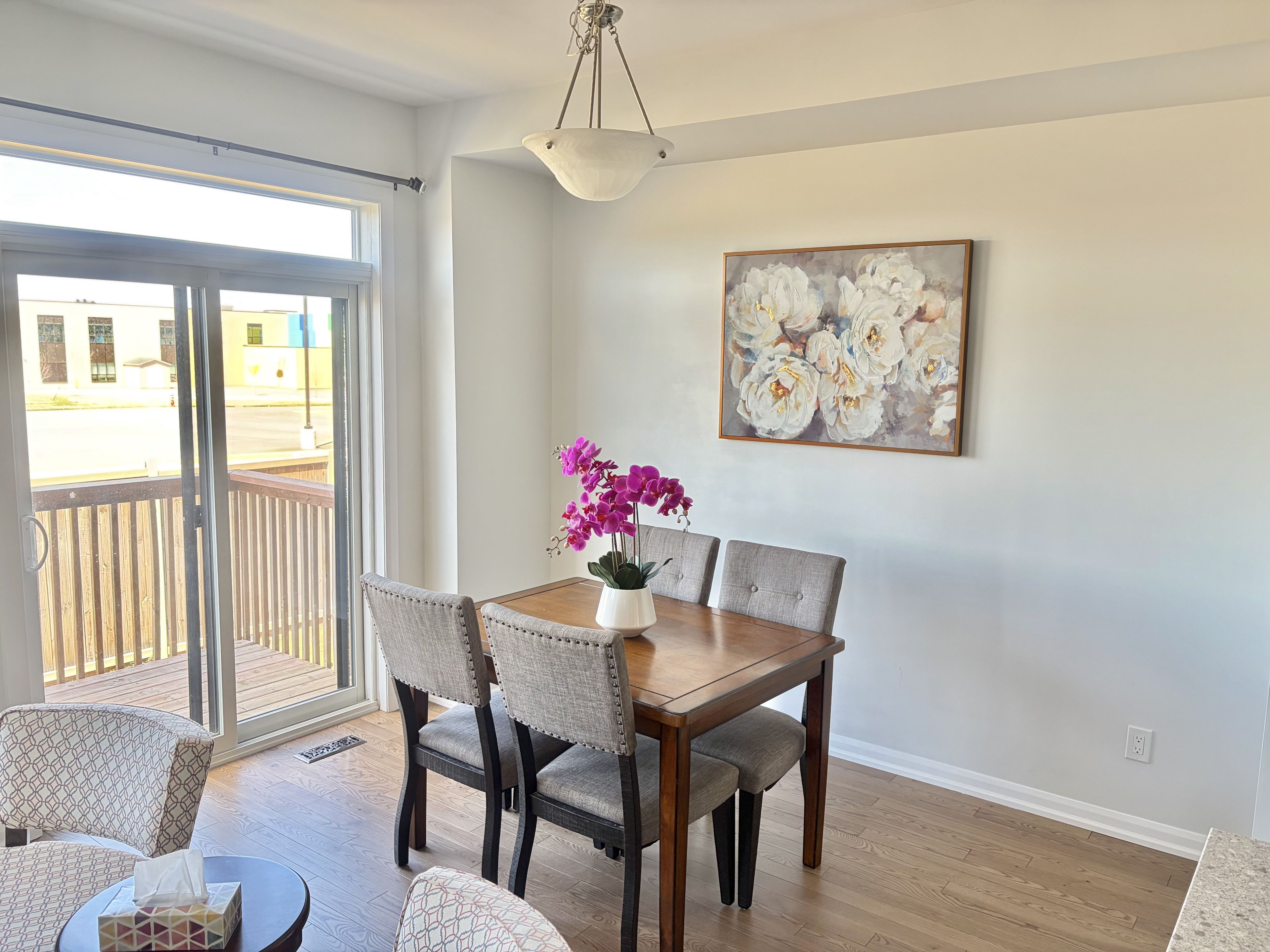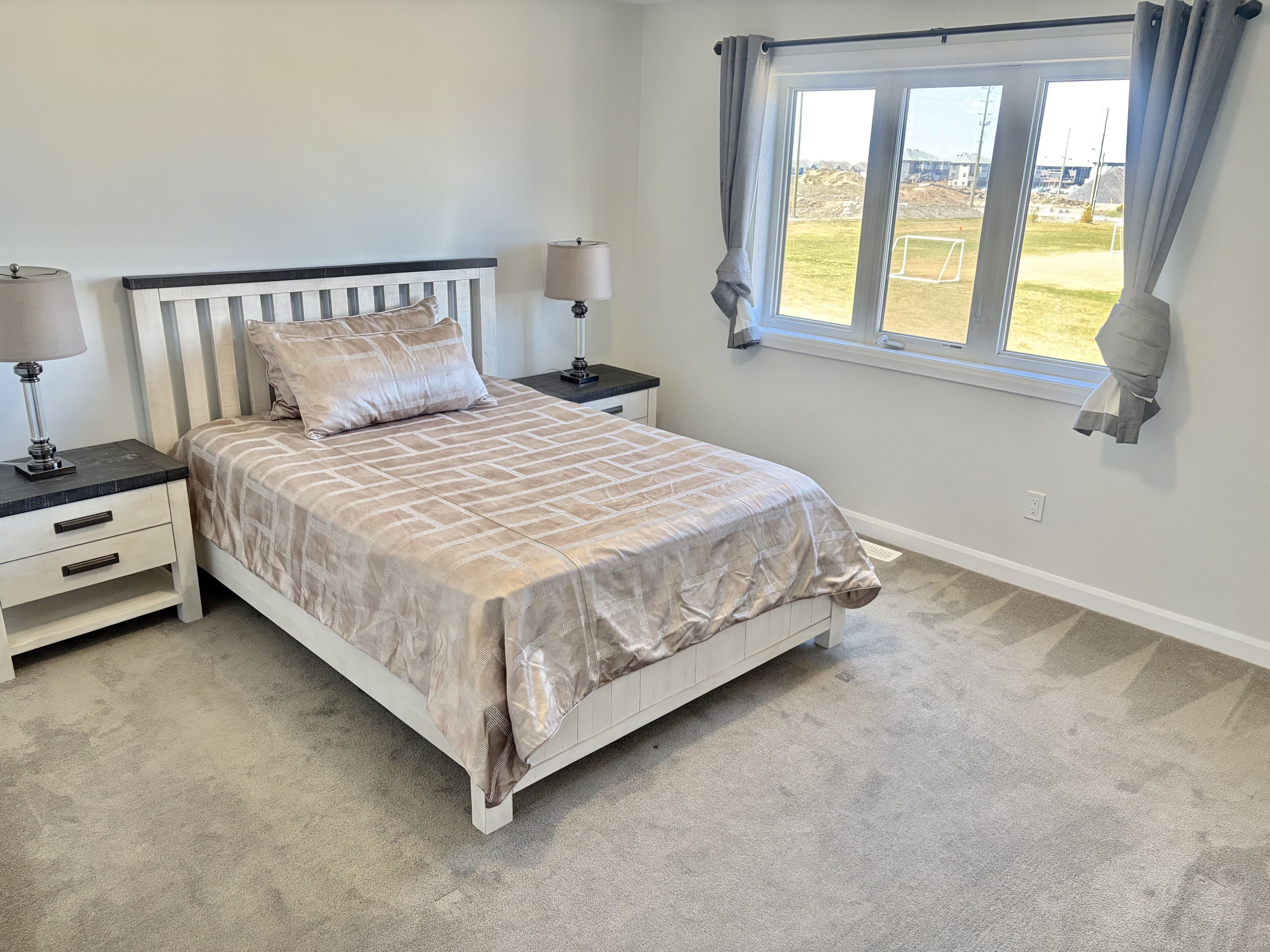 Welcome to this stunning open-concept 3-bedroom, 2. 5-bathroom minto laguna townhome located in the highly sought-after quinn's pointe community. Just 5 years old, this home features 9-foot ceilings on the main floor, no rear nerghbours, and backs onto an elementary school playground-perfect for added openness and convenience. A bright lookout basement further enhances the home's natural light. The main level boasts newly installed hardwood flooring, smooth ceilings, and fresh paint throughout. The modern kitchen is equipped with granite countertops, a breakfast bar island, and stainless steel appliances-ideal for both everyday living and entertaining. Upstairs, the spacious primary bedroom offers a walk-in closet and a 4-piece ensuite. Two additional well-sized bedrooms, a full 4-piece bathroom, and a convenient second-floor laundry room complete this level. The partially finished basement features a generous family room with a large lookout window, filling the space with natural light. A rough-in for a future bathroom is already in place, offering excellent potential for further customization. Ideally located within walking distance to parks, schools, and public transit. Listing agent is the seller. Flooring includes hardwood, ceramic, and wall-to-wall carpet.