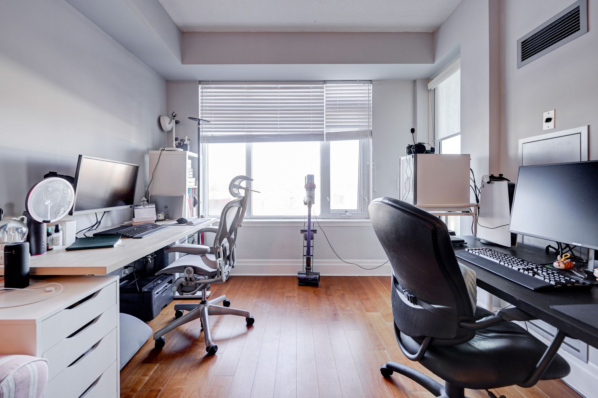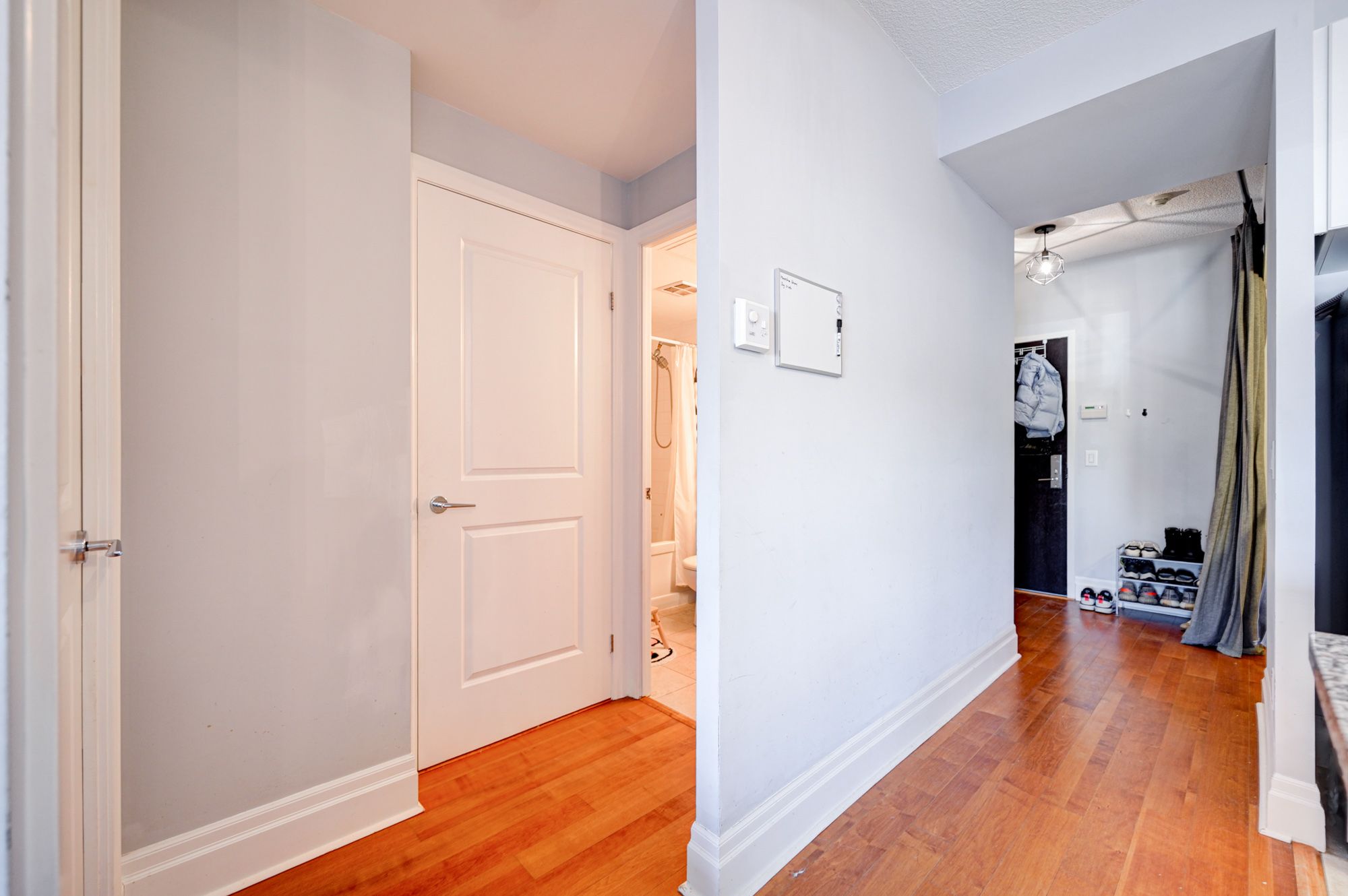 • Engineered hardwood flooring adds a sleek and durable touch throughout.