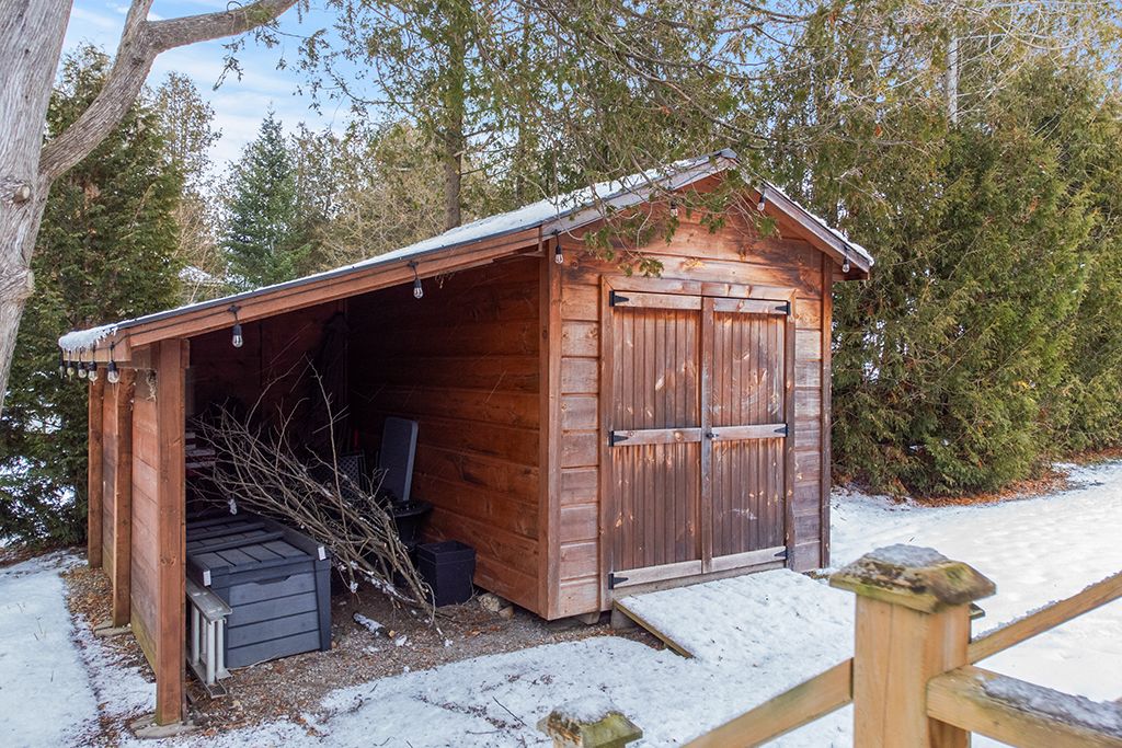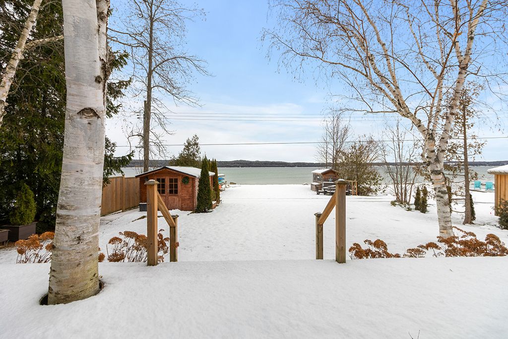 Discover the ultimate four-season waterfront retreat at 111 wilson drive, an immaculately maintained and fully renovated property set on the pristine shoreline of colpoys bay in georgian bluffs. Nestled on a private, flat, tree-lined 70' x 204' lot with breathtaking views of the niagara escarpment, this turn-key property offers a sandy walk-out beach, a handcrafted docking system accommodating a 26' boat, multiple watercraft racks, a beach firepit, and a fully equipped beach house-creating an unmatched setting for swimming, paddling, boating, and family fun. The beautifully updated 1,000 sq ft main home showcases cedar and pine construction, high ceilings, refinished original wood floors, a stunning stone gas fireplace, a high-functioning wood-burning stove, and an open-concept kitchen with custom cabinetry, premium appliances, and a 9'4" island. Thoughtfully upgraded throughout, the home features new windows and doors, insulated steel roofing, municipal water with ro system, hot-water-on-demand, a 2018 septic system, updated electrical and plumbing, fully refinished bathroom, extensive insulation, tile drainage, and a napoleon natural gas furnace for year-round comfort. Expansive outdoor decking, an 8'x8' deluxe outdoor shower, a designated outdoor cooking deck, an 8-person hot tub, and multiple outbuildings-including a cabin, a two-level fort, a utility cabin, and the beach house-enhance the lifestyle experience. Located just minutes from wiarton, close to golf, trails, beaches, and marinas, this rare offering combines peaceful seclusion with exceptional recreation. A truly turn-key waterfront paradise where memories are made and cherished for generations.