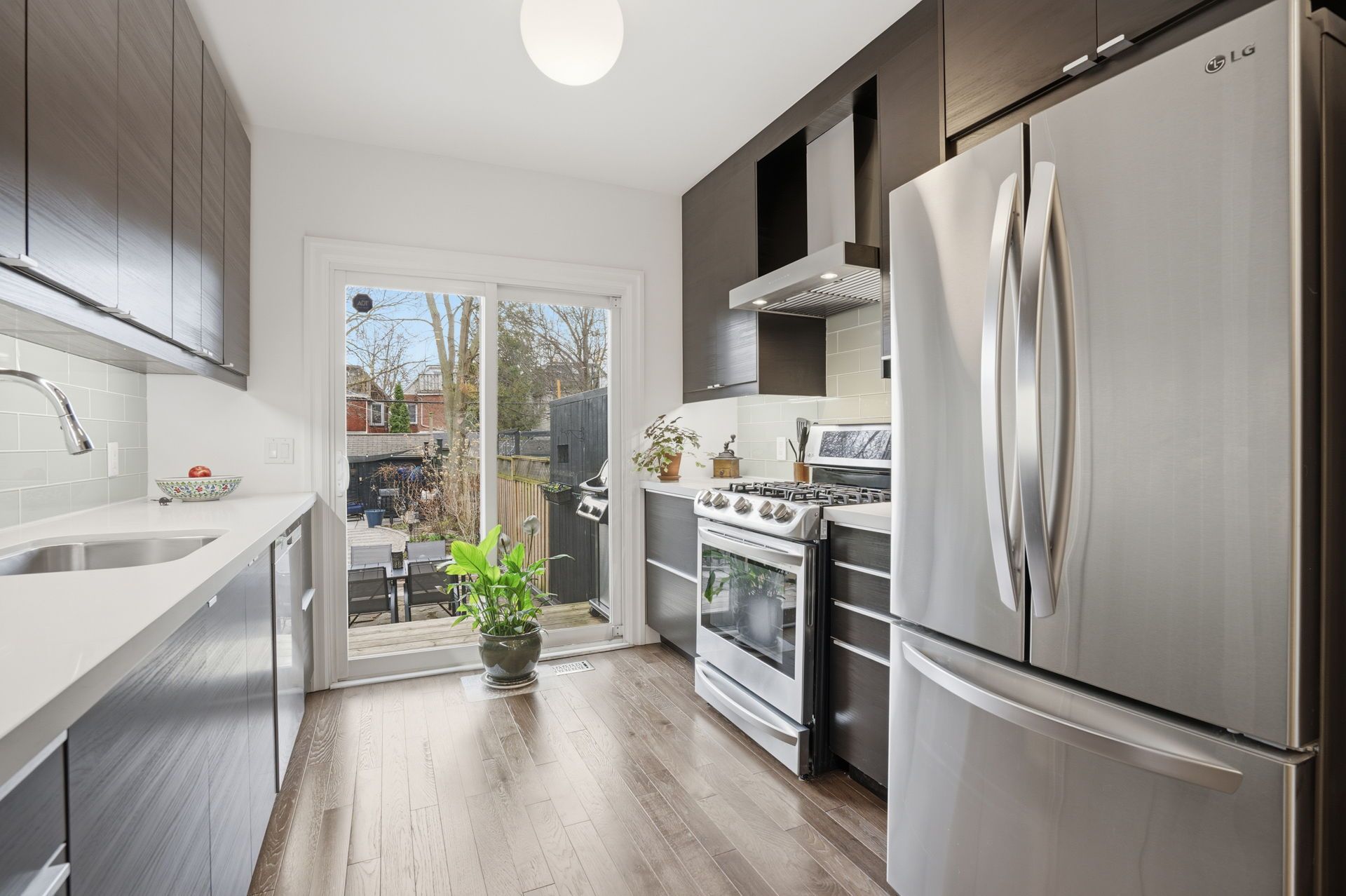 Smart contemporary design, clean lines, and maximized use of space. Welcome to 111 withrow avenue. This beautifully rebuilt home blends modern style with thoughtful craftsmanship in one of toronto's most sought-after neighbourhoods. The interior was completely reconstructed from the studs and joists, while the exterior has been carefully renewed to ensure decades of comfortable, low-maintenance living. Inside, a bright open-concept layout features rich hickory hardwood floors throughout the main and second levels, freshly painted interiors, and newly rebuilt staircases that complement the home's contemporary style. The kitchen and dining area flow seamlessly for everyday living and entertaining, enhanced by an oversized dining room window that fills the space with natural light. Two beautifully renovated bathrooms include heated floors, and the plumbing has been fully updated with a back-flow valve for added peace of mind. The finished lower level offers high-quality laminate flooring, newer windows, ample storage, and a newer walk-up providing easy backyard access. This level features a comfortable entertainment area and a bedroom with an ensuite washroom. Major mechanical systems have also been upgraded with a new furnace, air conditioner, and hot water tank - one year old and fully owned. The outdoor space is equally impressive. Mature perennial gardens enhance the front and back yards, while two backyard patios provide ideal spaces for relaxing and entertaining. A newer deck includes a natural gas bbq hookup, and a custom-built shed offers excellent storage. Located in prime north riverdale within the coveted withrow school catchment and just steps to withrow park and riverdale park east, with an easy walk to the danforth and its cafés and shops. A rare opportunity to own a thoughtfully rebuilt home in one of toronto's most beloved neighbourhoods.