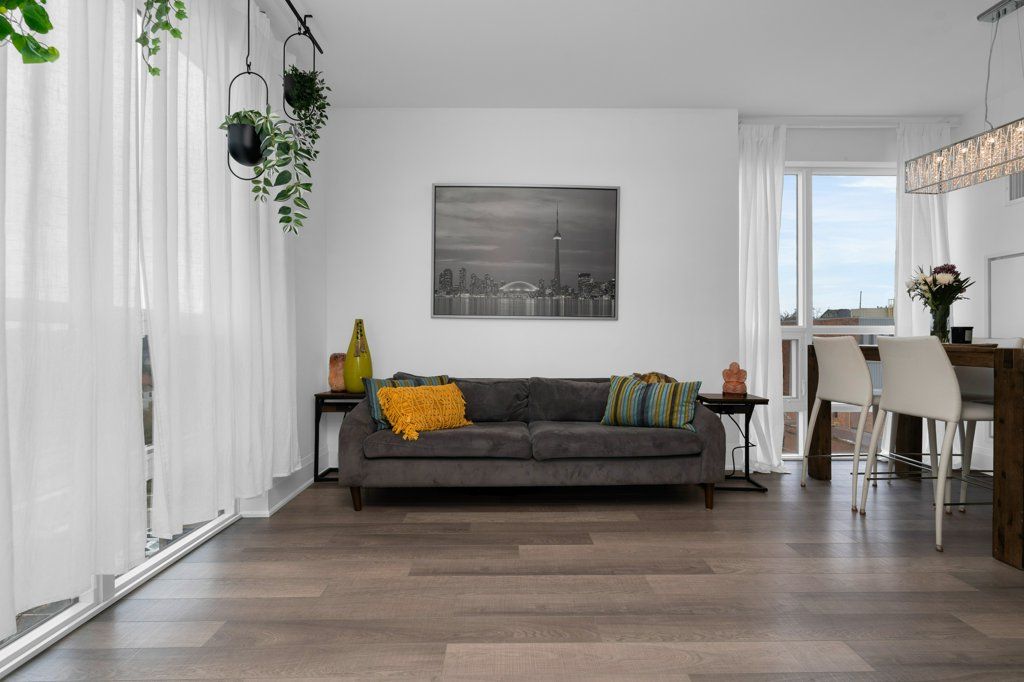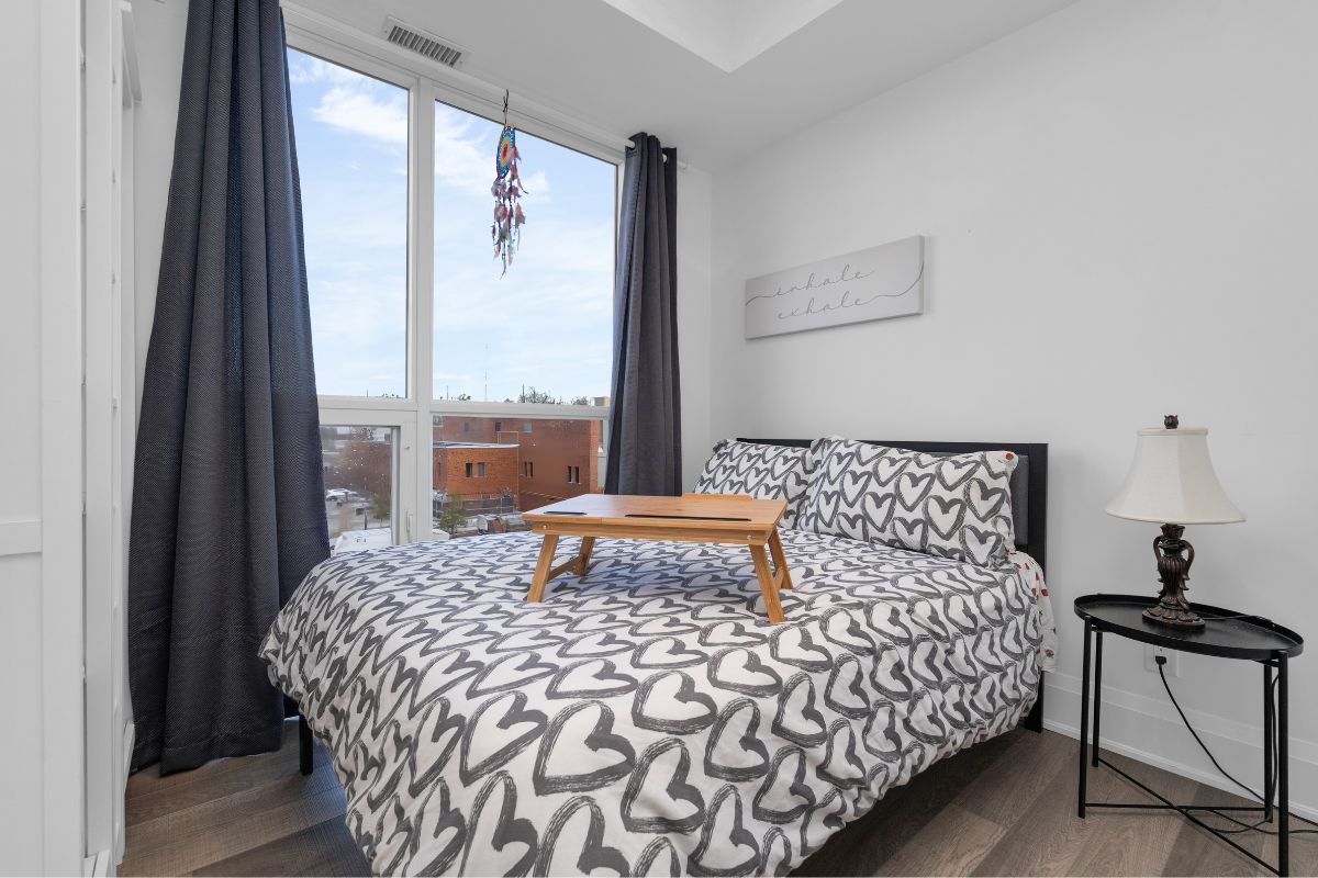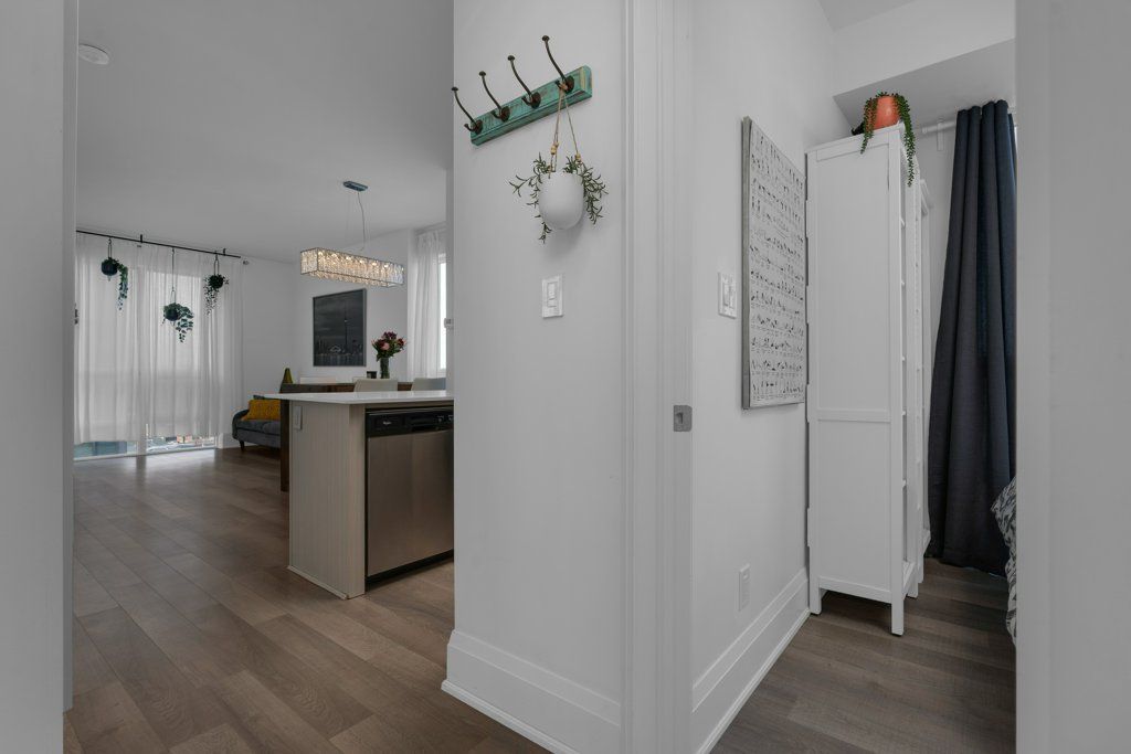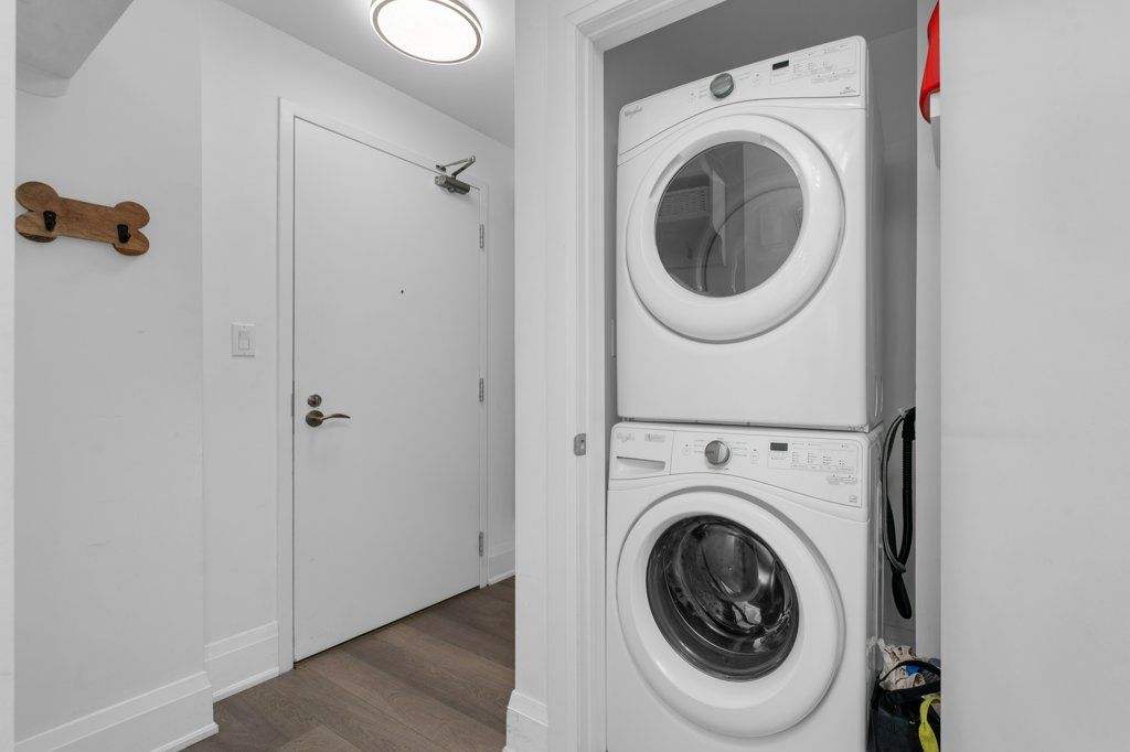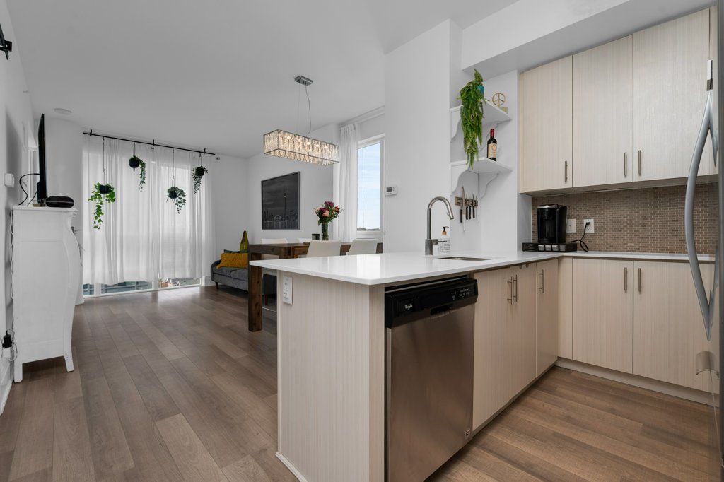 Condo living never looked so good! Tucked privately away this unit boasts tons of natural light from almost every angle with an abundance more windows than most of the buildings models. With over 800 square feet, 9 foot ceilings and original owner this pride of ownership condo bursts with luxury. The second you walk in you will notice the upgraded washer and dryer, laminate flooring and easy flow floor plan. Crisp quartz countertops, tasteful tiled backsplash, open shelving and stainless steel appliances adorn the open concept kitchen with extra deep counter perfect for stools with gossip with friends and an espresso martini. The large living/dining space has floor to ceiling windows and leads to the water facing oversized patio with outdoor decking tiles. Inside the primary bedroom via the barn door there is plenty of room for your furniture, a private 4 piece bathroom with stone countertop and bonus storage above the toilet and massive walk-in closet suitable for any shopaholics needs. Tastefully situated away from the primary bedroom your guest bedroom or office also flush with floor to ceiling windows has a double closet with organizer and is next to a 3-piece bathroom also with stone countertop. With updated lighting throughout and plenty of closet space you won't even need the locker that is included. Building offers tasteful large welcome seating area as well as work out and party room and massive terrace perfect to lounge around with your favourite book for a change of scenery from your own balcony. Ice skate under the stars at city hall, check out the talented artists at the maclaren art centre, grab a puzzle from the local library, head down to the waterfront for a salsa lesson at meridian place, grab some fresh vegetables at the farmers market, walk to the five points theatre, grab a bite to eat, or hit up a roof top patio or night club. Convenience at it's finest. Welcome home!