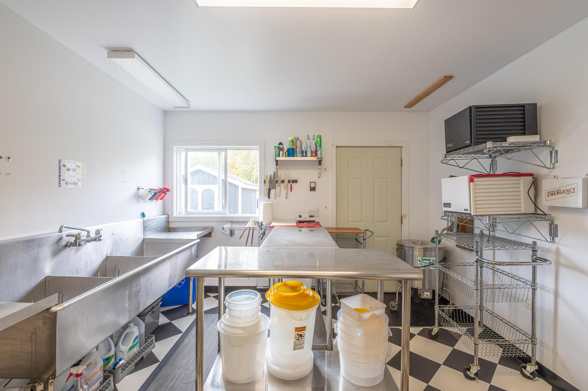 • Former commercial kitchen space perfect for culinary ventures or other businesses.