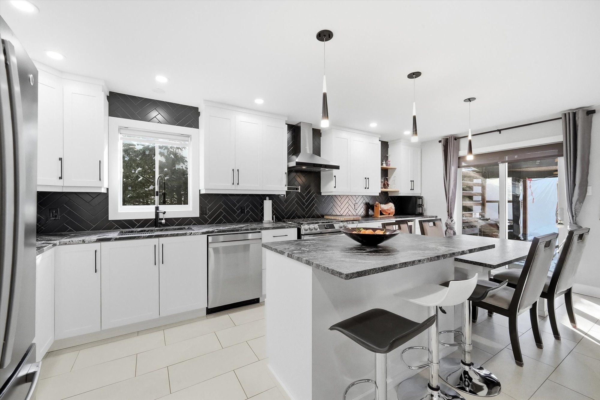 • Recently renovated kitchen featuring a gas stove and leather-finish countertops.