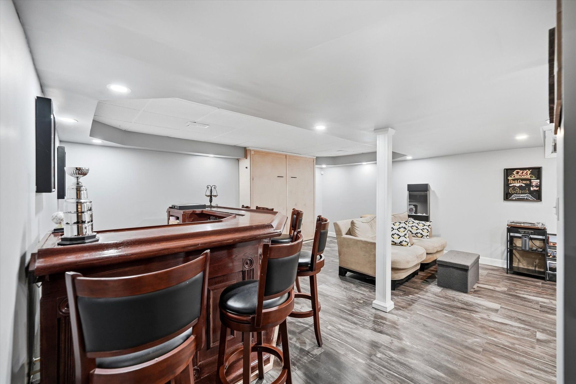 • Fully finished basement with a bar area and Murphy bed for versatility.