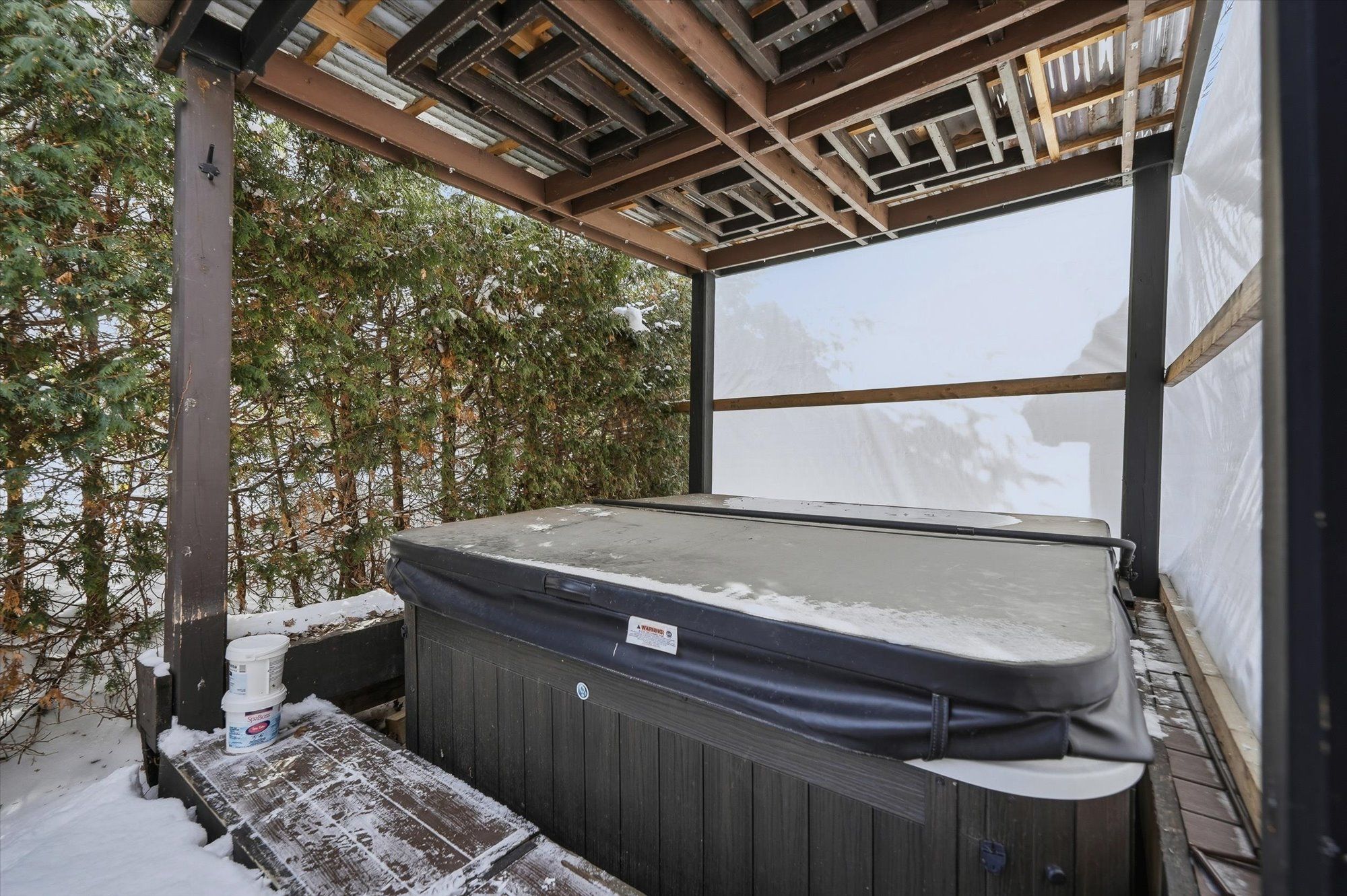 • Private outdoor retreat with a covered deck, hot tub, and sauna.