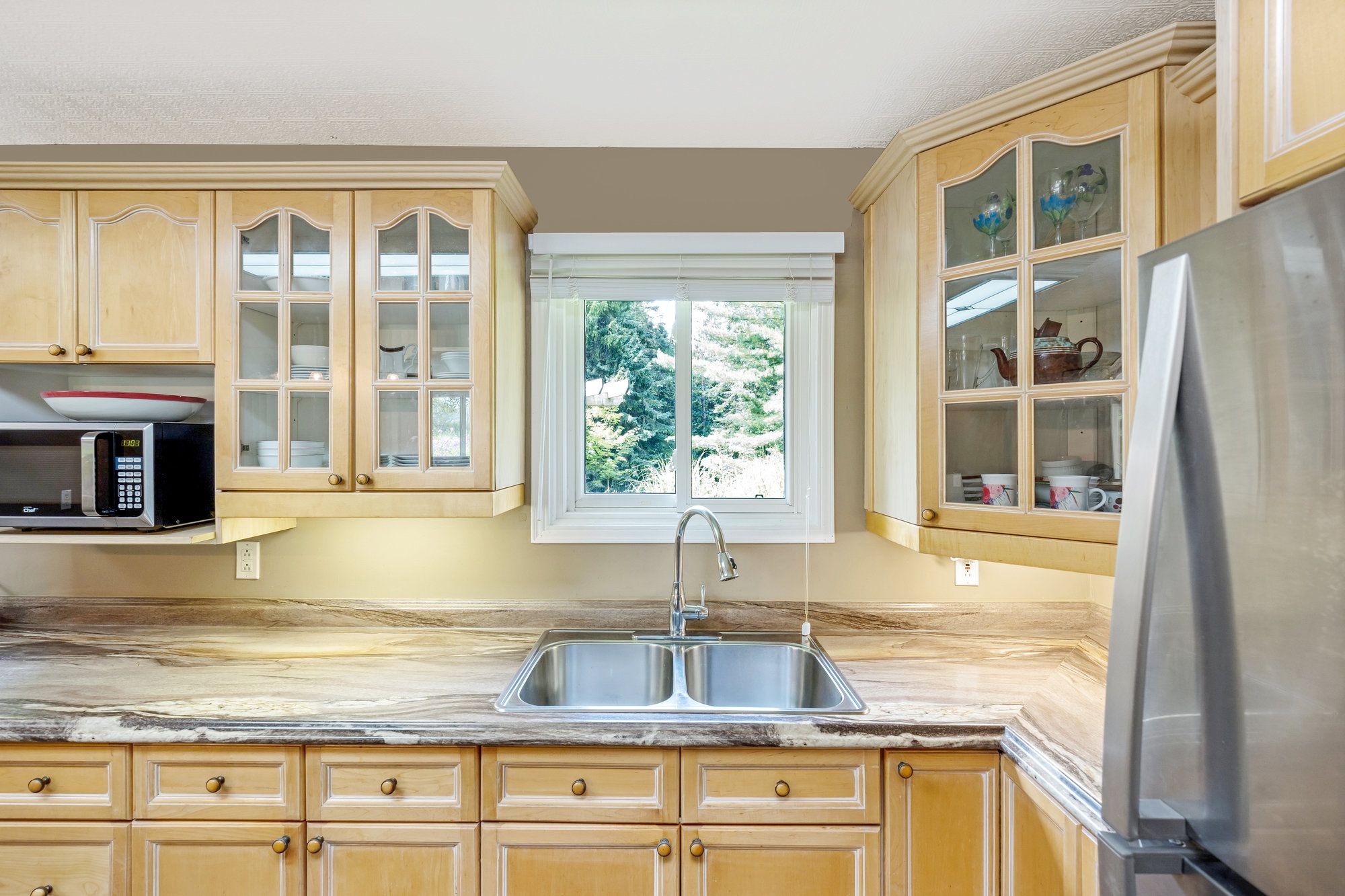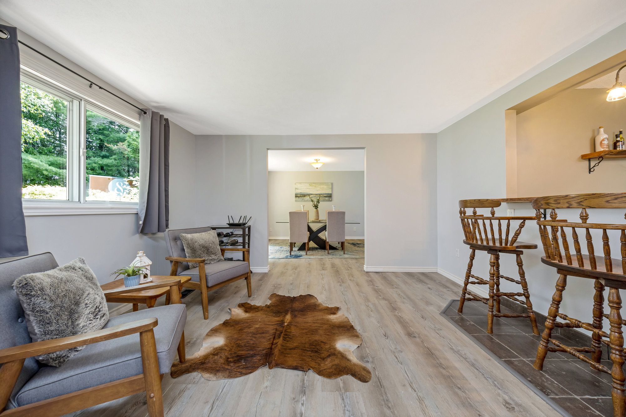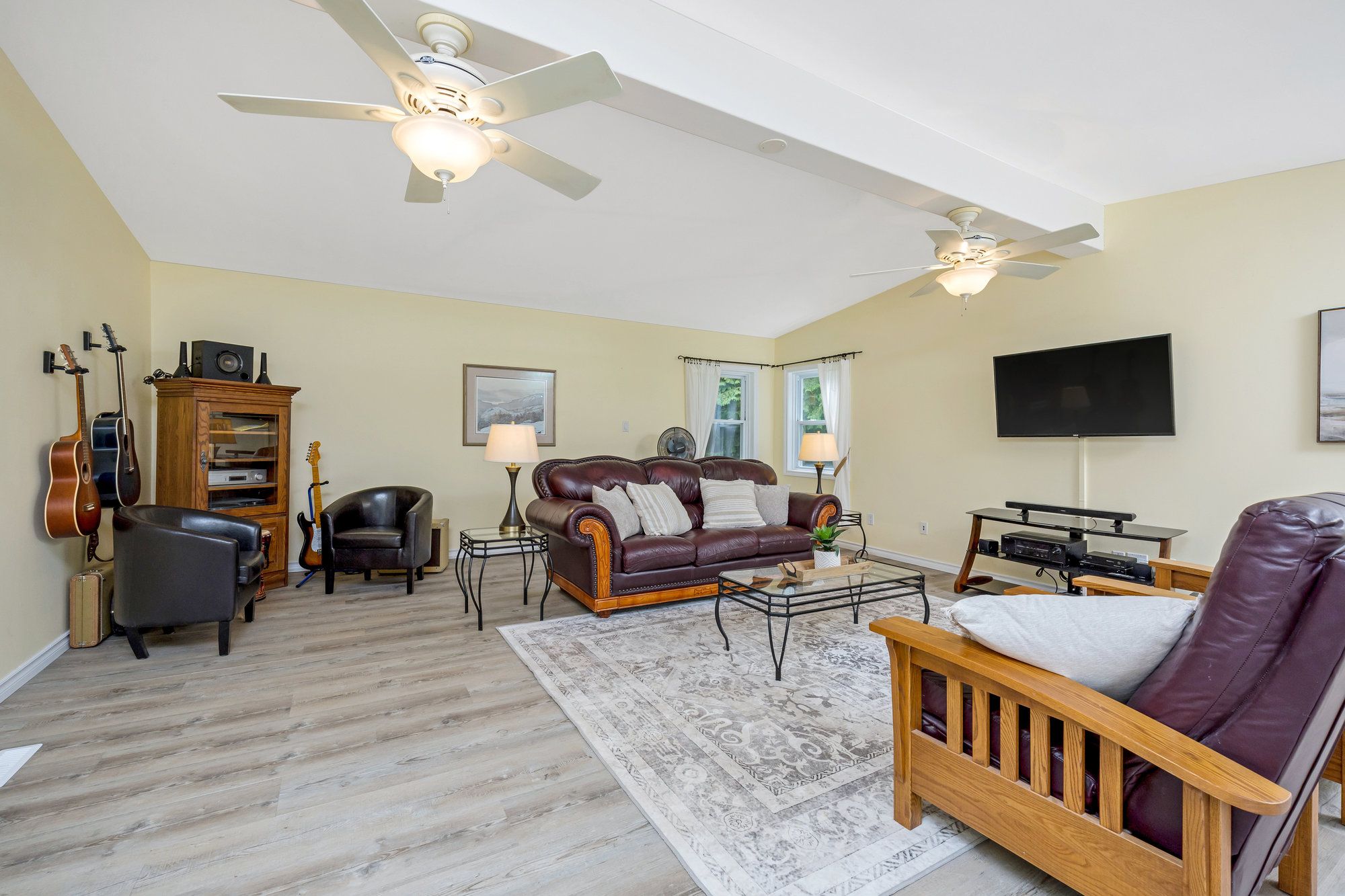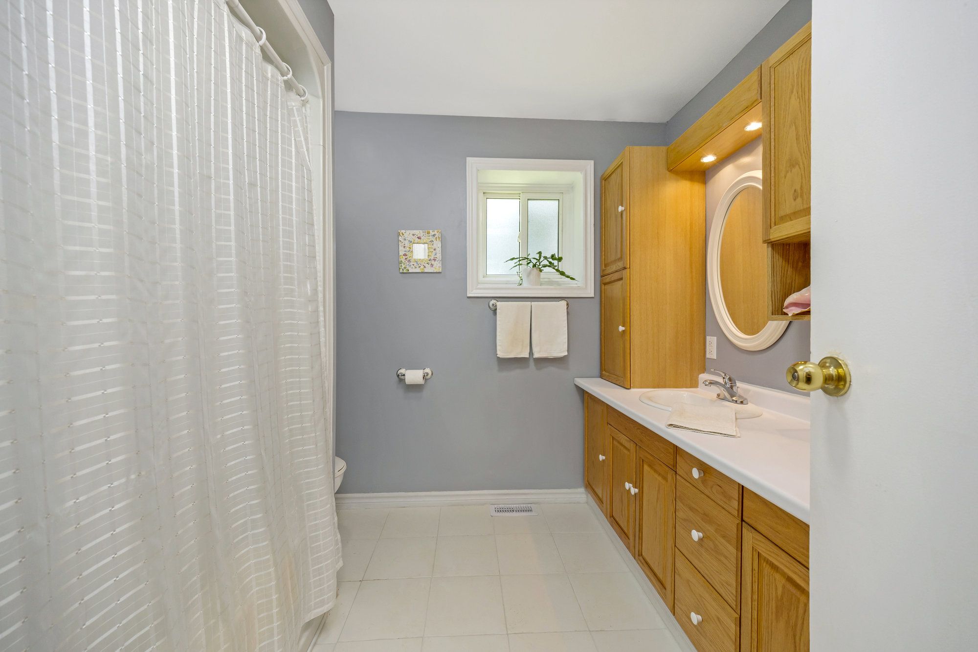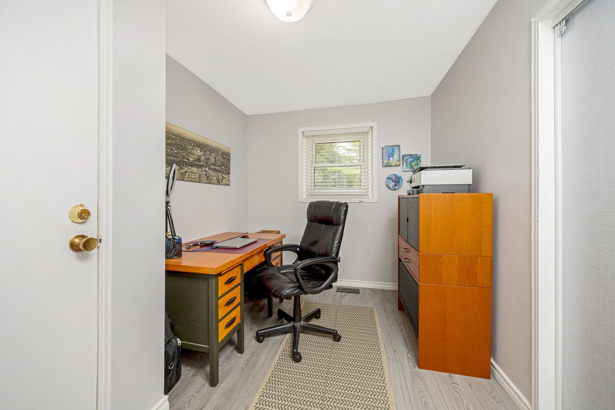 Nestled behind a screen of mature trees, this charming ranch-style bungalow offers a beautifully landscaped front yard with cozy sitting areas. The inviting covered front porch leads into a spacious kitchen, complete with stainless steel appliances and a breakfast bar that opens to the living room. A separate dining room provides the perfect setting for family meals. The expansive family room, featuring a cathedral ceiling, has a walkout to a large wooden deck, surrounded by vibrant perennial gardens and a pergola. The main floor hosts three bedrooms and a full bathroom. Outside, a detached outbuilding with a loft and workshop, fully equipped with electricity, offers plenty of space for hobbies and storage. The serene backyard includes vegetable gardens and a personal orchard with cherry, pear, and apple trees.