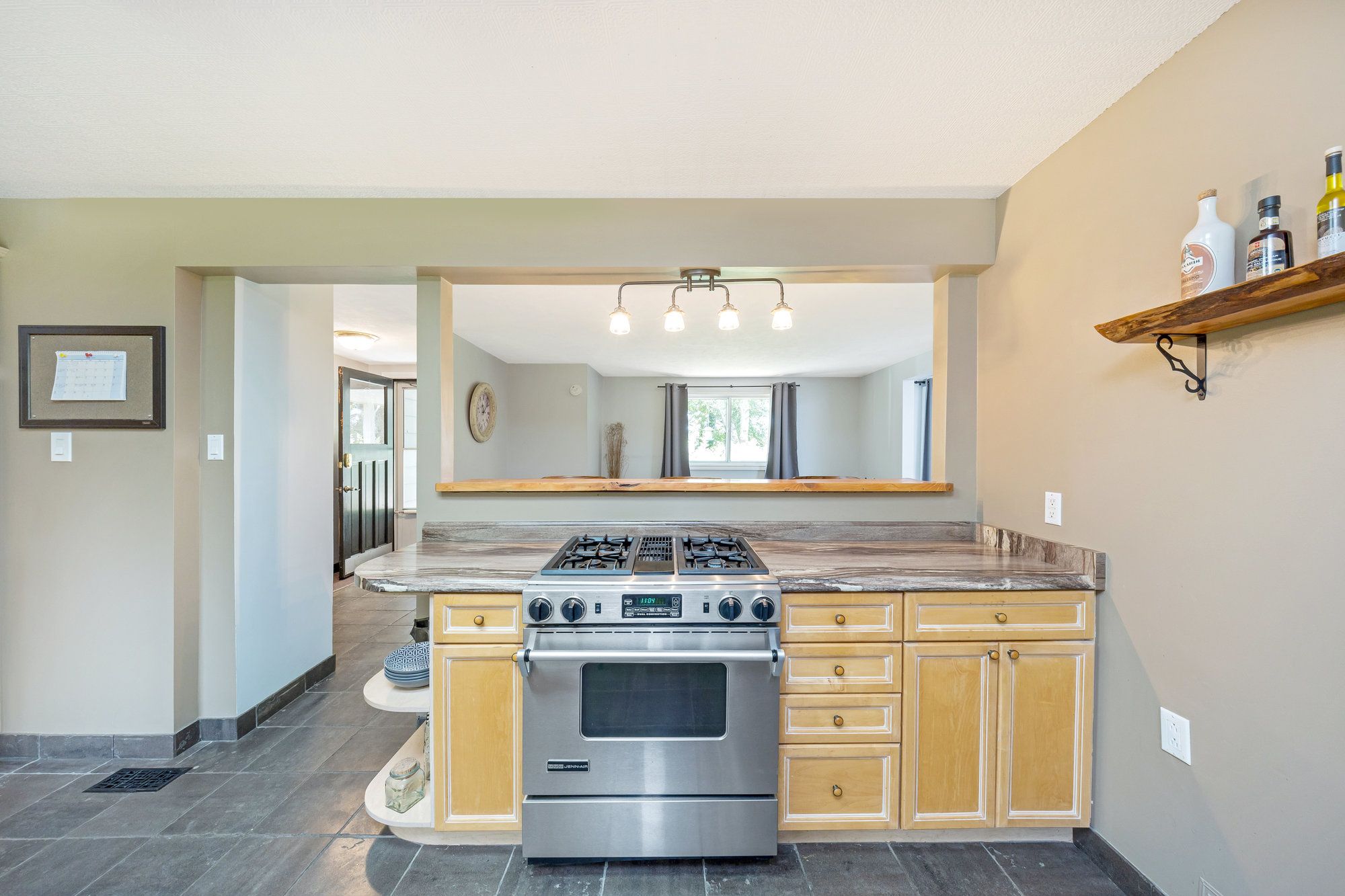 • Spacious kitchen with stainless steel appliances and breakfast bar.