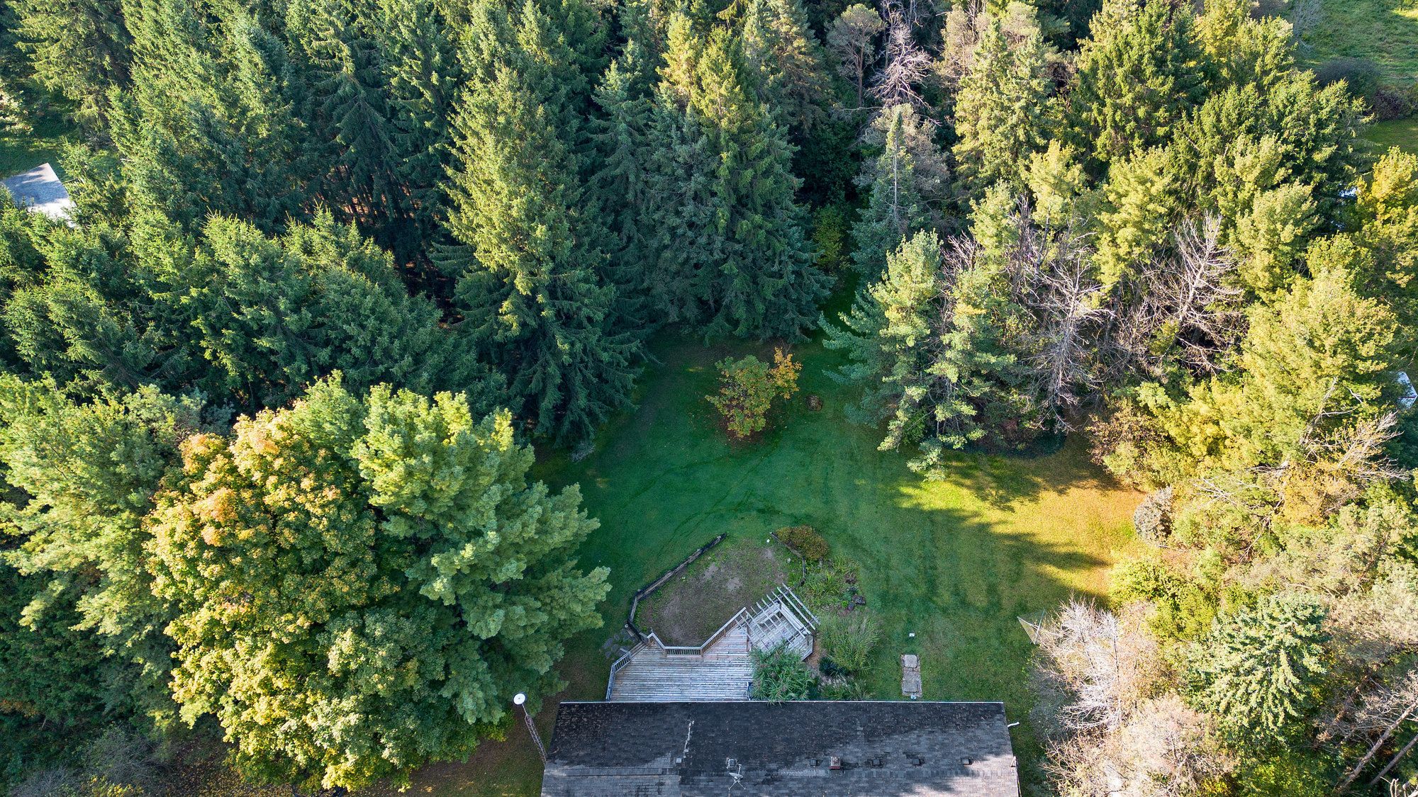 • Serene backyard featuring vegetable gardens and a personal orchard.