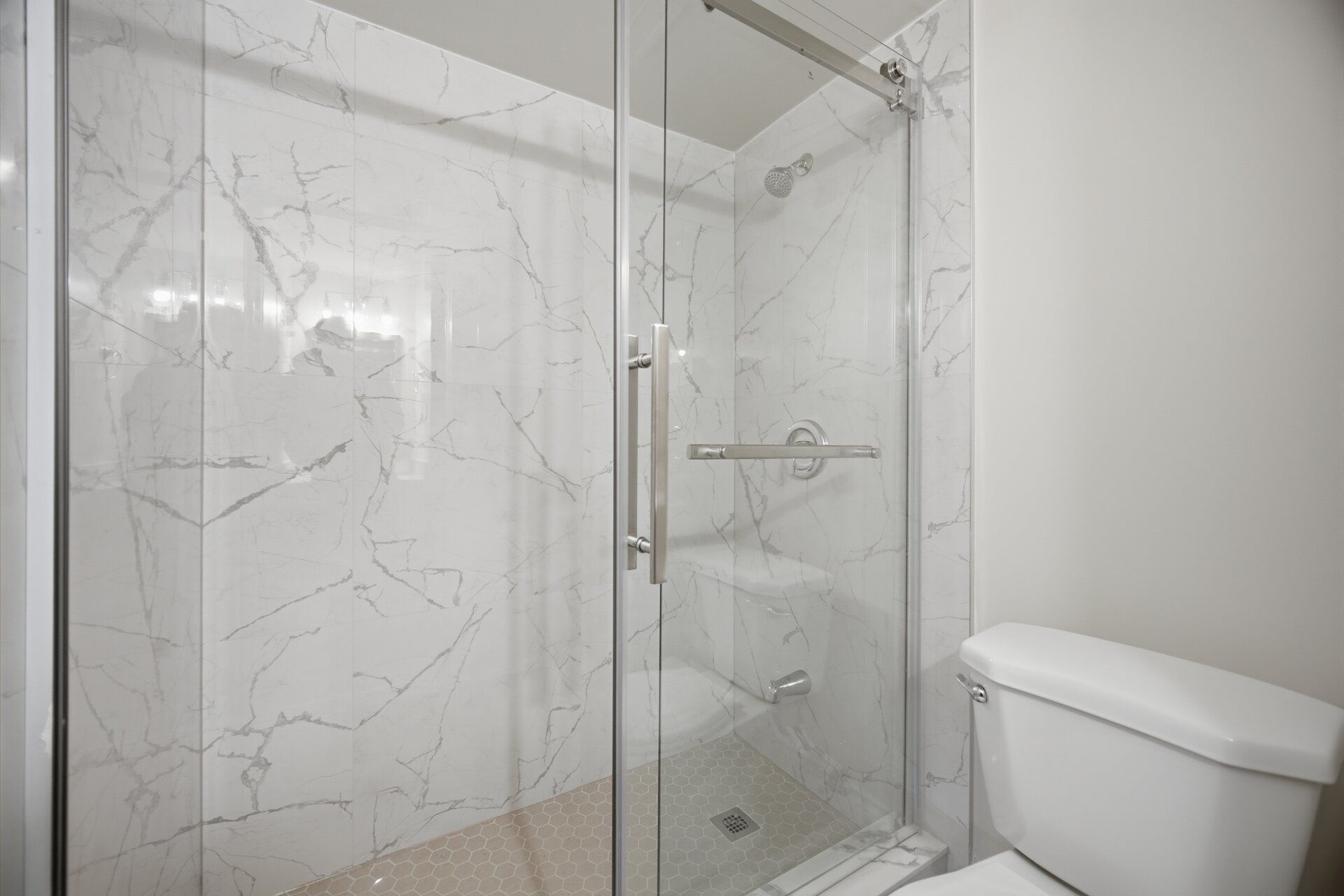• Modern kitchen with quartz countertops and updated appliances for easy cooking.