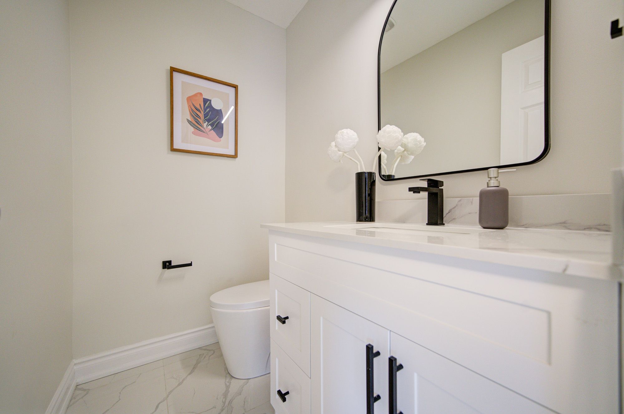 • New kitchen featuring modern cabinetry and quartz countertops.