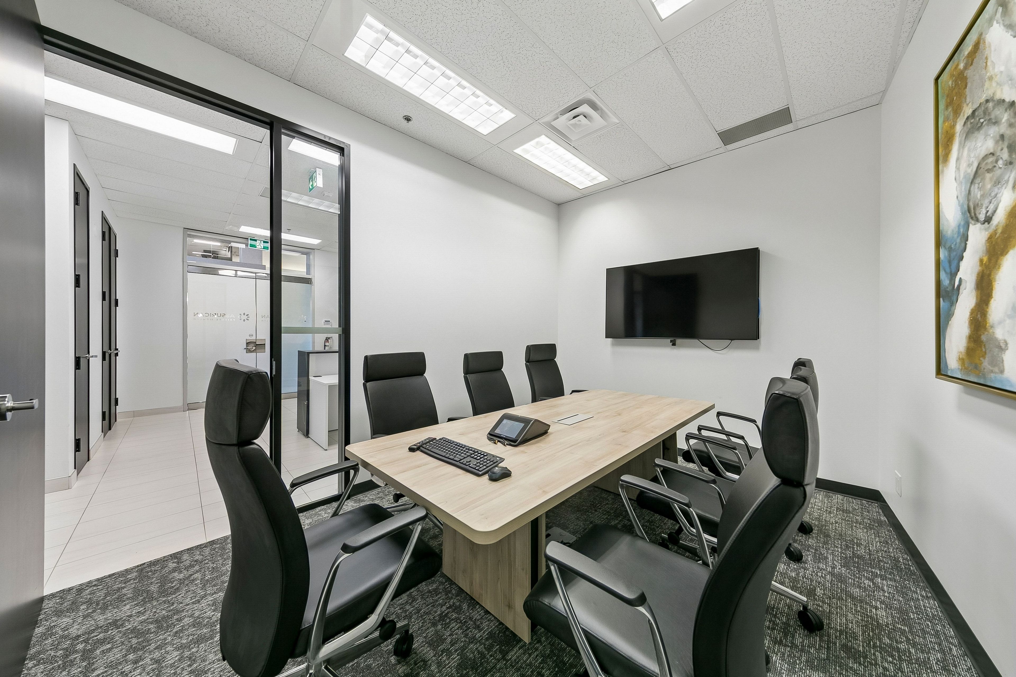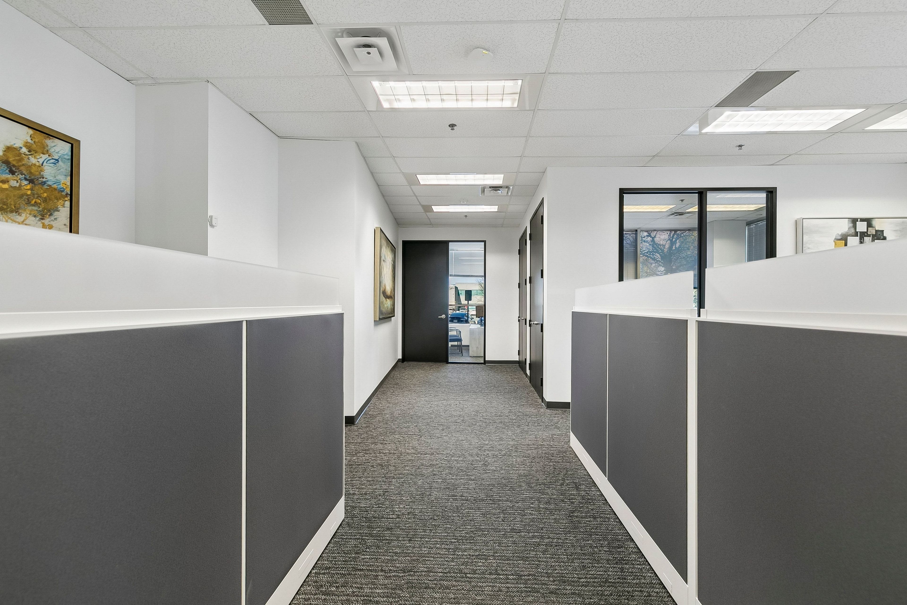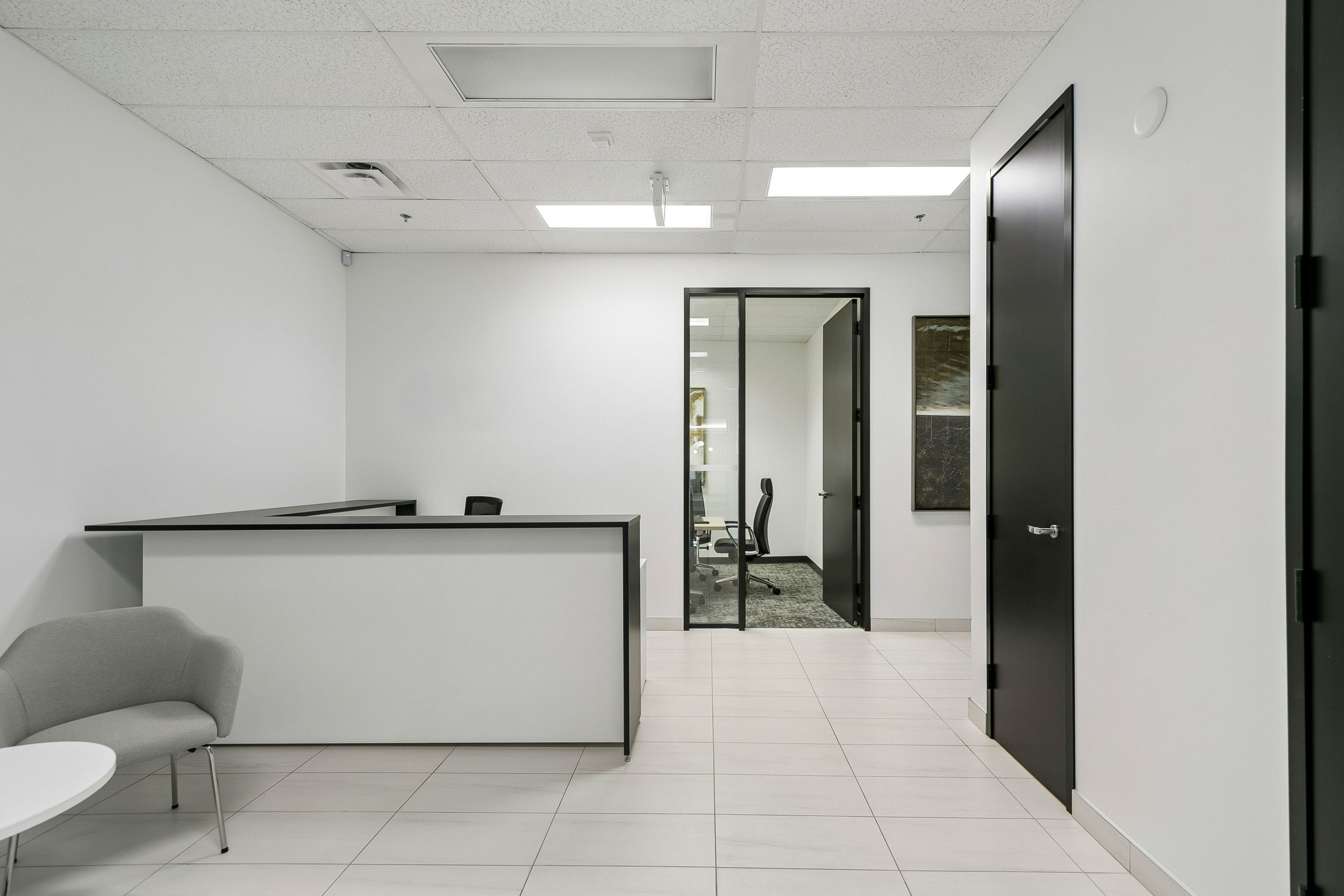 • Curated artwork and quality furnishings enhance the workspace's polished image.