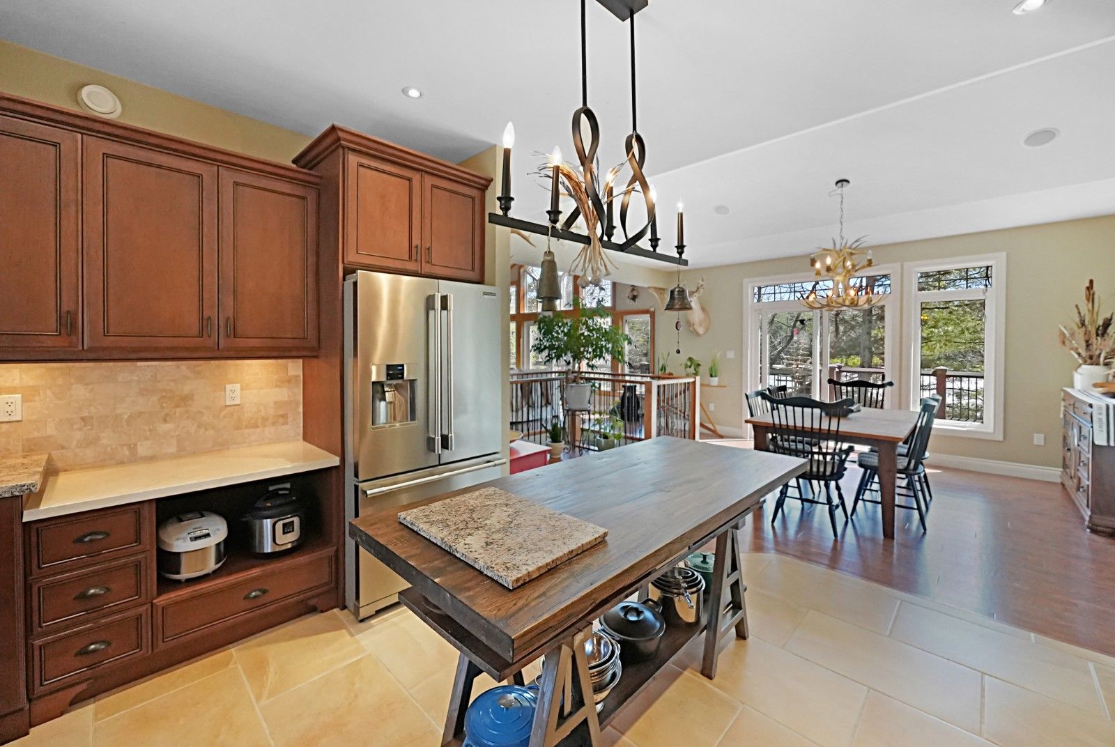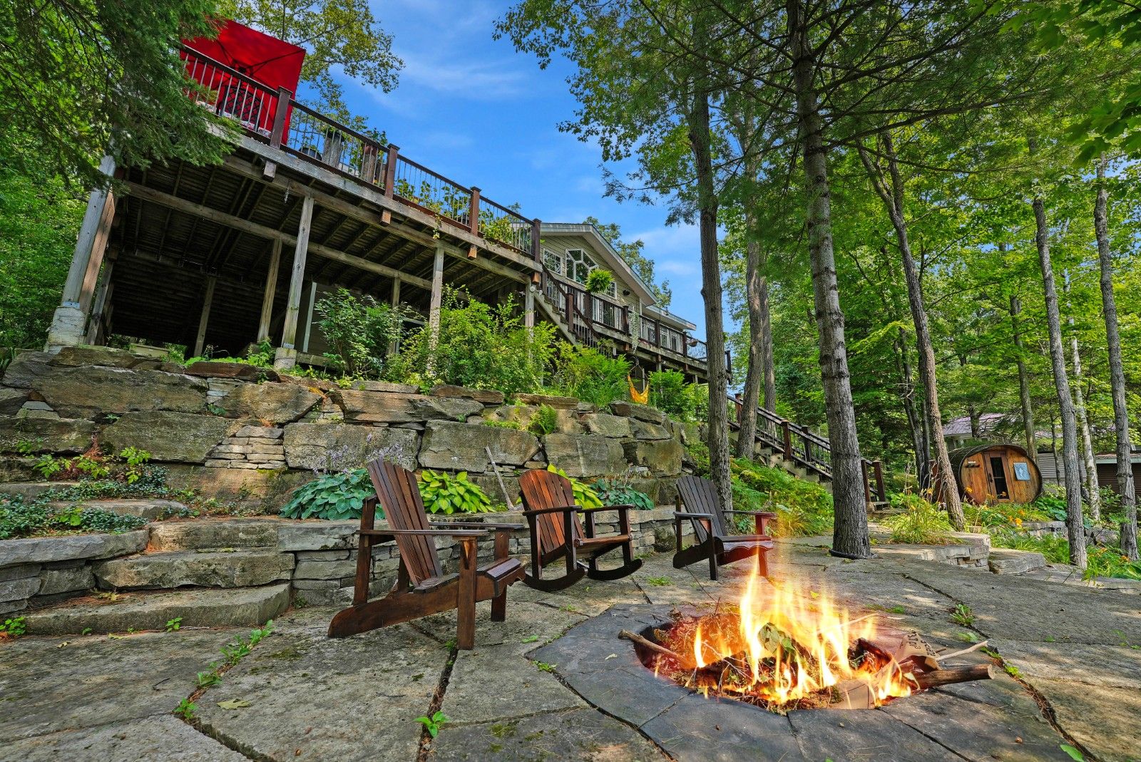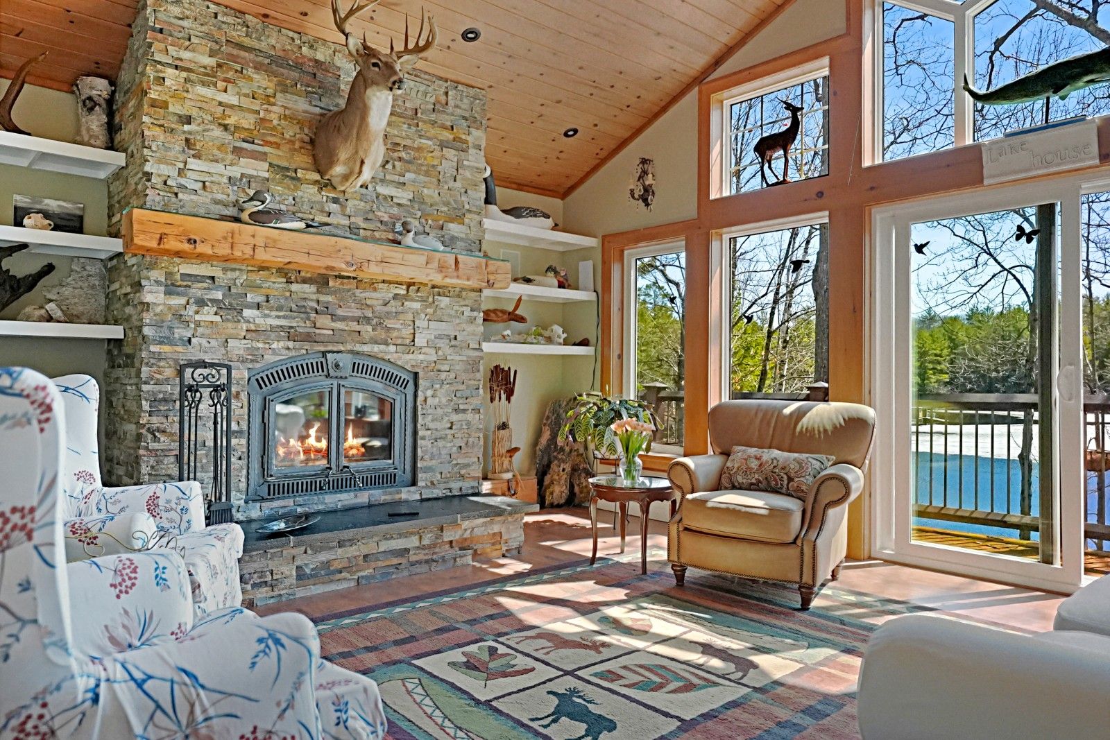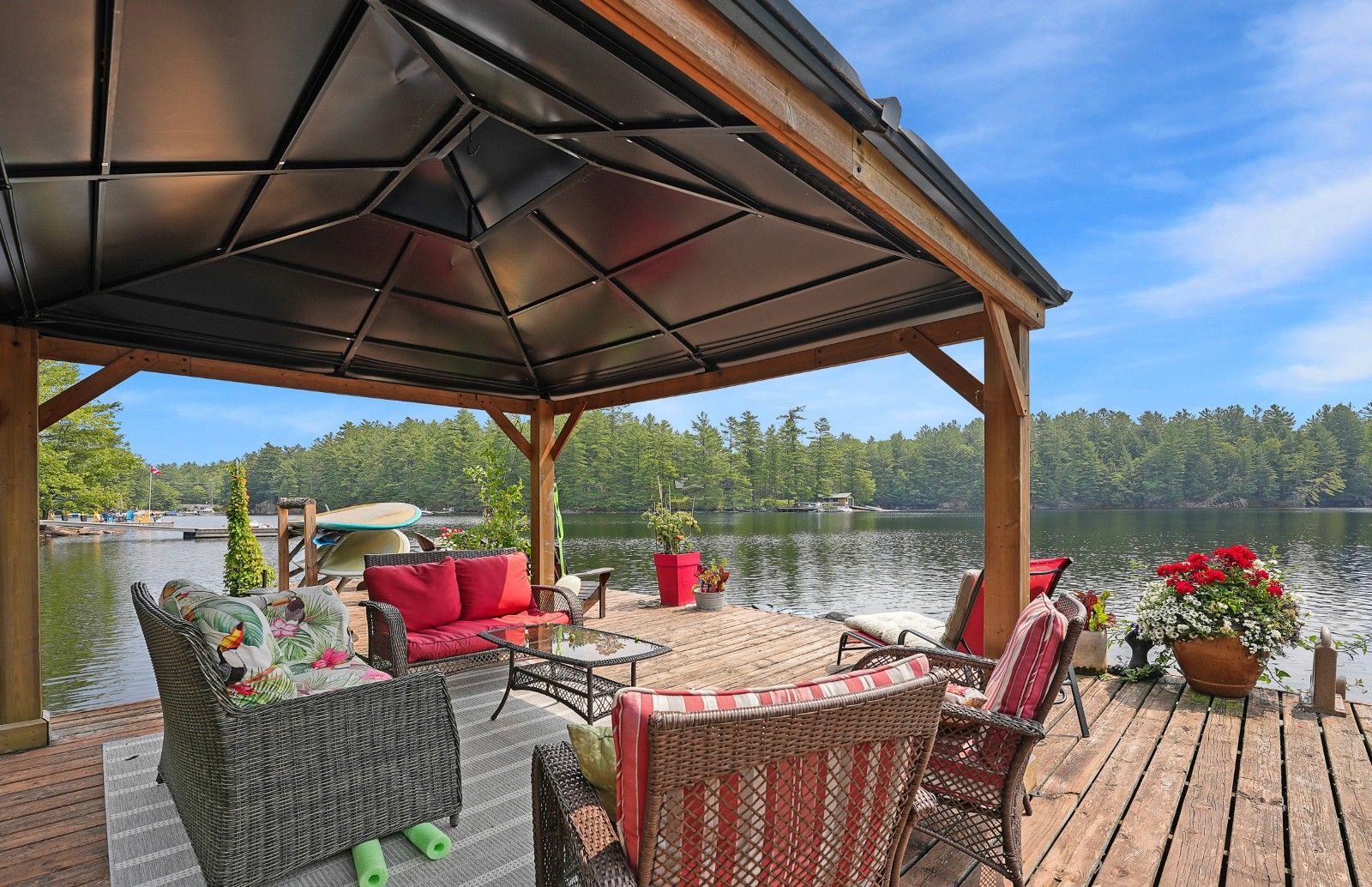 Located on kushog lake in algonquin highlands, this fully finished viceroy home offers a spacious and family-focused waterfront setting in a sheltered bay with minimal boat traffic-ideal for swimming, paddleboarding, canoeing, and kayaking. With approximately 3,600 sq ft of living space, the home is designed to comfortably accommodate larger families. The main floor features cathedral ceilings and an open-concept layout, with a wood-burning fireplace in the living room and large windows bringing in natural light and lake views. The primary bedroom includes a 3-piece ensuite and walkout to the lakeside deck, while two additional bedrooms and a full bathroom complete the main level. The walkout lower level adds even more space, offering two additional bedrooms, a 4-piece bathroom, and a large rec room with a propane fireplace-perfect for movie nights, games, or extended family stays. Outdoors, the property is professionally landscaped and set up for gathering and relaxation, featuring a screened-in porch, a lakeside firepit area, and a sauna by the water. Located just 20 minutes to minden and 30 minutes to haliburton, and close to some of the area's well-known dining spots, this property combines space, comfort, and a location well-suited for making lasting family memories.