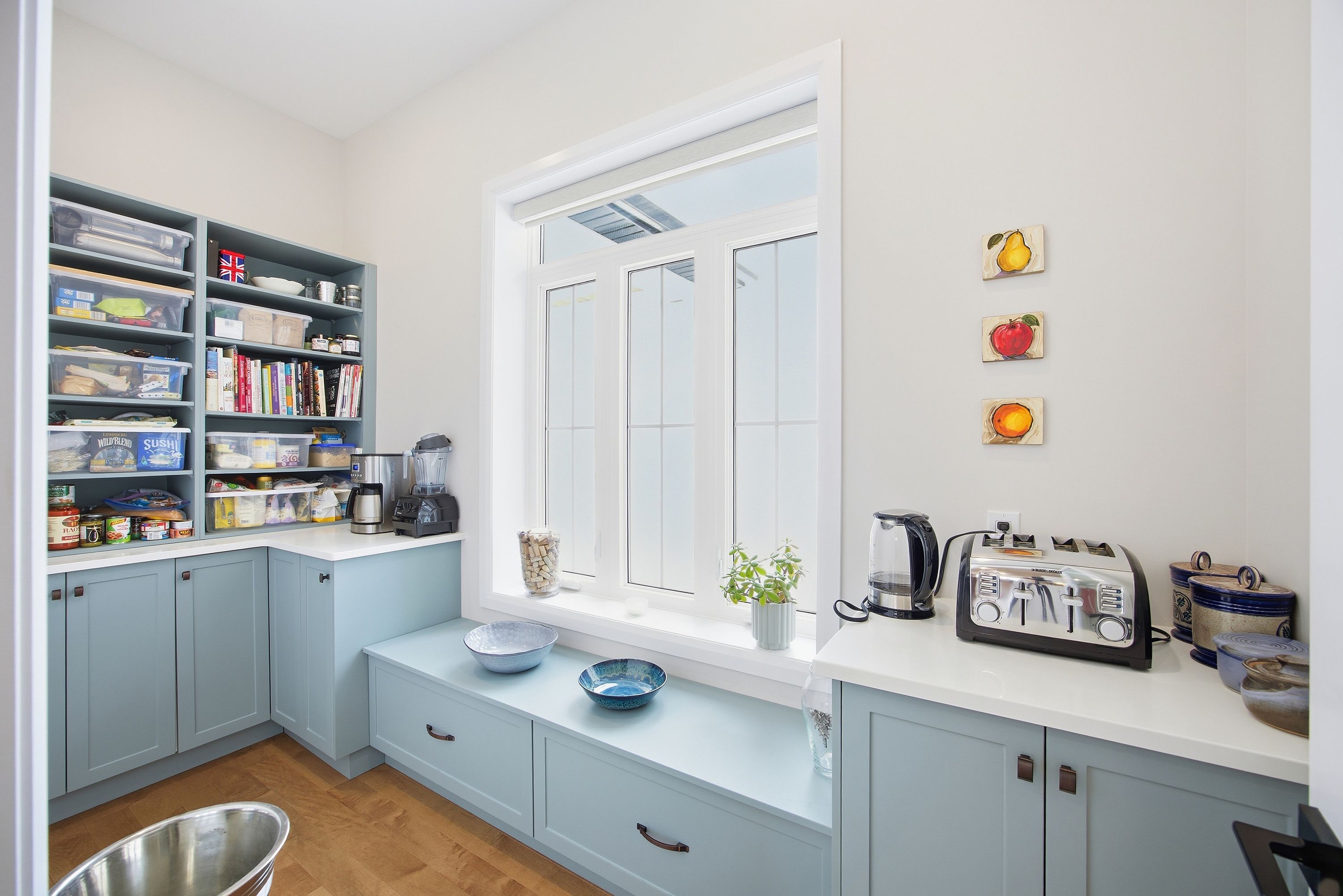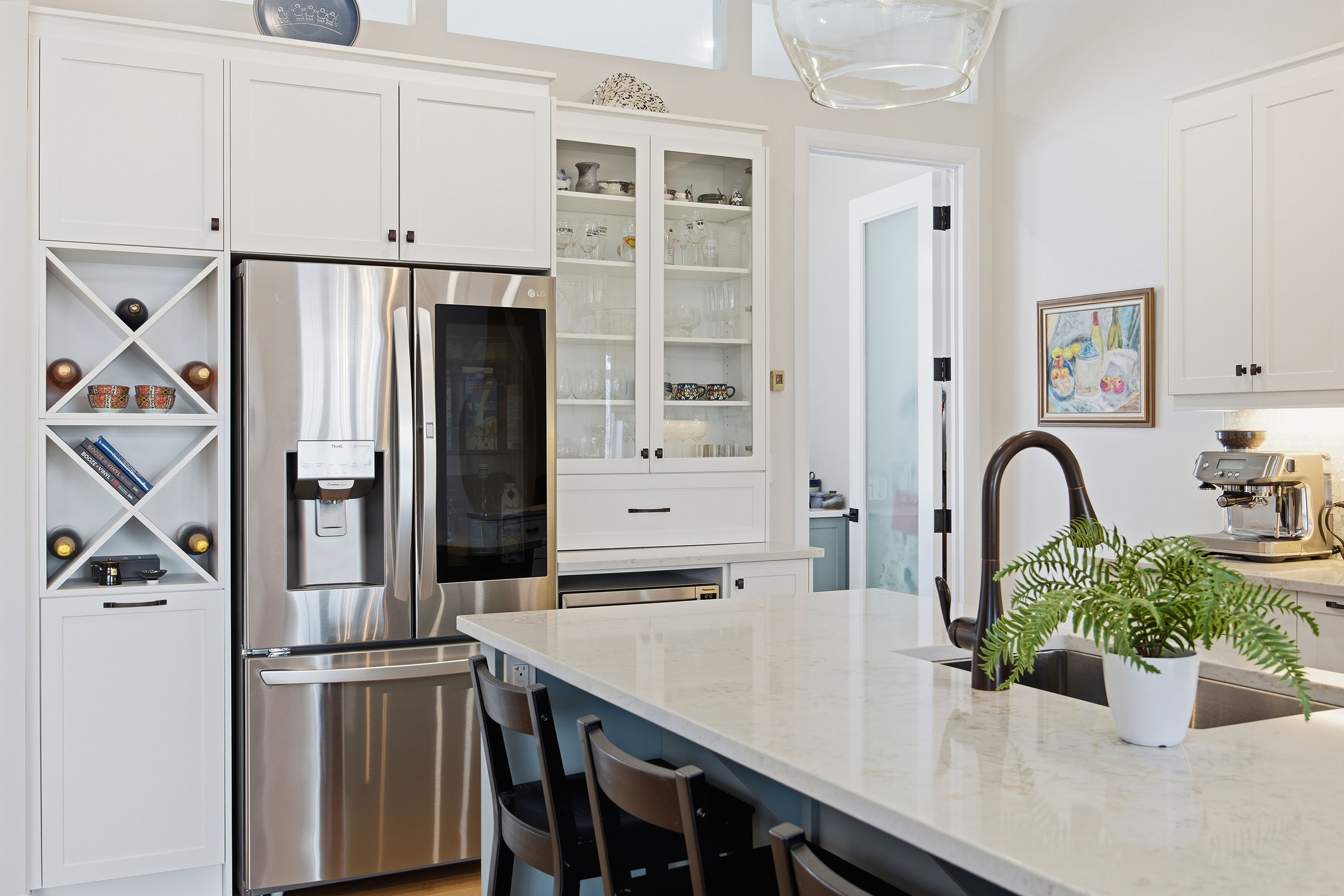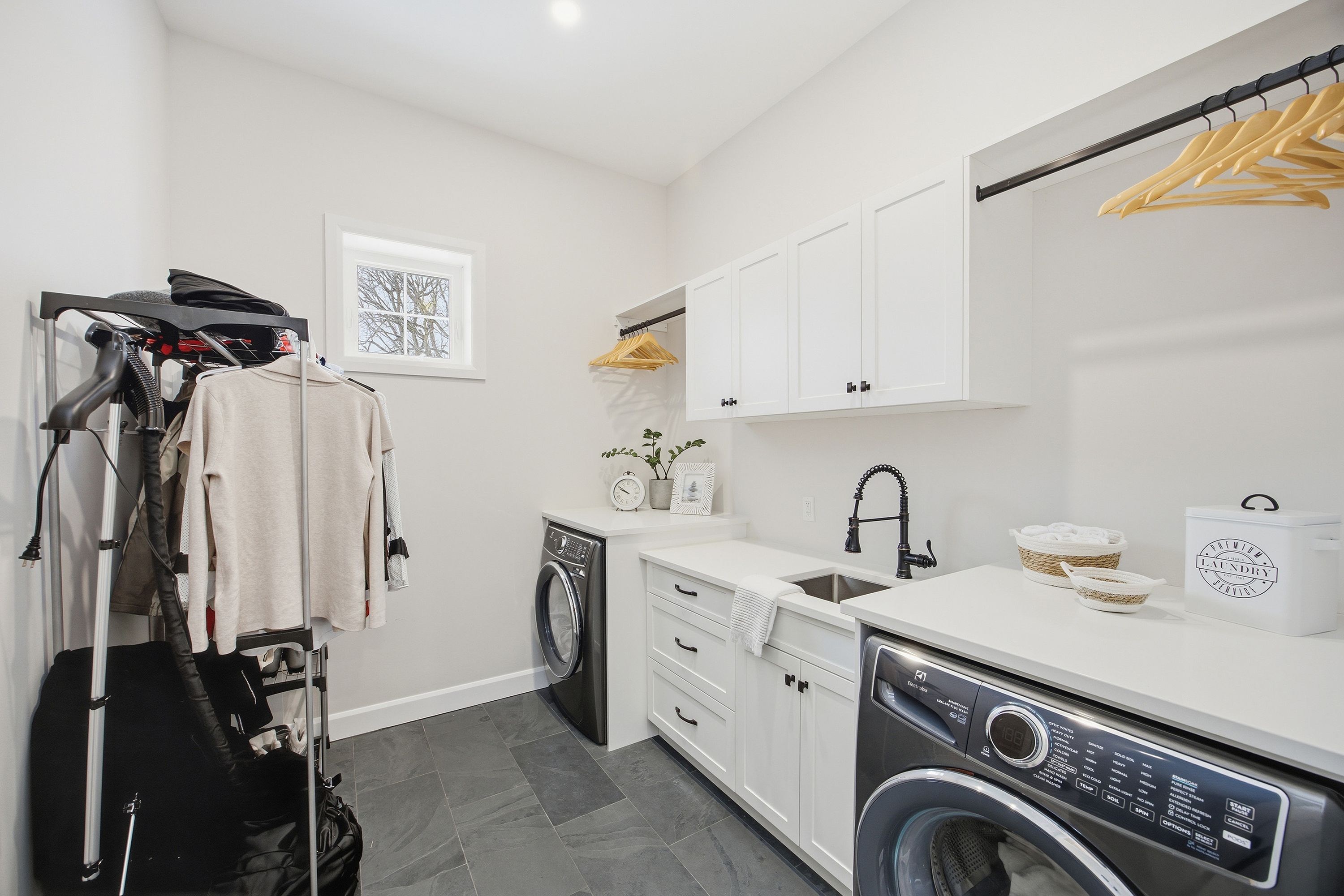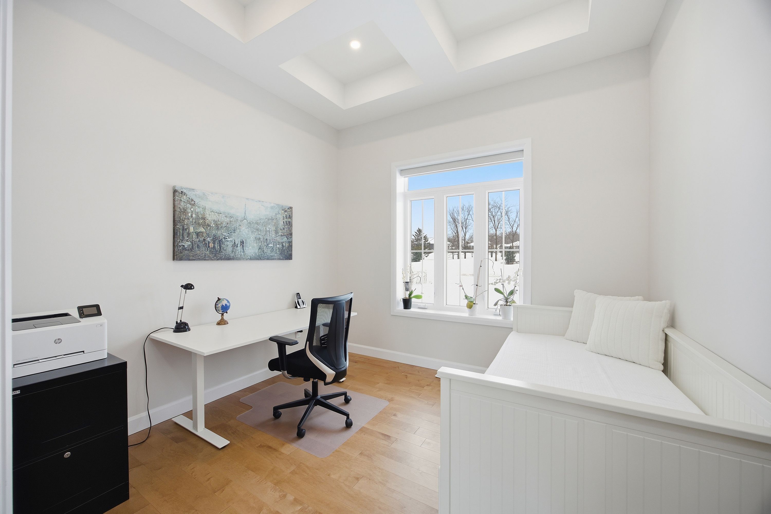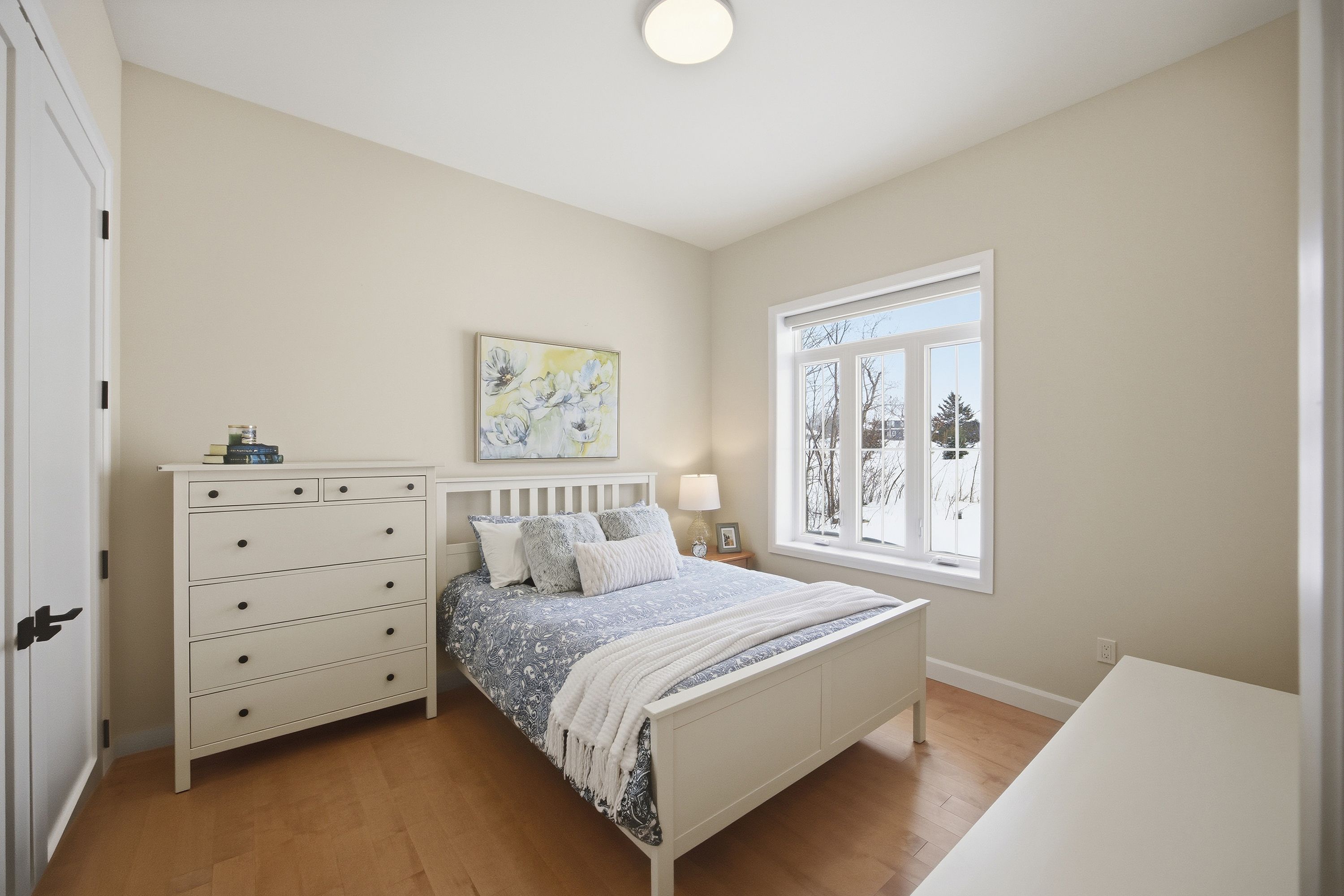 • Expansive windows provide light and picturesque wooded views with lake glimpses.