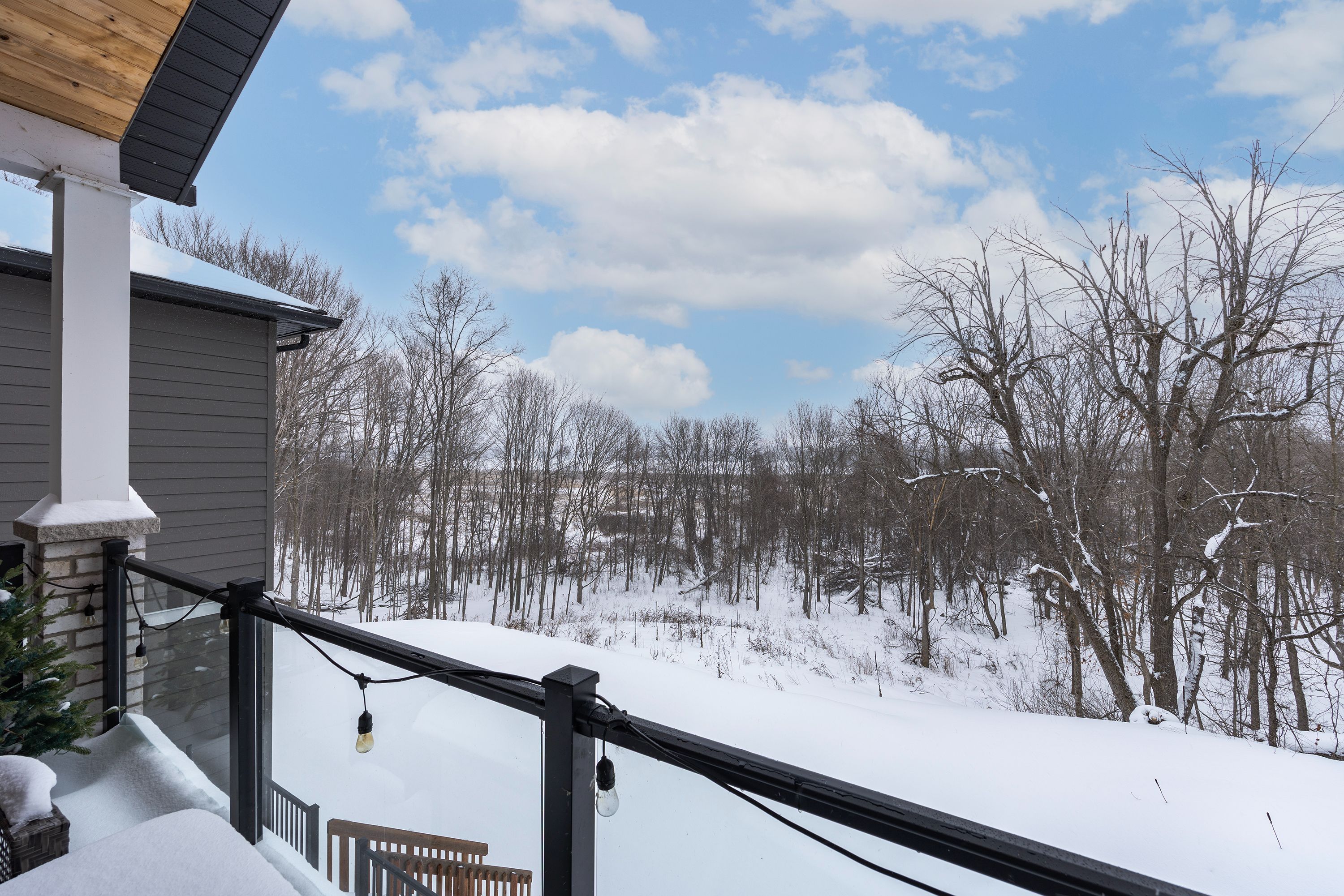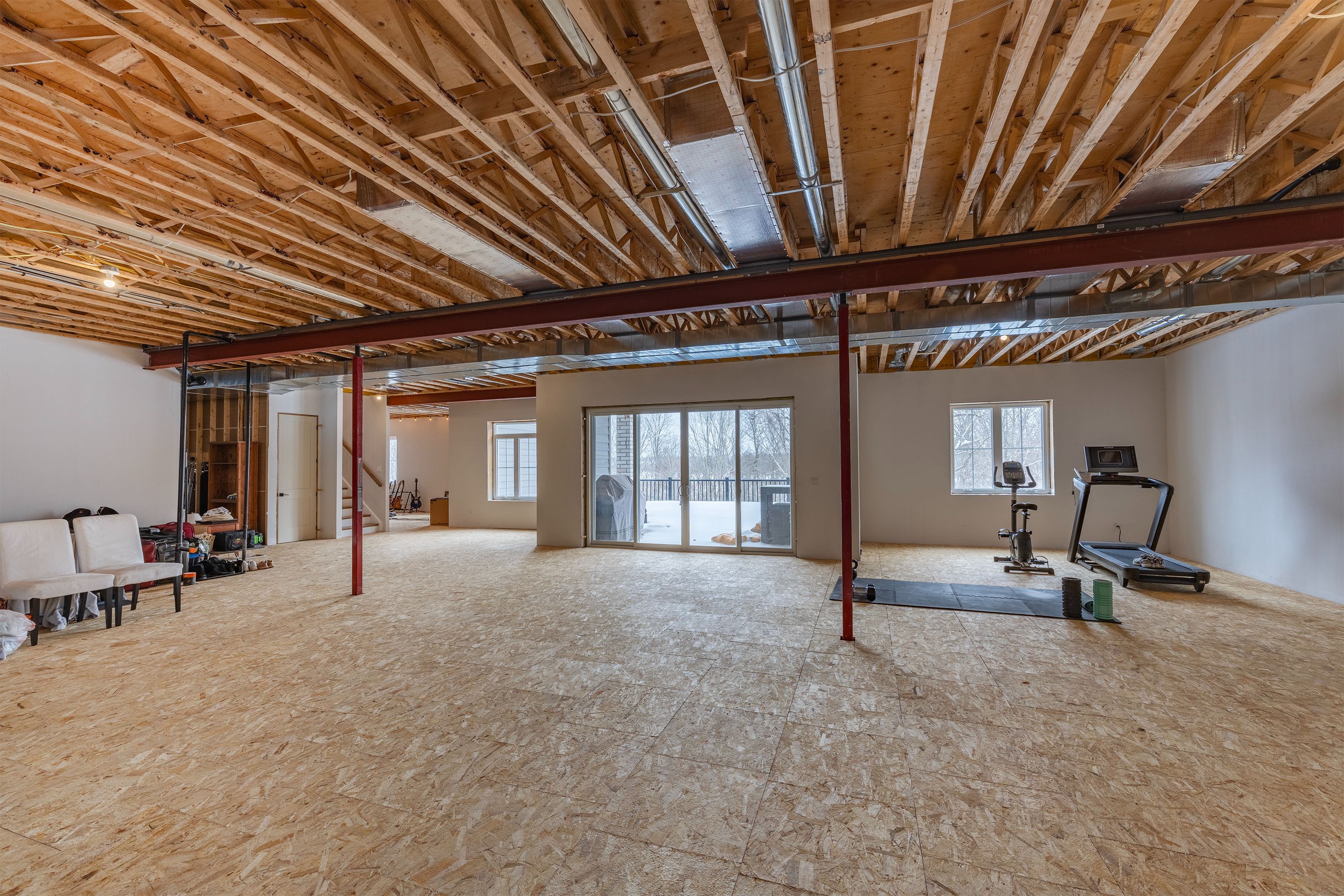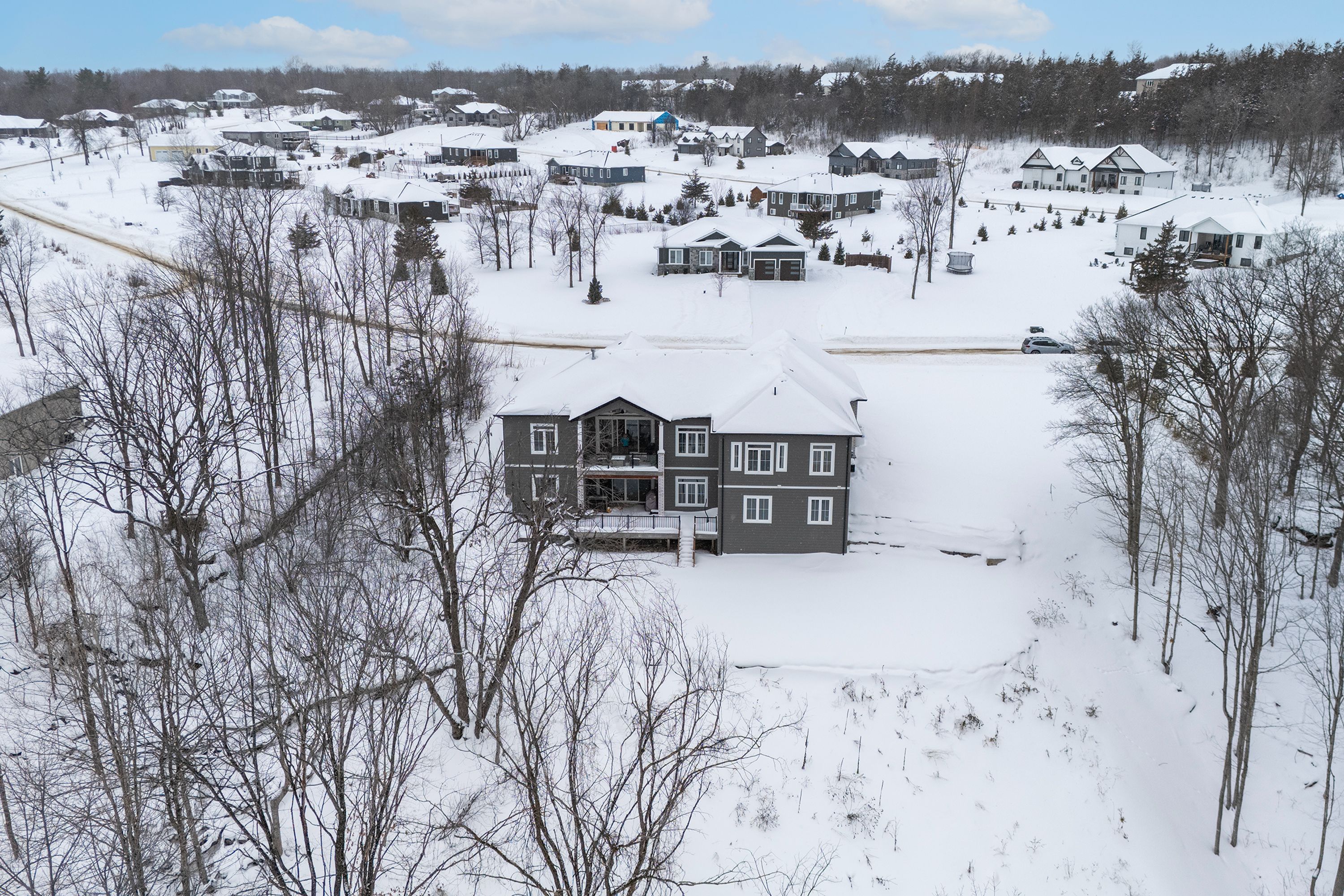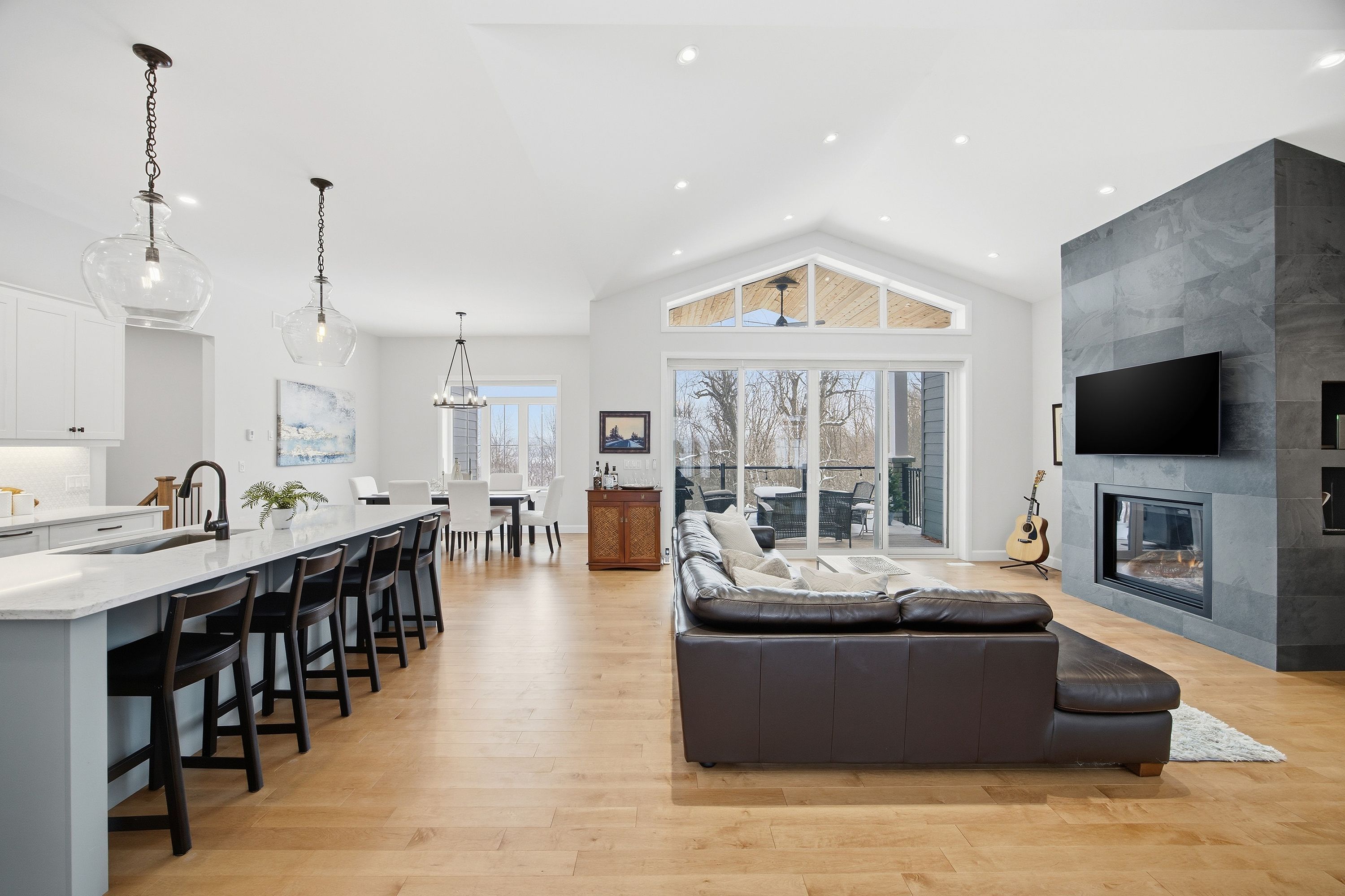 Nestled within a desirable lakefront community, this custom-built executive home offers refined living surrounded by natural beauty. Thoughtfully designed and impeccably maintained, the property blends elegance, comfort, and opportunity. The inviting living room showcases soaring vaulted ceilings and a stunning floor-to-ceiling propane fireplace, creating a dramatic focal point and warm gathering space. Expansive windows bring in natural light while framing peaceful wooded views with seasonal glimpses of the lake. Step outside to two levels of decking that overlook mature trees, providing the perfect setting for entertaining or relaxing in privacy. The front and rear grounds are beautifully landscaped, enhancing both curb appeal and outdoor enjoyment. The three-car garage offers ample space for vehicles, recreational equipment, and all the extras that come with an active lifestyle. The expansive unfinished walkout basement presents incredible potential. Already roughed in with a large bathroom, the space is ready to be transformed into whatever you envision - an indoor gym, music studio, in-law suite, recreation or party room, or additional living quarters. The possibilities are truly endless. This exceptional home offers luxury, flexibility, and room to grow - all within a serene lake community setting.