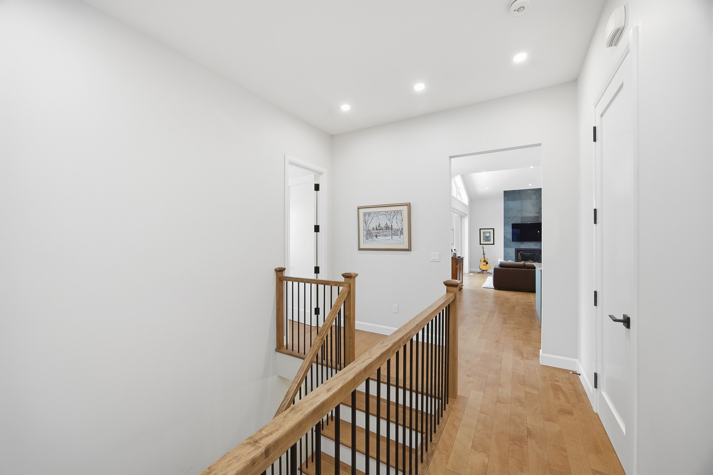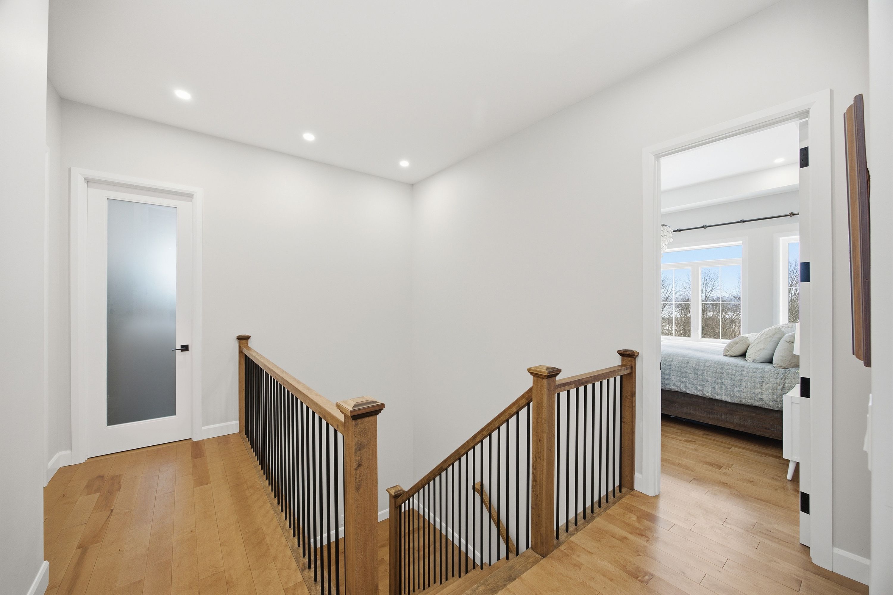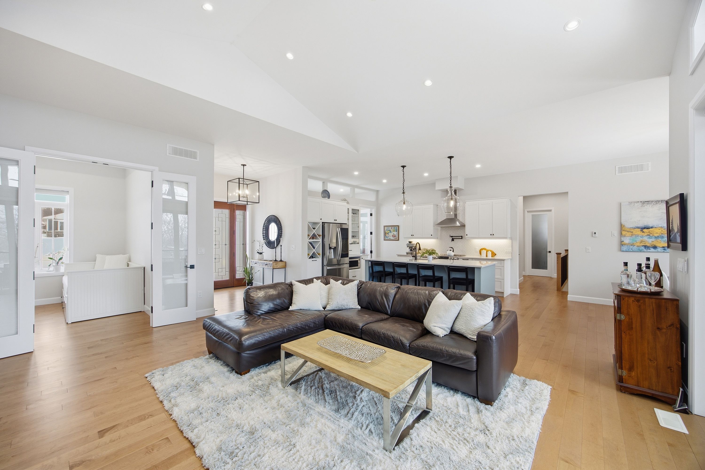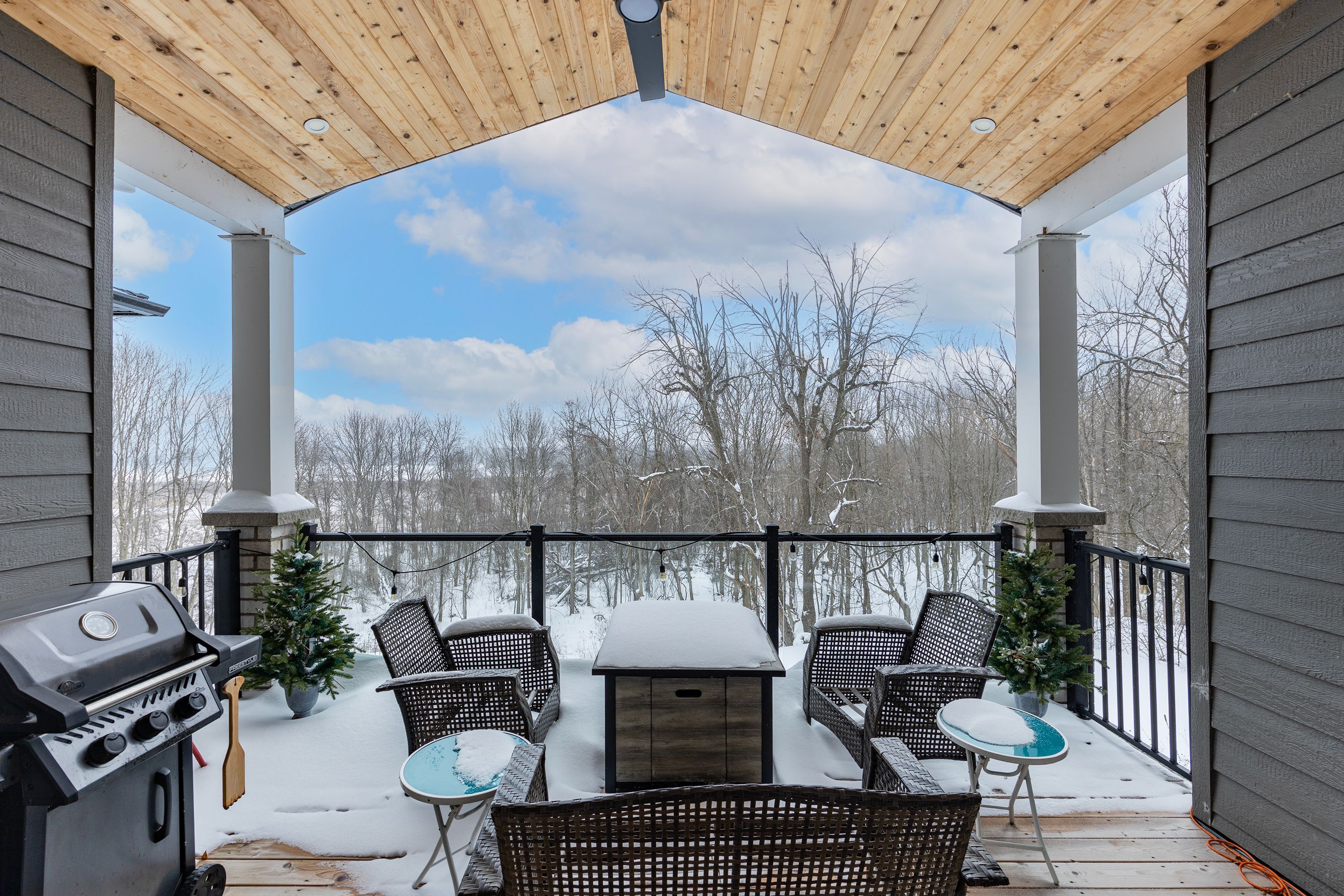 Nestled within a desirable lakefront community, this custom-built executive home offers refined living surrounded by natural beauty. Thoughtfully designed and impeccably maintained, the property blends elegance, comfort, and opportunity. The inviting living room showcases soaring vaulted ceilings and a stunning floor-to-ceiling propane fireplace, creating a dramatic focal point and warm gathering space. Expansive windows bring in natural light while framing peaceful wooded views with seasonal glimpses of the lake. Step outside to two levels of decking that overlook mature trees, providing the perfect setting for entertaining or relaxing in privacy. The front and rear grounds are beautifully landscaped, enhancing both curb appeal and outdoor enjoyment. The three-car garage offers ample space for vehicles, recreational equipment, and all the extras that come with an active lifestyle. The expansive unfinished walkout basement presents incredible potential. Already roughed in with a large bathroom, the space is ready to be transformed into whatever you envision - an indoor gym, music studio, in-law suite, recreation or party room, or additional living quarters. The possibilities are truly endless. This exceptional home offers luxury, flexibility, and room to grow - all within a serene lake community setting.