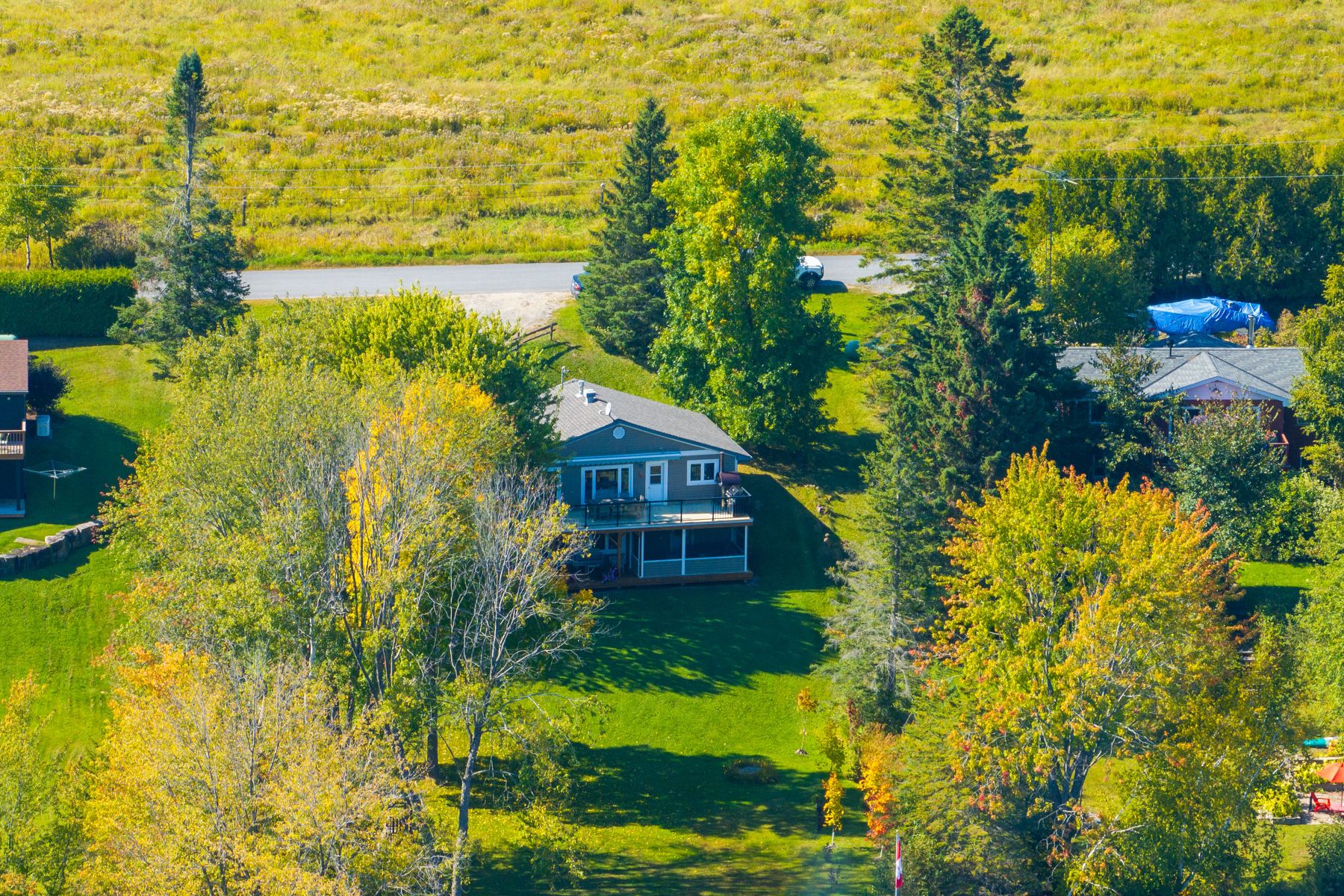 Welcome to 1111 maplehurst dr., a stunning, fully renovated cottage on peninsula lake with year-round access. This turnkey property is a nature lovers dream, offering an escape that feels both serene and convenient. With 120 feet of private, south-facing waterfront, you can start your day with a peaceful dip from the gentle entry and spend your afternoons on the dock, which comes equipped with a hydraulic boat lift. Boating enthusiasts will love the direct access to over 40 miles of shoreline on the huntsville chain of lakes. The flat, grassy lawn is a great space for family games, while the spacious deck, featuring a retractable awning, is ideal for relaxing with a drink and enjoying the views. As the sun sets, the beautiful fire pit by the water provides the perfect backdrop for memorable evenings. Also, the property is surrounded by protected land that attracts a variety of wildlife and bird species. Inside, the three-bedroom cottage is thoughtfully designed. The main level is great for kids, with a double-bunk room, a sitting area, and a screened porch. Upstairs, you'll find two additional bedrooms, an open-concept kitchen, living, and dining area, ideal for family gatherings and entertaining. For your peace of mind, the cottage is equipped with an automatic generator, so you never have to worry about power interruptions. When you want to explore, you're only a 10-minute drive from the town of huntsville and the village of dwight, where you'll find everything from a local bakery and pharmacy to a butcher shop and grocery store. This exceptional, year-round property offers a true escape surrounded by protected land and abundant wildlife. Special features include generator, security cameras, retractable awing, water treatment, fully furnished with some being custom.
