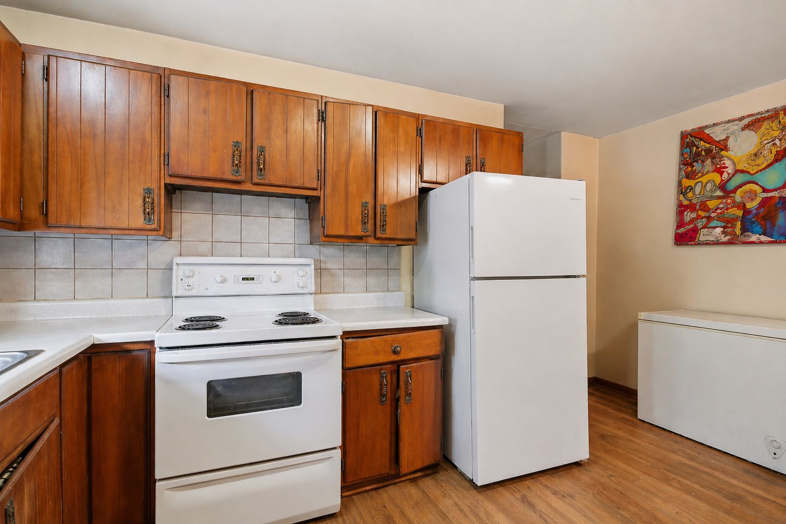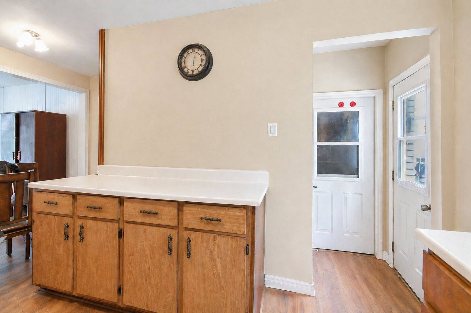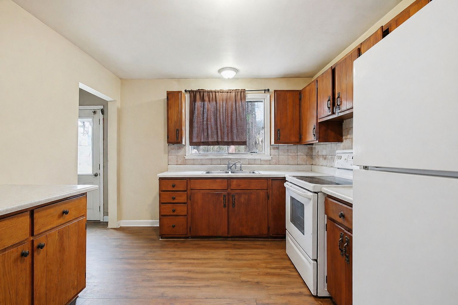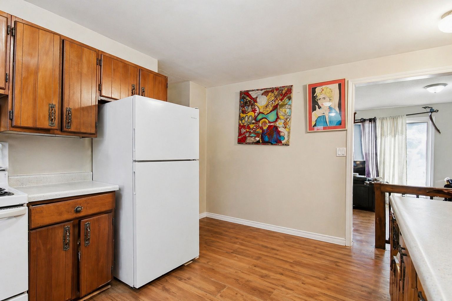 • Open eat-in kitchen leading to a private back deck for outdoor dining.