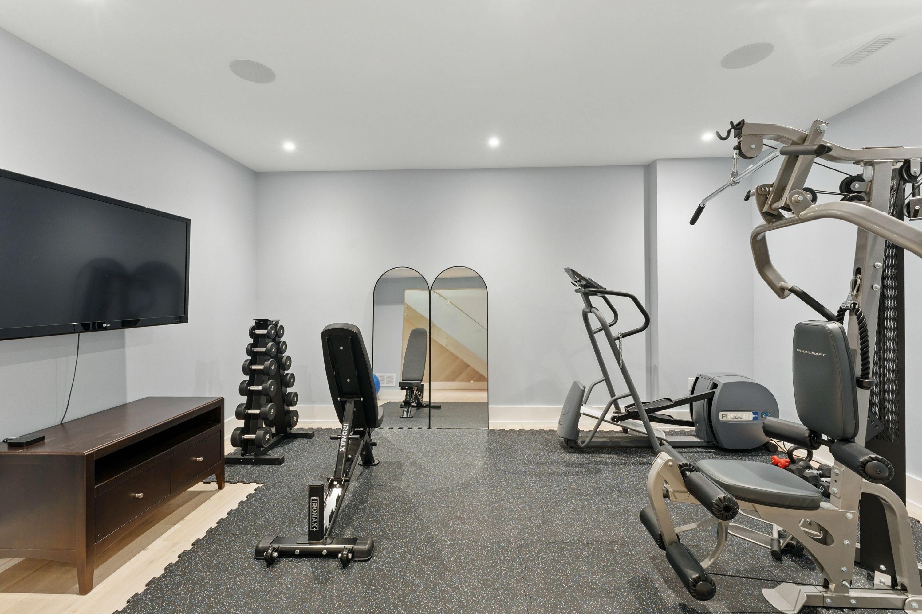 • Versatile finished lower level with gym, rec room, and additional bedroom.
