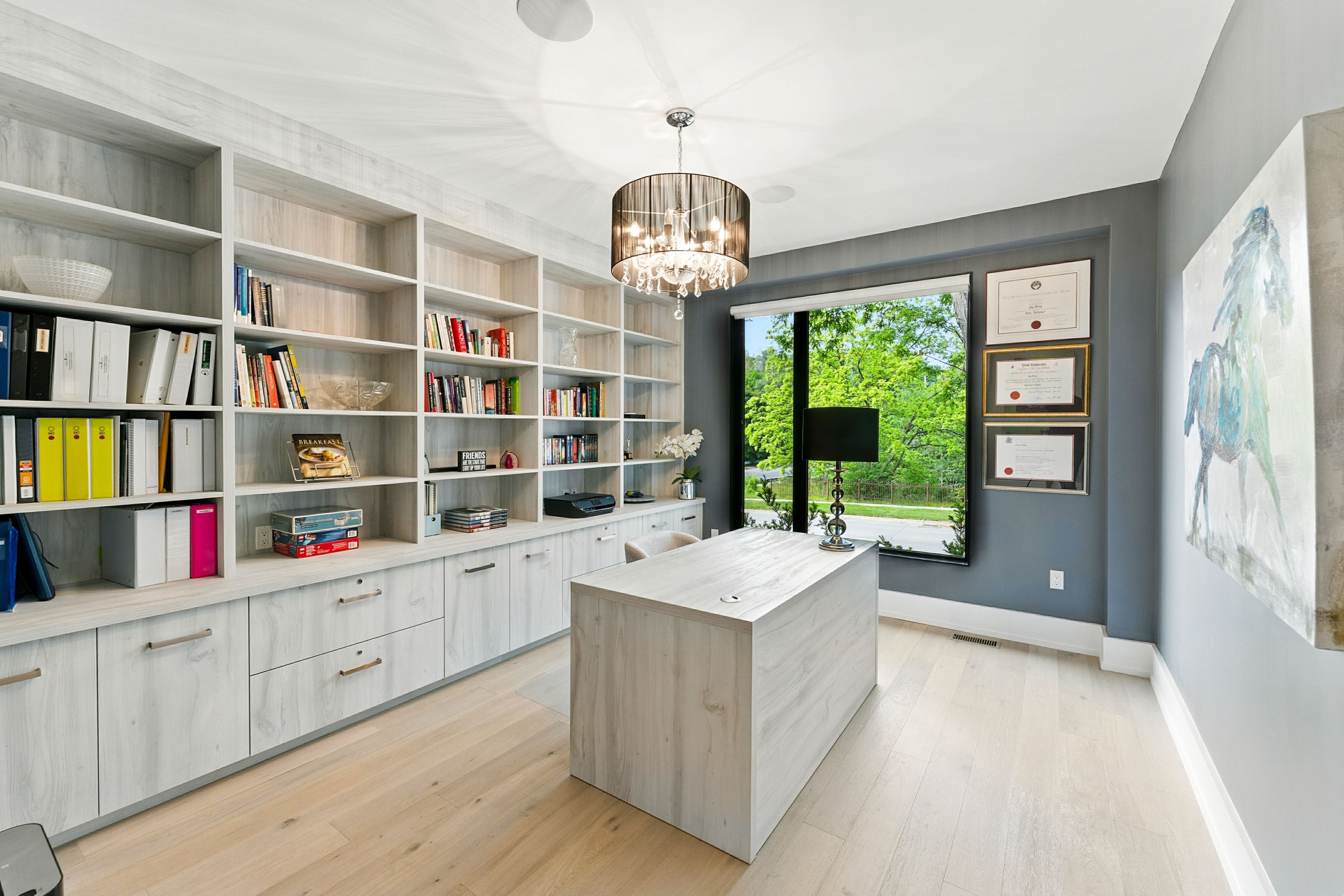 Welcome to 1112 caldwell avenue, a stunning custom-built home completed in 2019 in prestigious lorne park. Offering over 5400 sqft of beautifully finished living space across three levels and set on a generous 96 x 106 ft lot, this residence showcases timeless curb appeal with its classic stone and stucco exterior. Inside, a dramatic double-height foyer welcomes you into a thoughtfully designed interior. The chef's kitchen features premium stainless steel appliances including a wolf 6-burner gas stove, full-height custom cabinetry, and a 9 ft centre island with waterfall quartz countertop. The adjoining living room is highlighted by a gas fireplace and a custom built-in media centre. A formal dining room, beautifully designed home office with full-height custom cabinetry, and a functional mudroom complete the main level. A striking floating staircase with solid oak open risers leads to the upper level. The impressive 600+ sqft primary suite offers a walk-in closet and spa-inspired 5-pc ensuite with freestanding tub and thermostatic shower system. The upper level also features a junior suite with 3-pc ensuite, 2 additional bedrooms, and a 5-pc bathroom. The finished lower level adds exceptional versatility with a nanny's bedroom, rec room, gym, 3-pc bathroom, and ample storage. Outdoors, enjoy a private backyard surrounded by mature trees and lush foliage, featuring an expansive stone patio, gas firepit, and wood-burning fire pit. Premium finishes include engineered oak hardwood flooring, porcelain tile, oversized windows with security film, 3 skylights, motion-sensor closet lighting, and solid core doors. Additional features include sonos sound system, alarm system, hrv, sump pump, and professional-grade security cameras. Ideally located near top-rated schools including tecumseh ps, lorne park ps and lorne park ss, lake ontario, port credit village, and quick access to the qew, this exceptional home offers refined living in mississauga's most sought-after community.