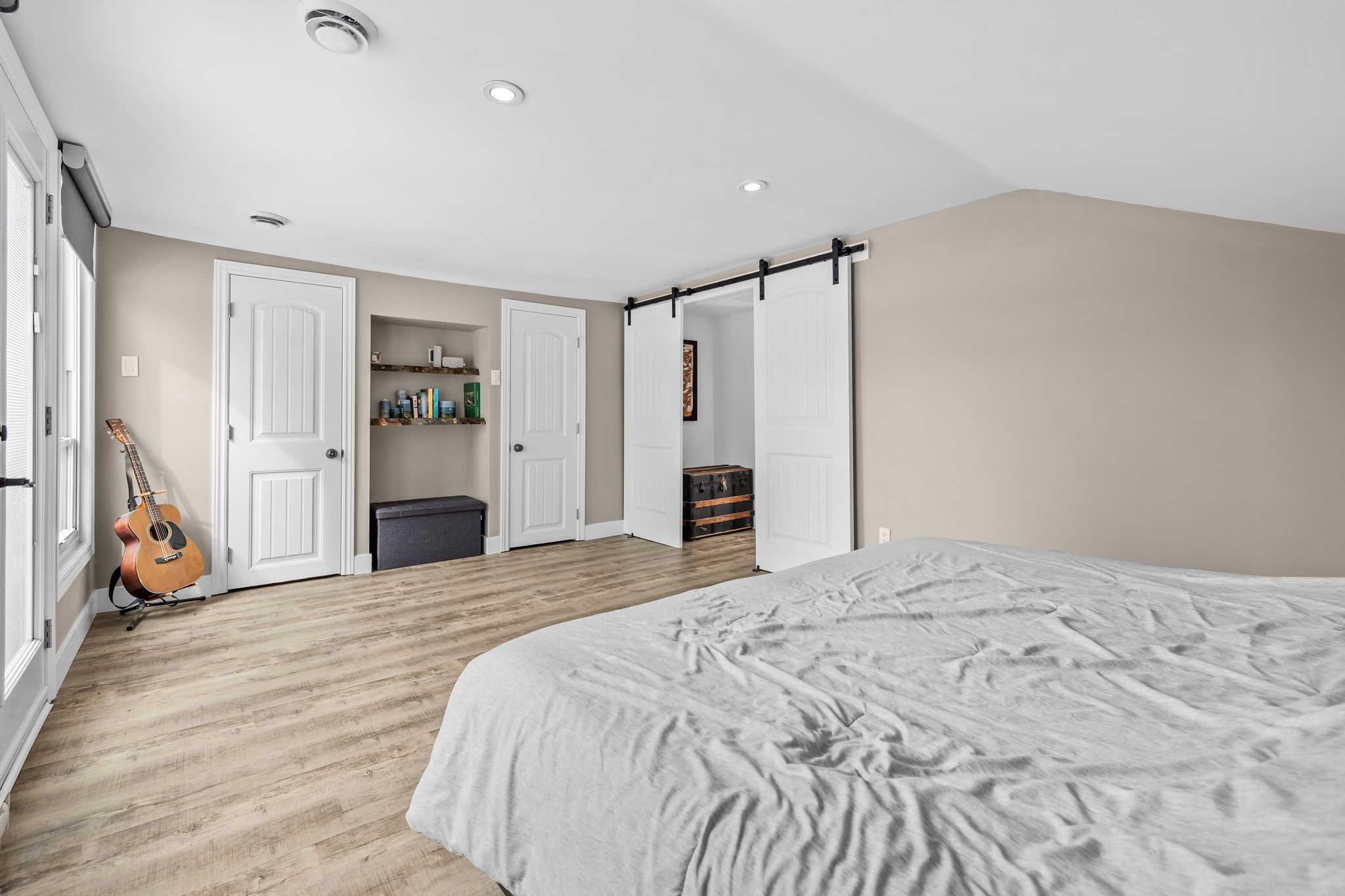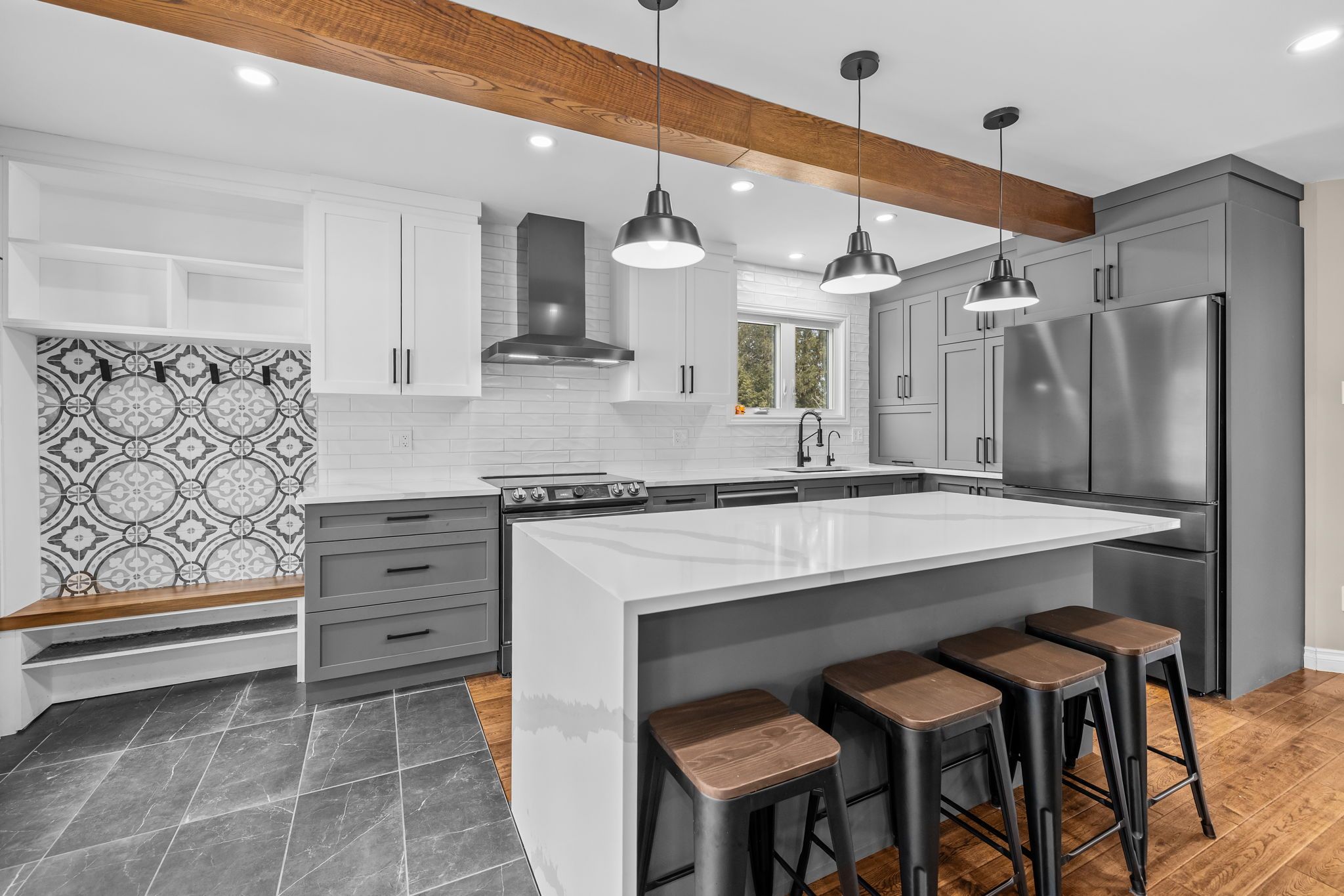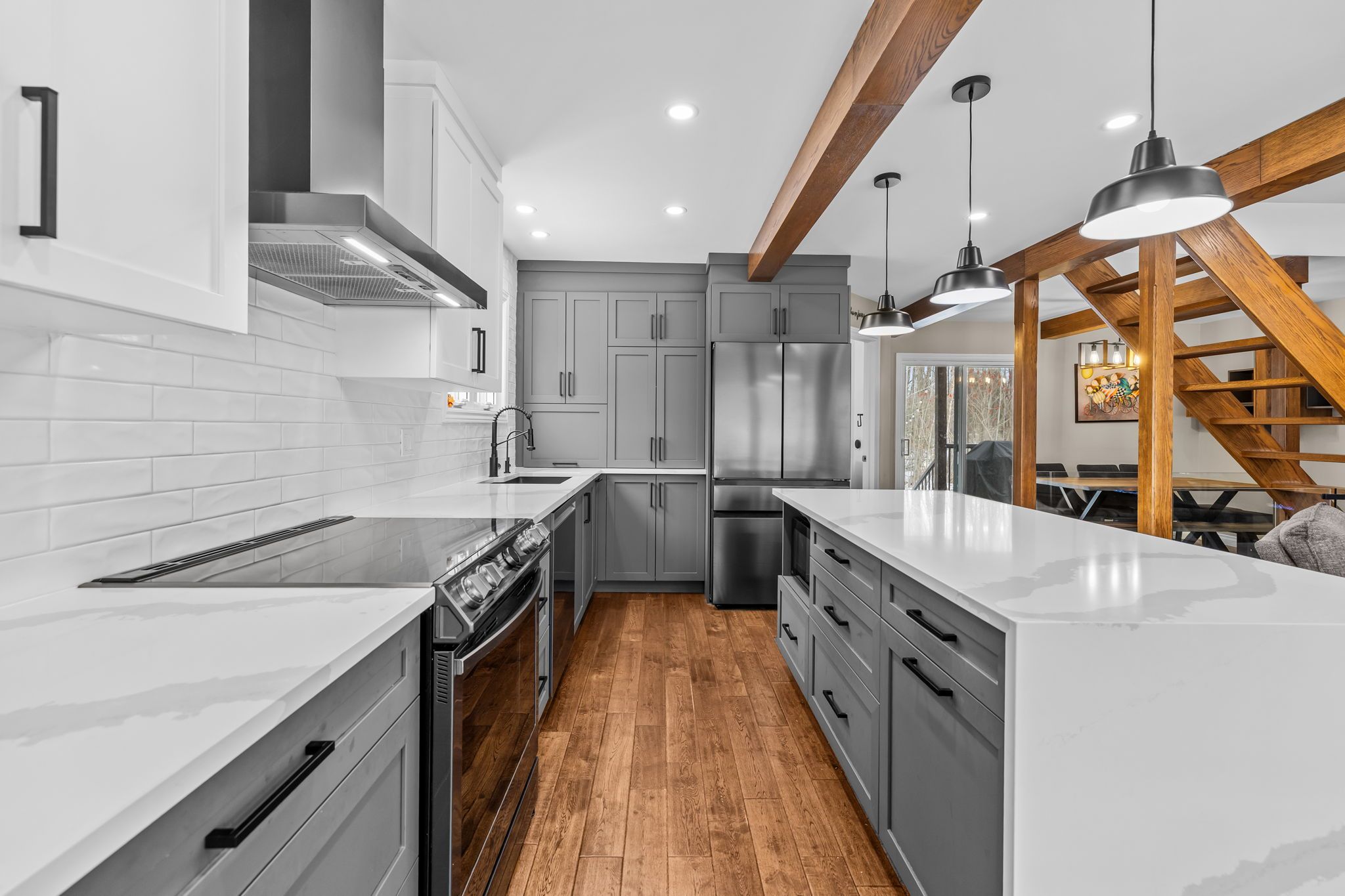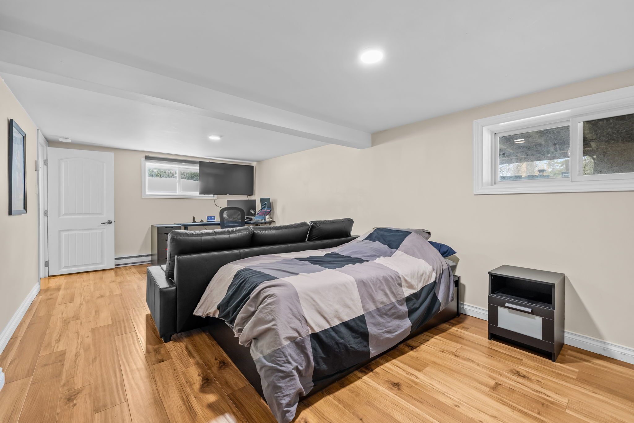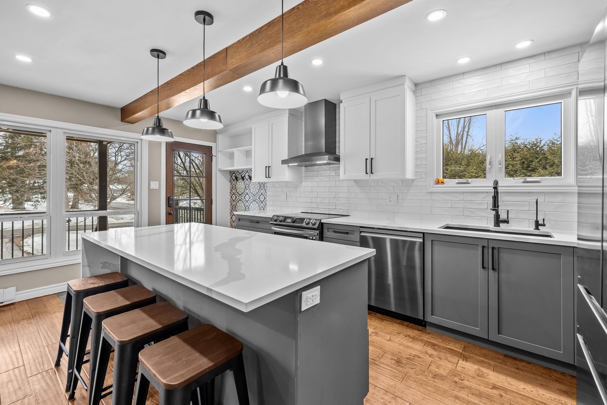 • Bright open-concept living space with large windows and natural light.