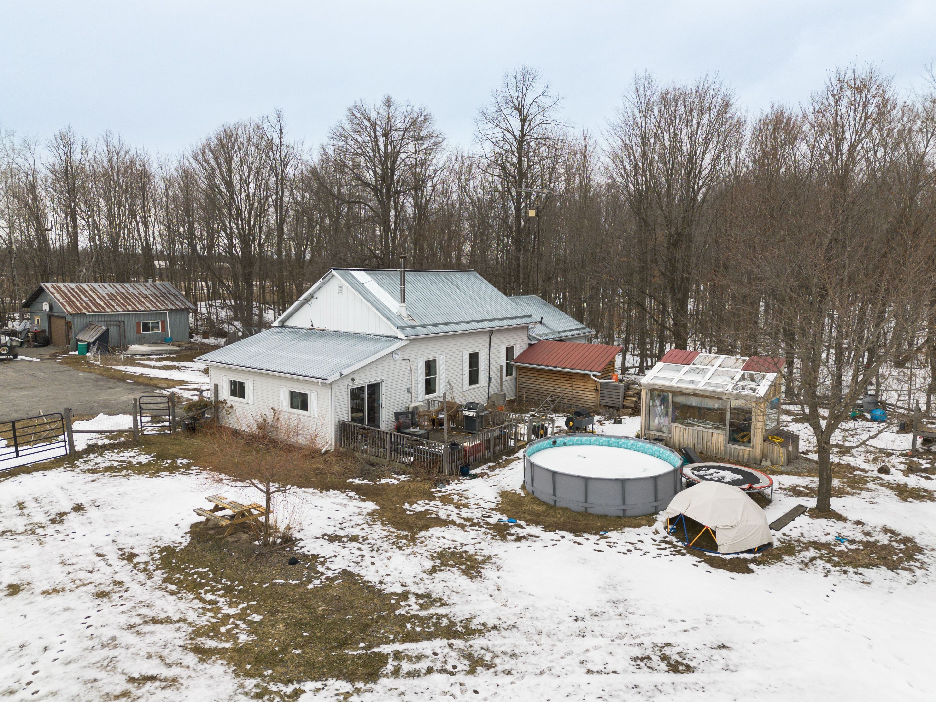 • Large 30 x 30 steel garage with a paved driveway for convenience.