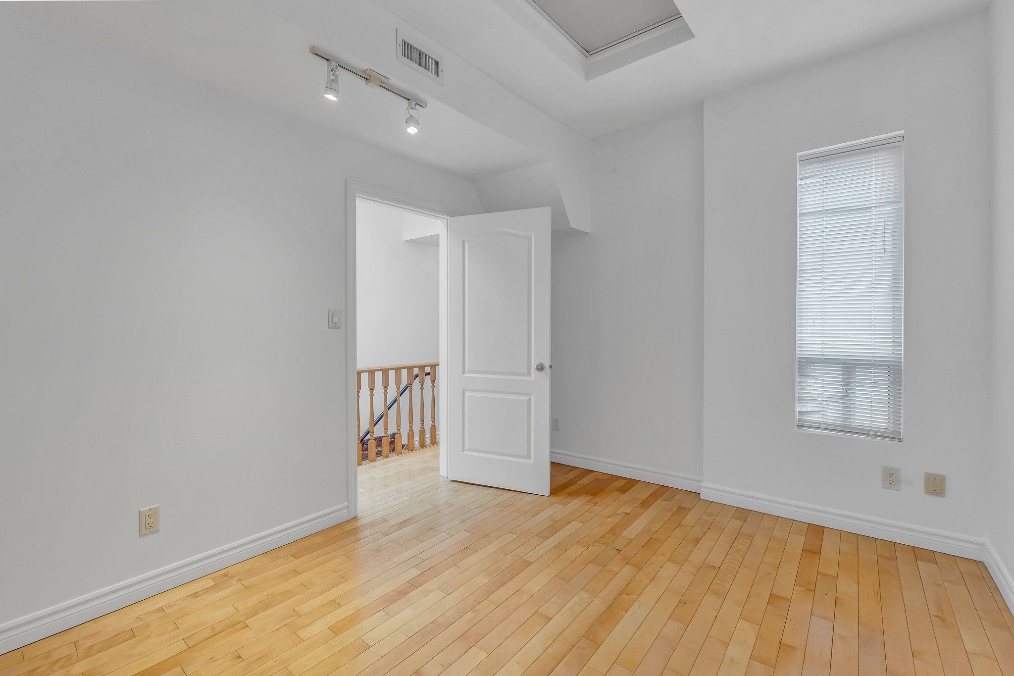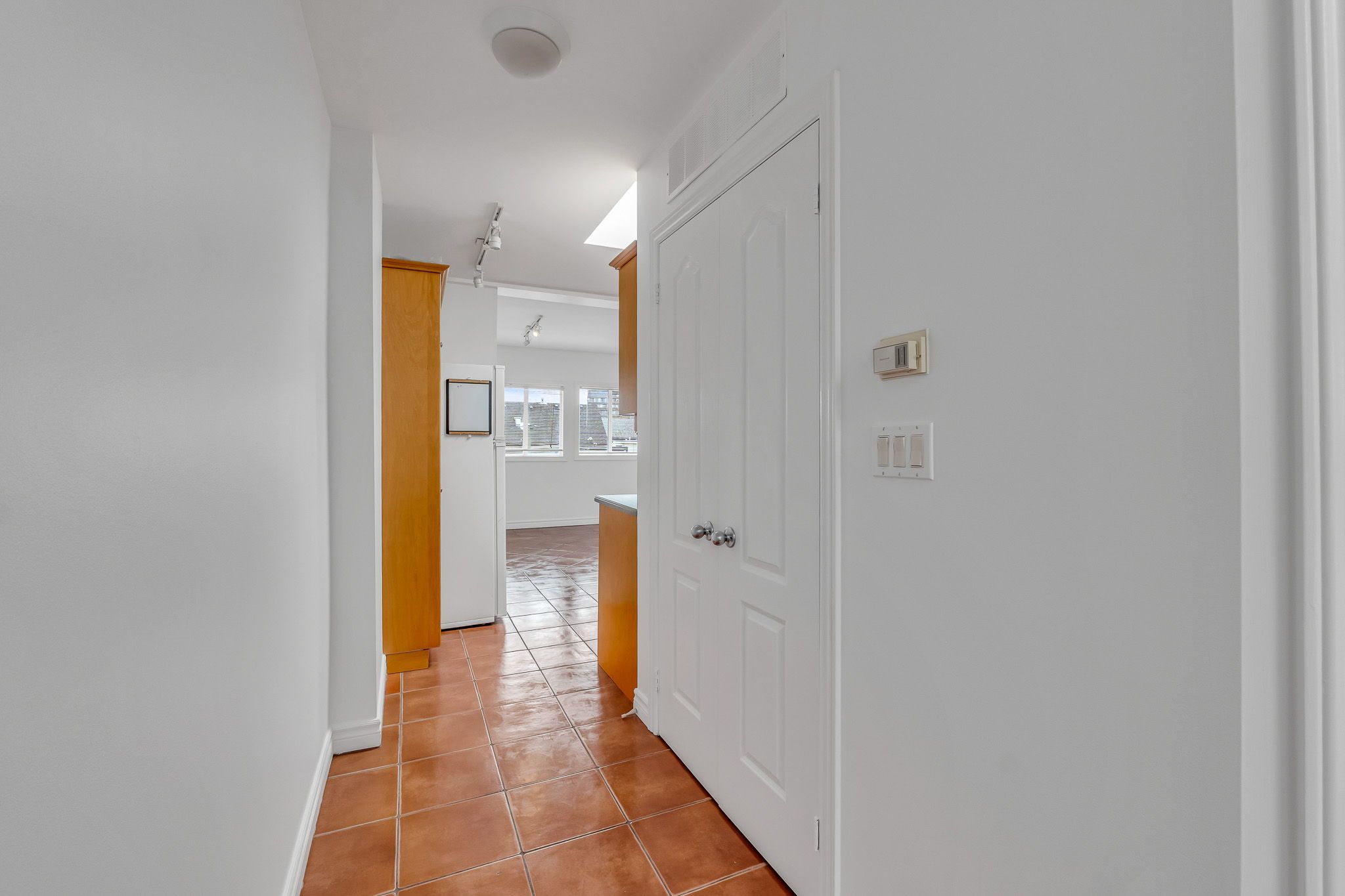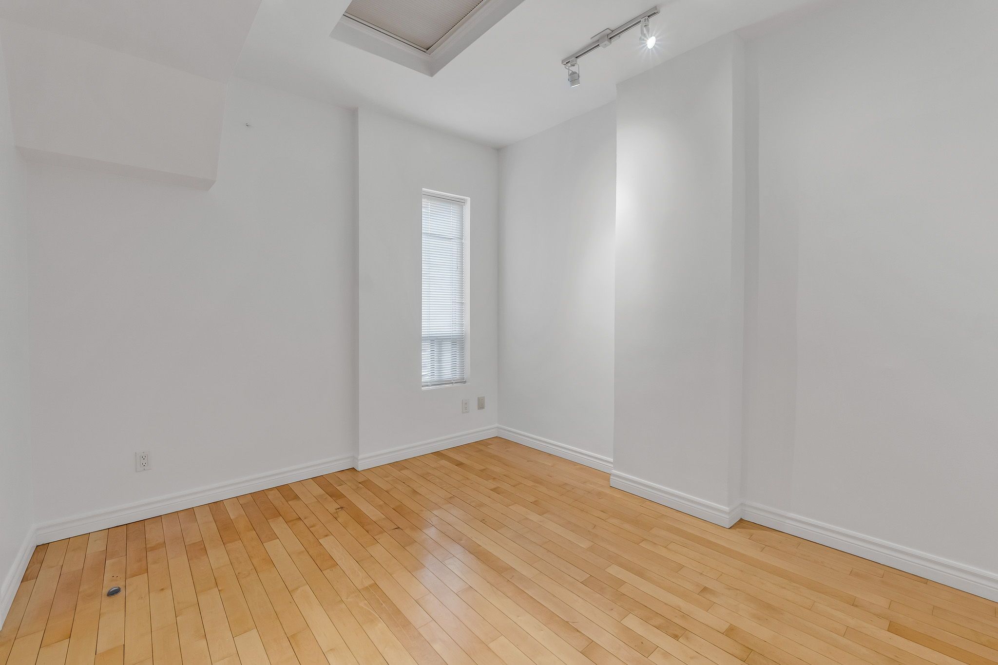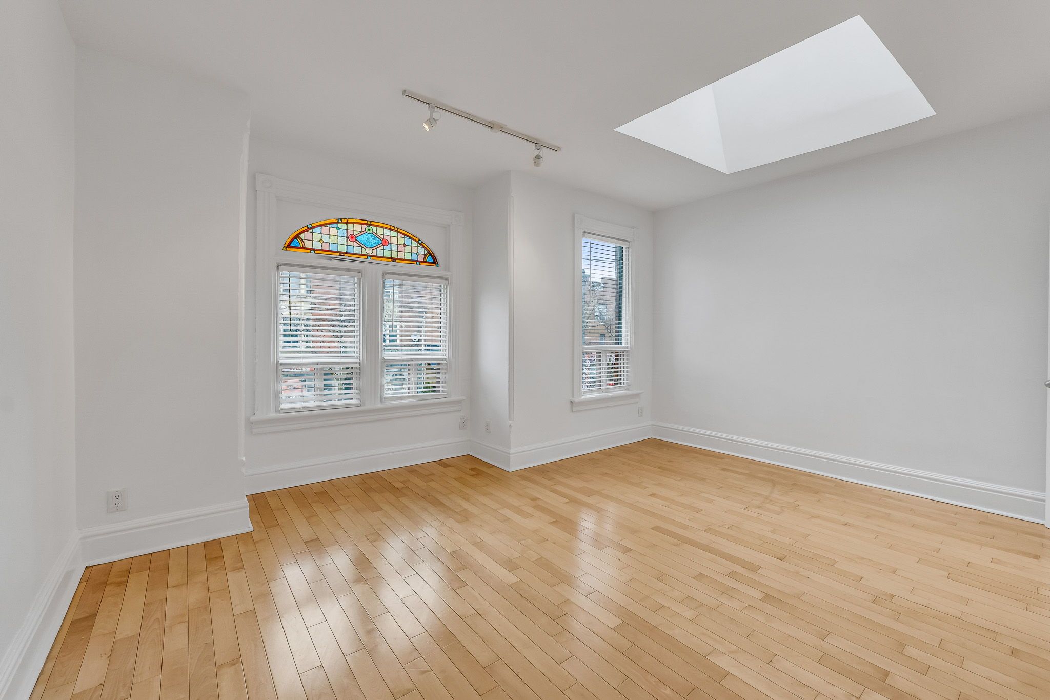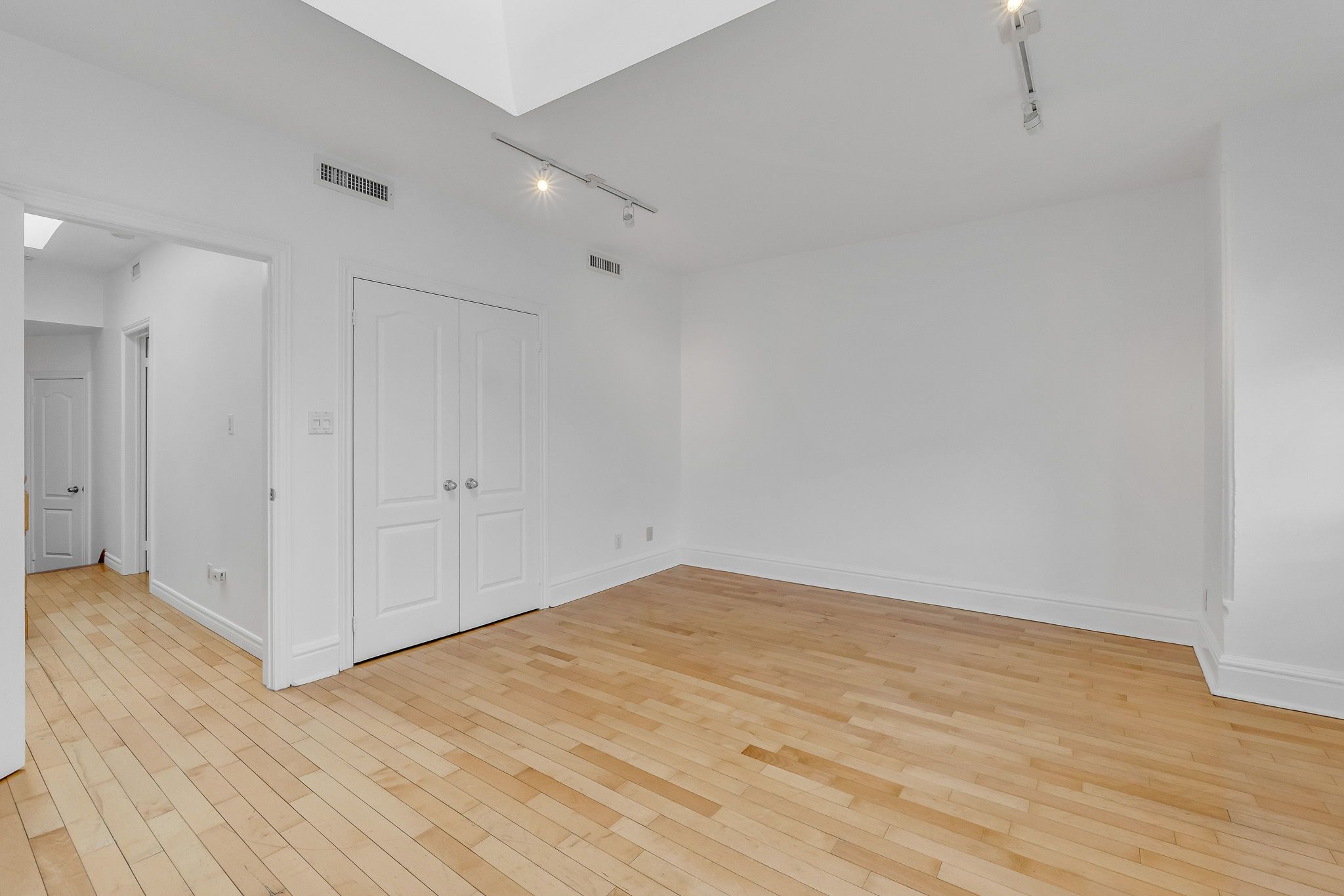 • Oversized two-bedroom apartment filled with natural light from four skylights.
