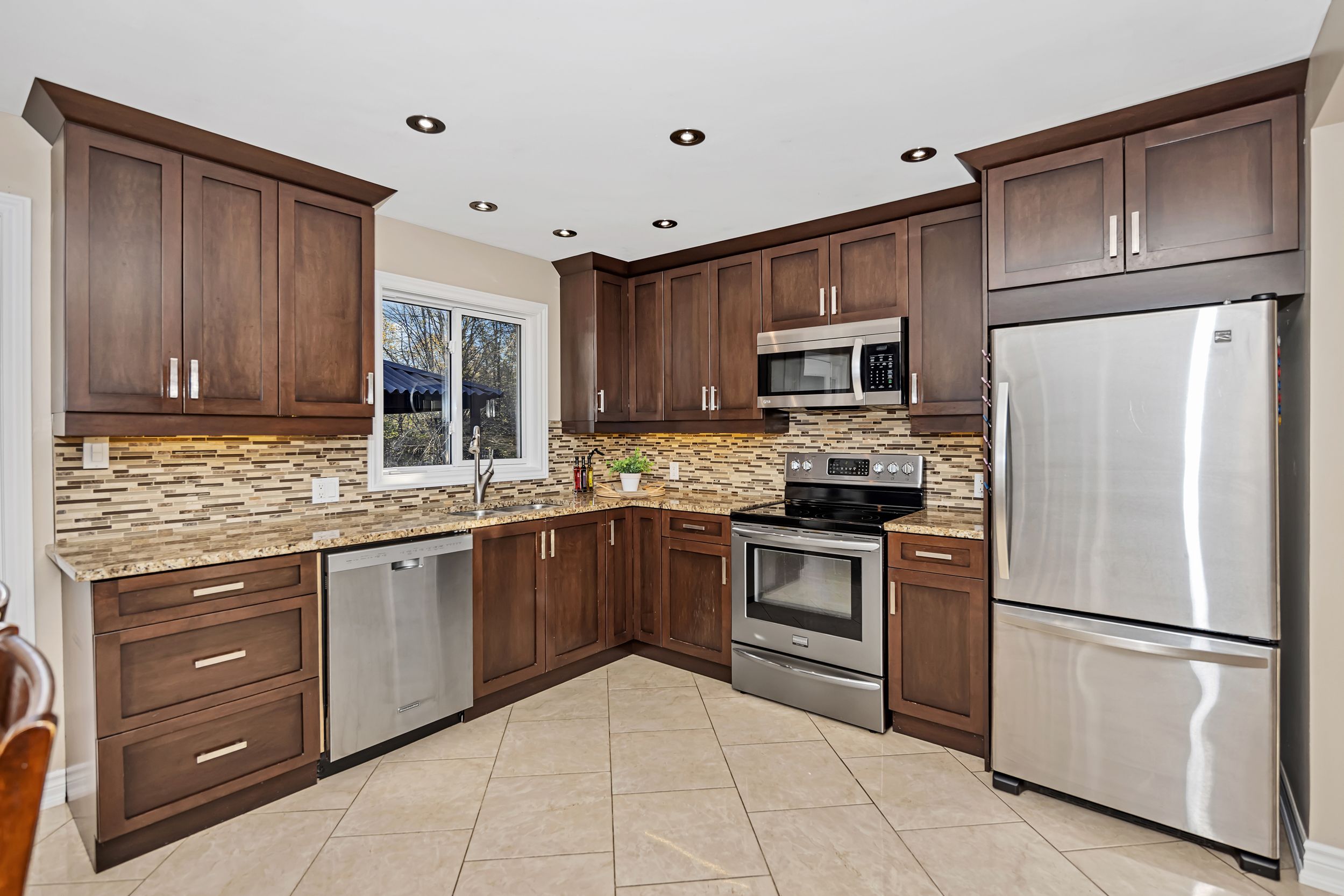 An incredible opportunity to own a piece of paradise in tranquil forest hill! A low traffic and quiet street full of friendly neighbours, 1115 des cerisiers showcases incredible curb appeal, a tree lined property for privacy, and generous lot size for backyard enjoyment. This updated home features piles of upgrades, and many luxury features, with exceptional renovation work and high end finishes. A customized layout features a gorgeous open kitchen with tile flooring, granite counter tops, stainless steel appliances, in floor heating, solid wood flush cabinetry w/crown moulding, and under mount lighting. Open living room is bright and pristine, with neutral paint throughout. Two bedrooms up, hardwood floors throughout. Modified extra large primary suite feels like a private retreat, with california walk through closet, and exceptional luxurious five piece bathroom. Simply stunning. Second bathroom also spares no expense, showcasing upscale materials and additional niche blocks. Downstairs enjoy a large, warm toned rec room, full bedroom, large office/flex room, and generous laundry/storage/utility room. Potential for lower level full bathroom as well! Overall a very well designed, functional lower level.