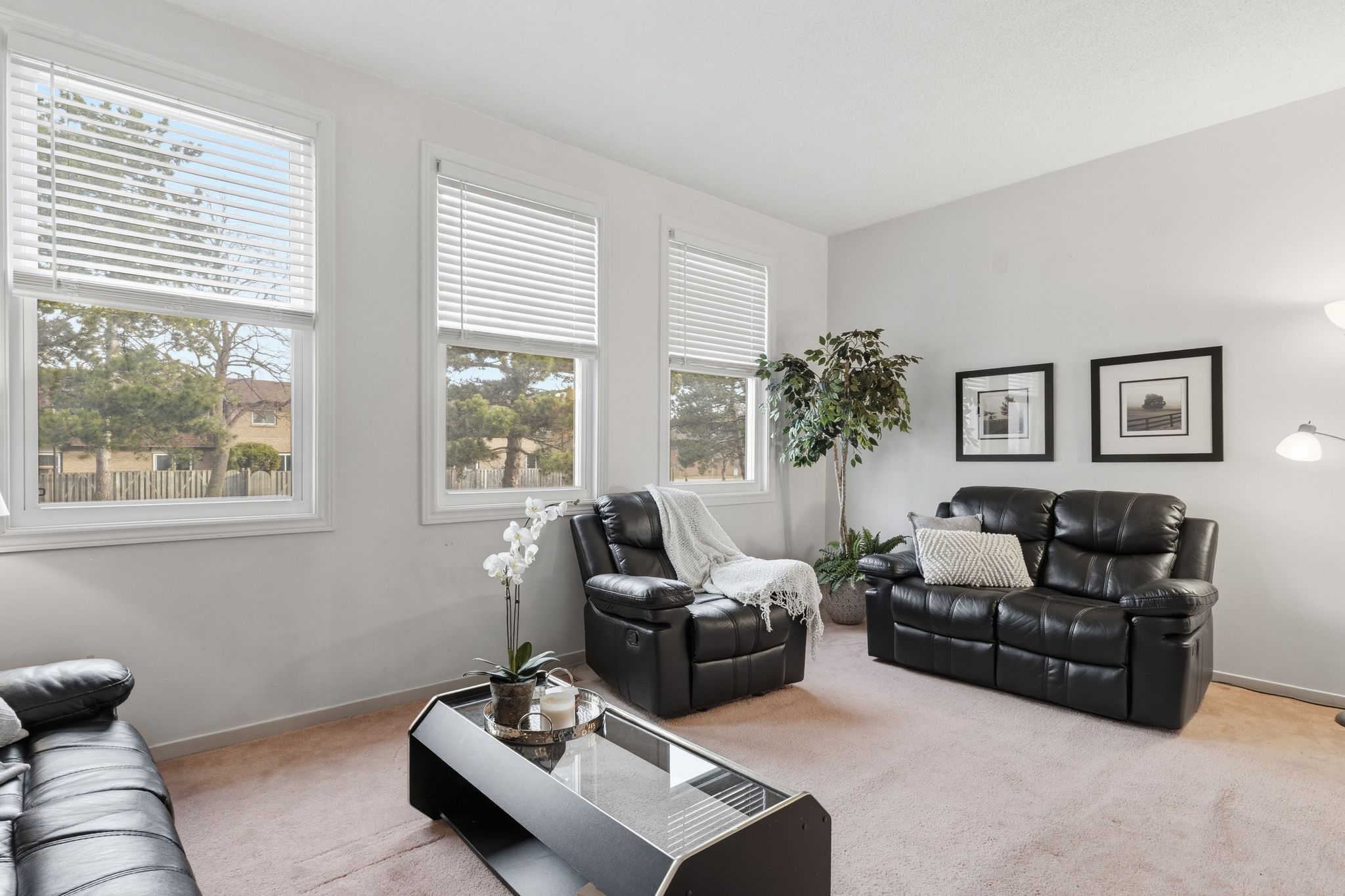 • Spacious living room overlooks a common area backyard park.