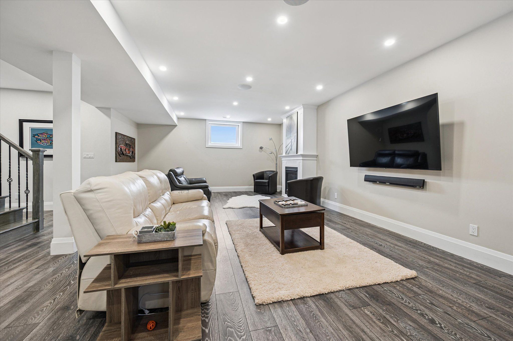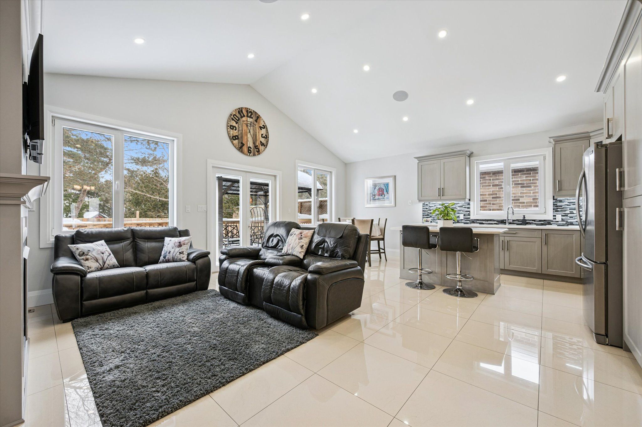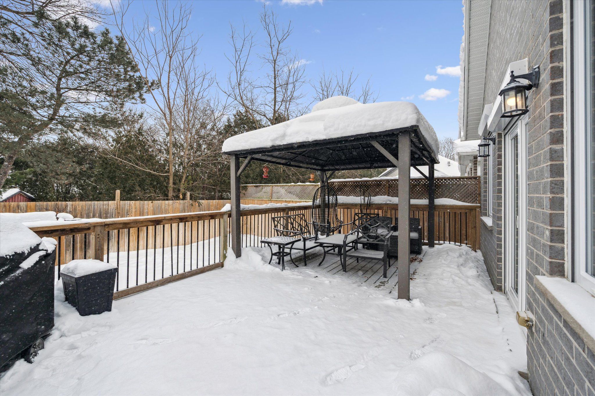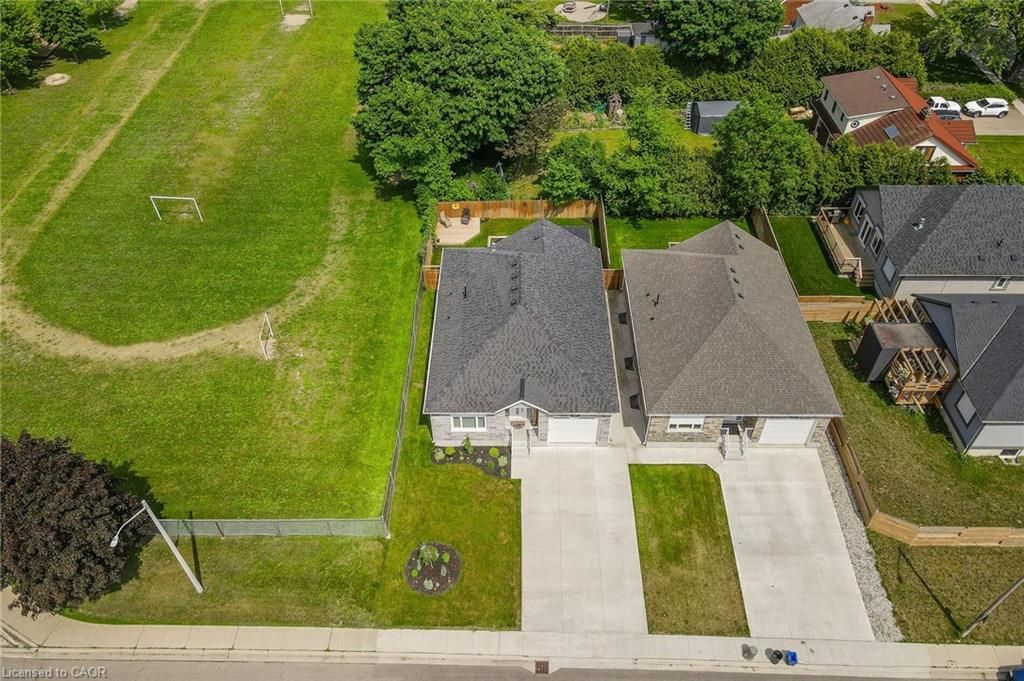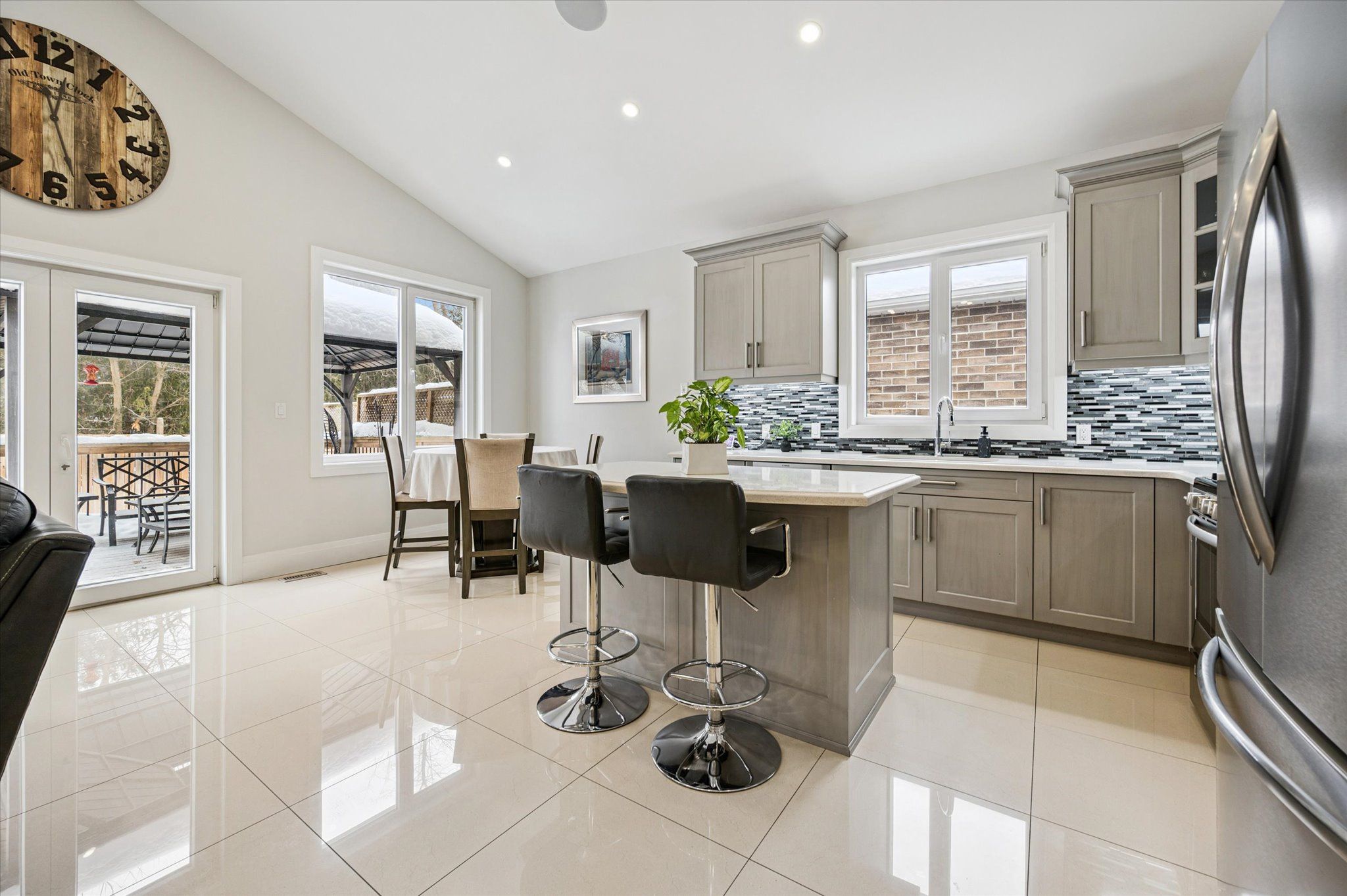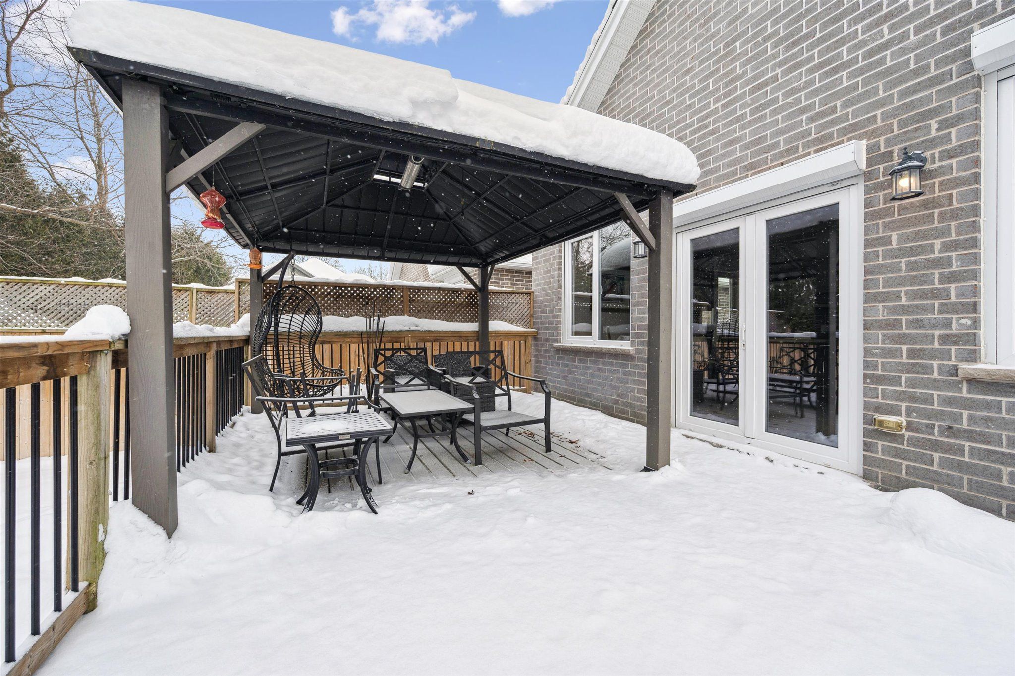 Welcome home, where luxury feels effortless and every detail has been crafted for you with care. Built with the precision and finishes a builder would choose for their own family, this 3-bedroom, 3-bath residence blends elevated design with genuine comfort, creating a space that simply feels wonderful to live in. The sophisticated entry door makes a striking first impression-beautiful, secure, and a preview of the quality inside. Step into a space with soaring ceilings, warm heated flooring throughout the main floor, and a layout designed for both everyday ease and memorable gatherings. The primary suite is a true retreat with a coffered ceiling, organized walk-in closet, and a spa-inspired ensuite with double vanity and glass walk-in shower. Natural light pours through expansive rear windows and french doors, framing peaceful backyard views. Automated exterior shutters offer blackout comfort, enhanced security, sound reduction, and notable energy savings-ideal for quiet mornings or deep, restful sleep. The kitchen blends style and function with upgraded cabinetry, quartz countertops, premium appliances, and a generous island perfect for cooking and entertaining. Two elegant gas fireplaces add warmth and ambiance, while a russound whole-home audio system with four zones sets the mood throughout. The fully finished lower level extends your living space with 9' ceilings, a spacious recreation room, full bathroom, and heated hydronic flooring. Outside, the backyard feels like a private escape: lush landscaping maintained by a rainbird irrigation system, open greenspace beside the home-used only weekday business hours - quiet on evenings, weekends and summer. Close to the 401, scenic trails, excellent schools, and shopping, this location offers both convenience and calm. With parking for five, a concrete driveway, inside-entry garage, and a move-in-ready presentation, this exceptional home invites you to simply move in and start living!