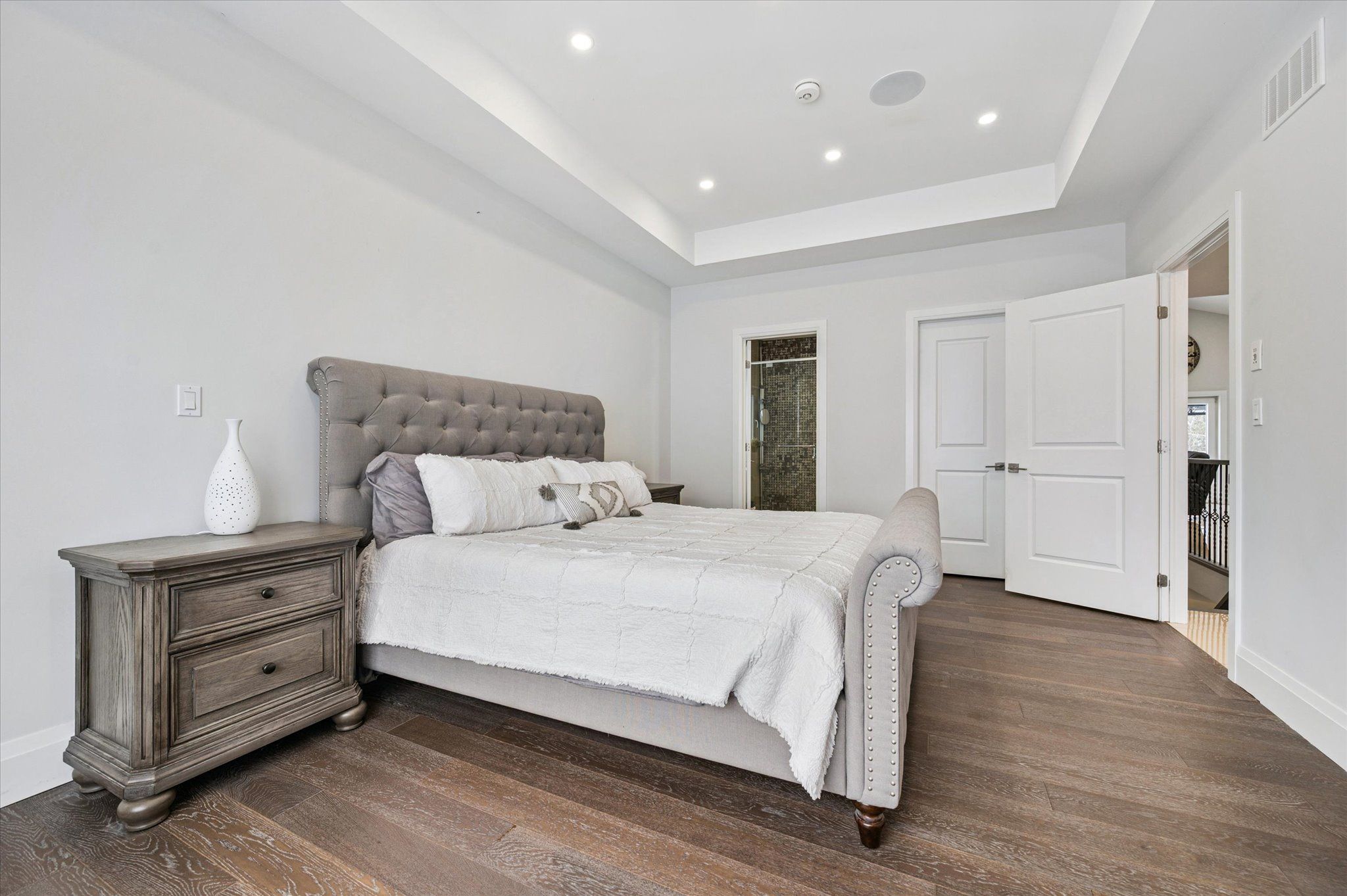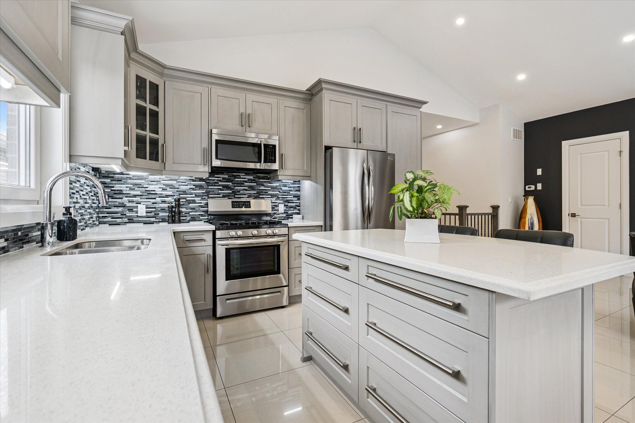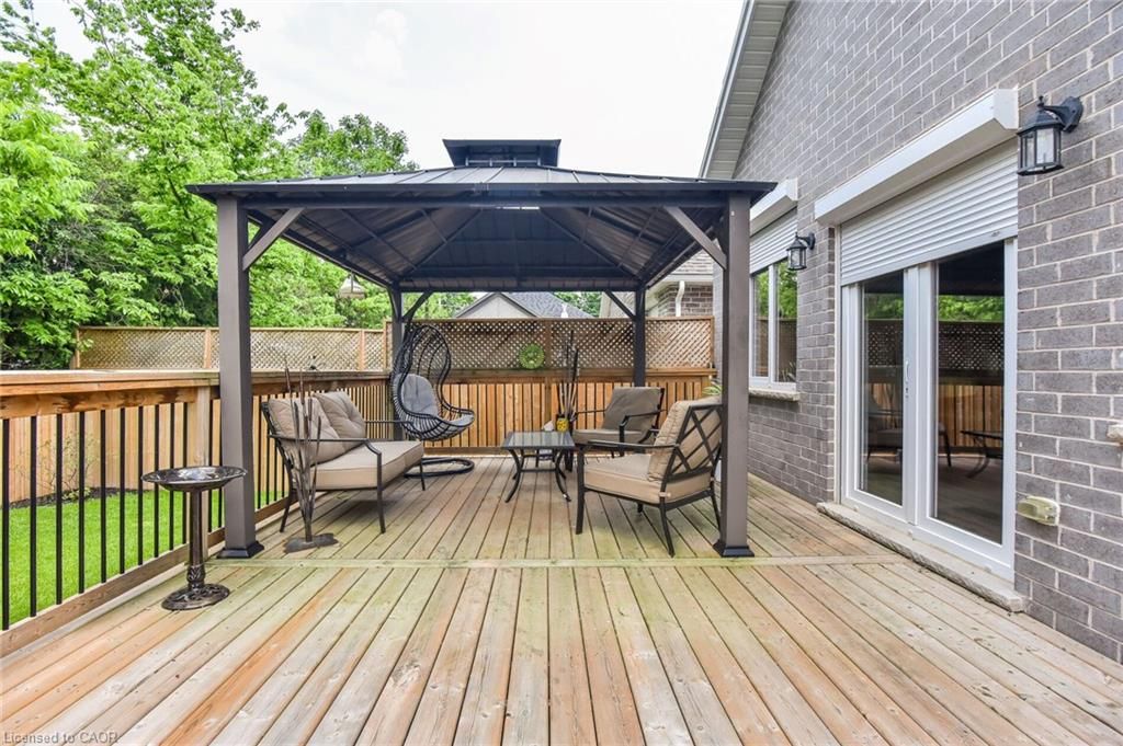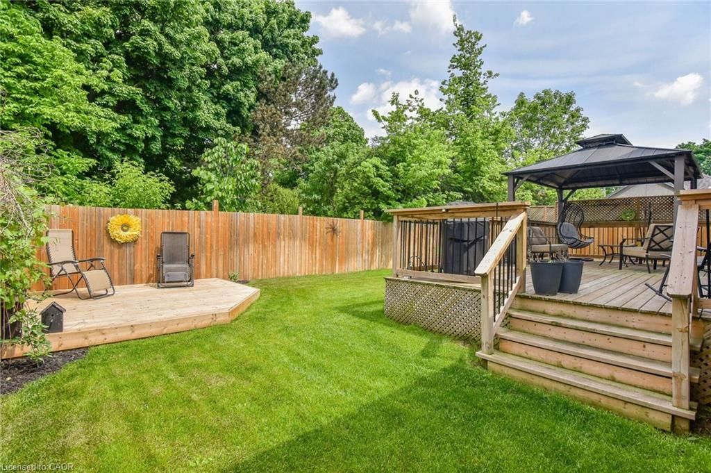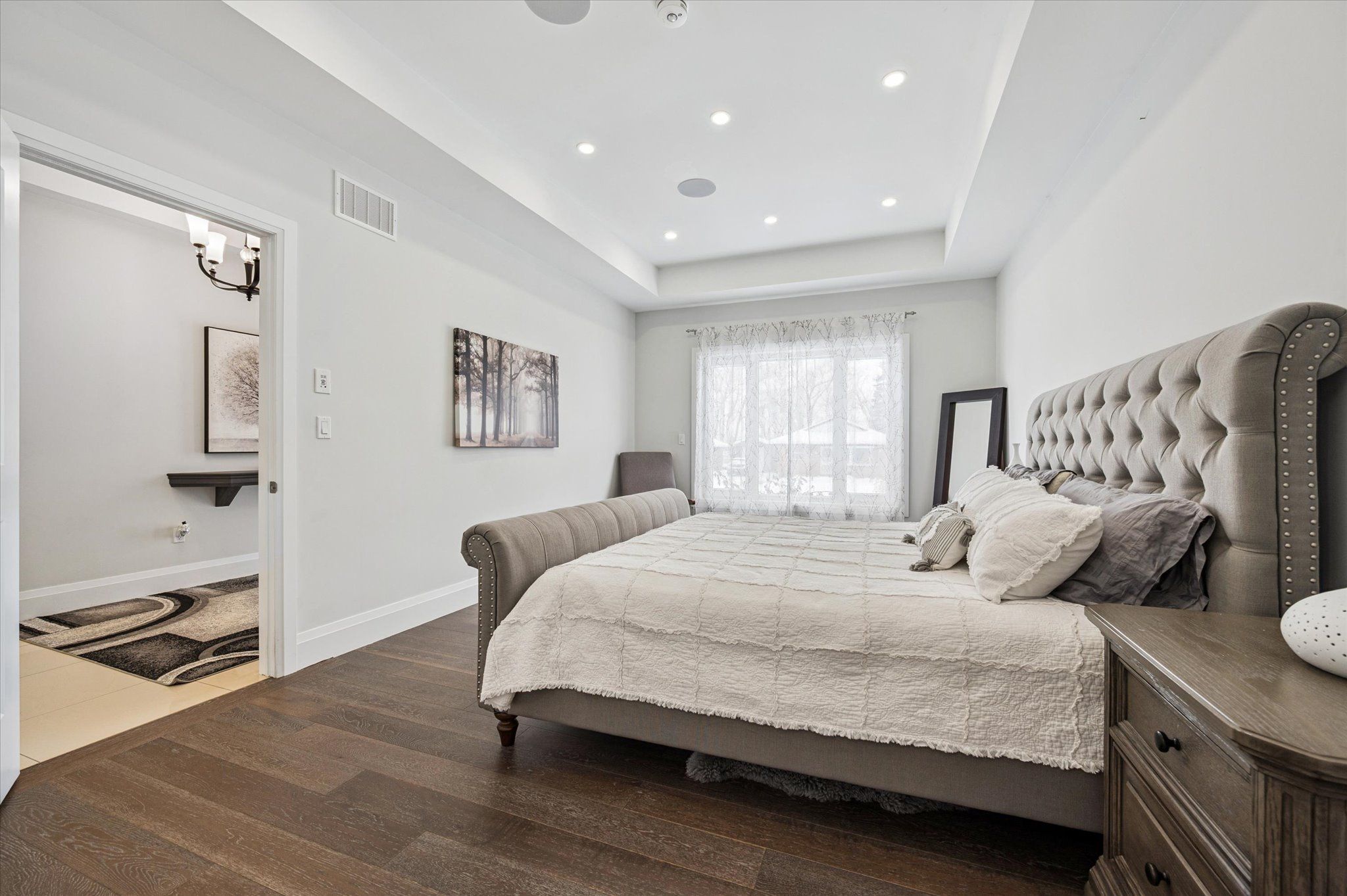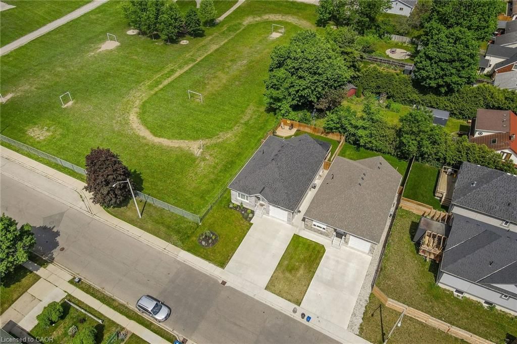 Welcome home, where luxury feels effortless and every detail has been crafted for you with care. Built with the precision and finishes a builder would choose for their own family, this 3-bedroom, 3-bath residence blends elevated design with genuine comfort, creating a space that simply feels wonderful to live in. The sophisticated entry door makes a striking first impression-beautiful, secure, and a preview of the quality inside. Step into a space with soaring ceilings, warm heated flooring throughout the main floor, and a layout designed for both everyday ease and memorable gatherings. The primary suite is a true retreat with a coffered ceiling, organized walk-in closet, and a spa-inspired ensuite with double vanity and glass walk-in shower. Natural light pours through expansive rear windows and french doors, framing peaceful backyard views. Automated exterior shutters offer blackout comfort, enhanced security, sound reduction, and notable energy savings-ideal for quiet mornings or deep, restful sleep. The kitchen blends style and function with upgraded cabinetry, quartz countertops, premium appliances, and a generous island perfect for cooking and entertaining. Two elegant gas fireplaces add warmth and ambiance, while a russound whole-home audio system with four zones sets the mood throughout. The fully finished lower level extends your living space with 9' ceilings, a spacious recreation room, full bathroom, and heated hydronic flooring. Outside, the backyard feels like a private escape: lush landscaping maintained by a rainbird irrigation system, open greenspace beside the home-used only weekday business hours - quiet on evenings, weekends and summer. Close to the 401, scenic trails, excellent schools, and shopping, this location offers both convenience and calm. With parking for five, a concrete driveway, inside-entry garage, and a move-in-ready presentation, this exceptional home invites you to simply move in and start living!