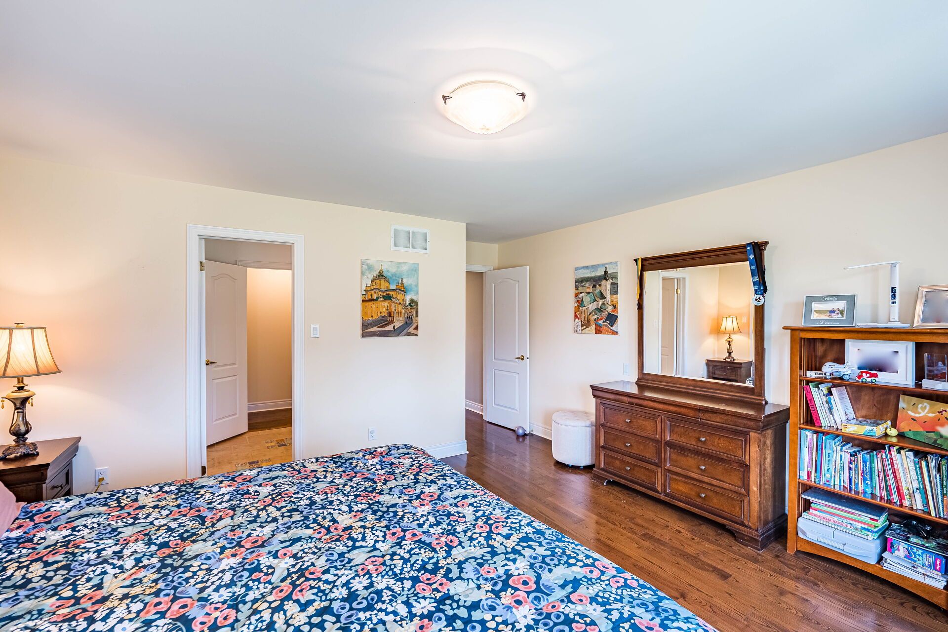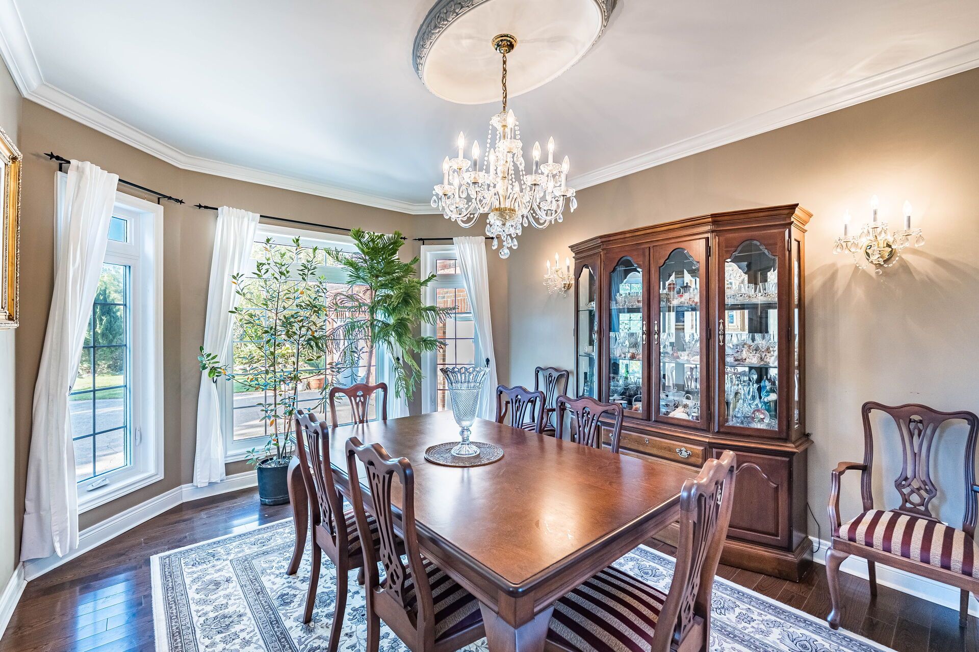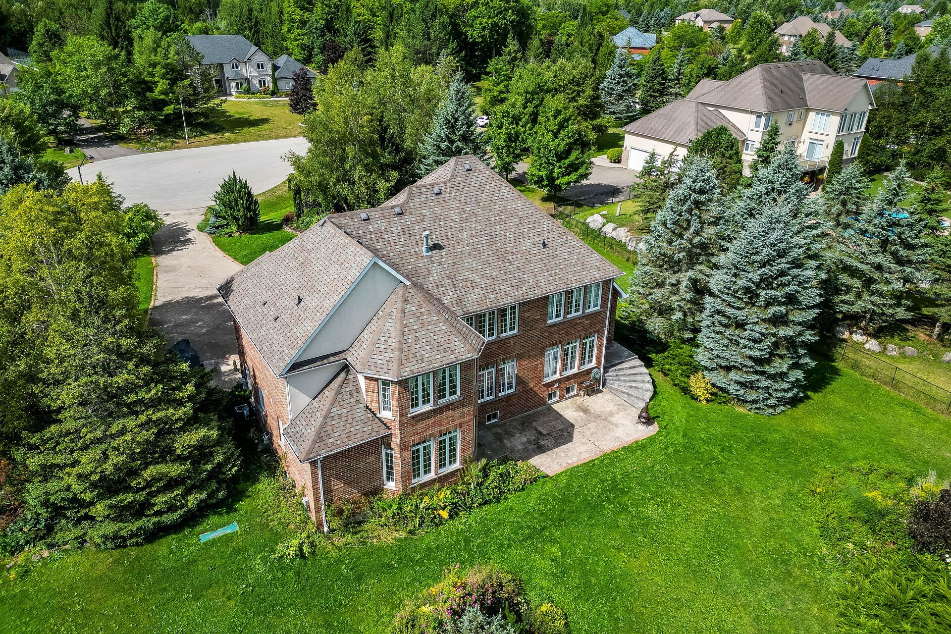 Step into this luxurious 5-bedroom custom-built residence, ideally positioned on a quiet court in the heart of brookville. Nestled on a breathtaking 2-acre lot, this exceptional churchill estates home offers over 4,000 sq ft of elegant living space, privacy, and natural beauty. The main level features a spacious primary suite with a private ensuite, while the heart of the home is an entertainers dream: a chef-inspired kitchen with stainless steel appliances, centre island, and expansive breakfast area that opens to a large deck, perfect for indoor-outdoor living. The beautifully landscaped backyard provides a peaceful retreat surrounded by mature trees. Upstairs, youll find four additional generously sized, light-filled bedrooms, each with walk-in closets. Additional highlights include main floor laundry, a large mudroom, ample closet and storage space, and an oversized driveway with parking for 10+ vehicles. Located just minutes from major highways, this home combines luxury, comfort, and convenience in one of miltons most sought-after communities.