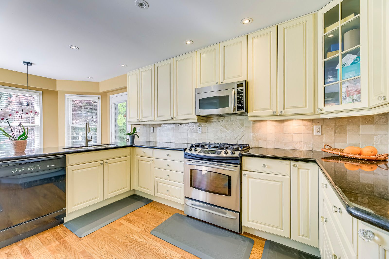 • Kitchen equipped with granite countertops and stainless steel appliances.