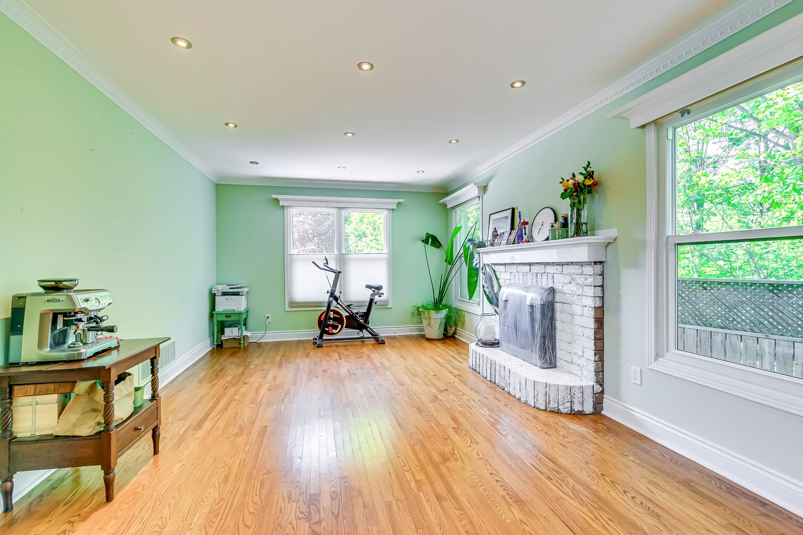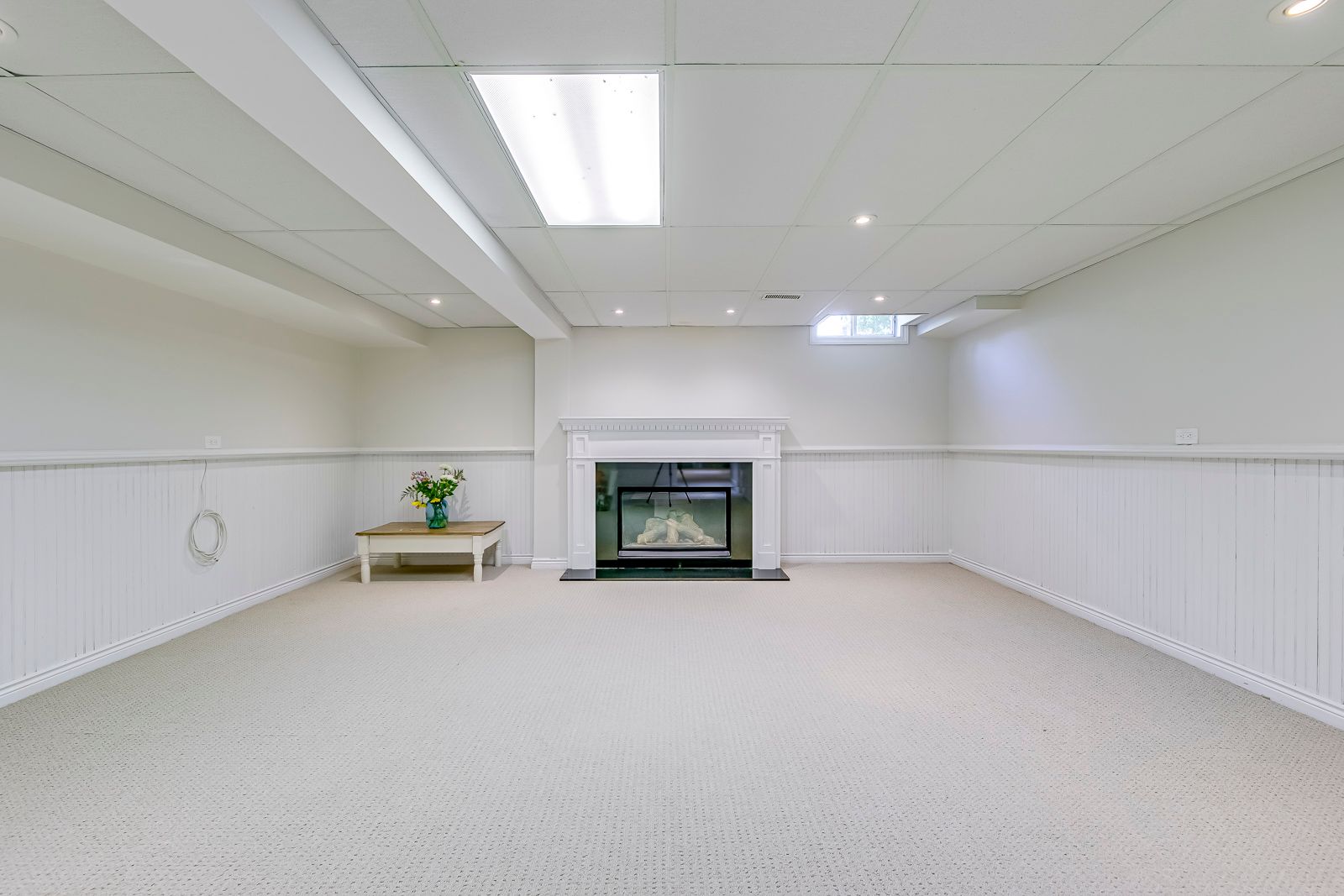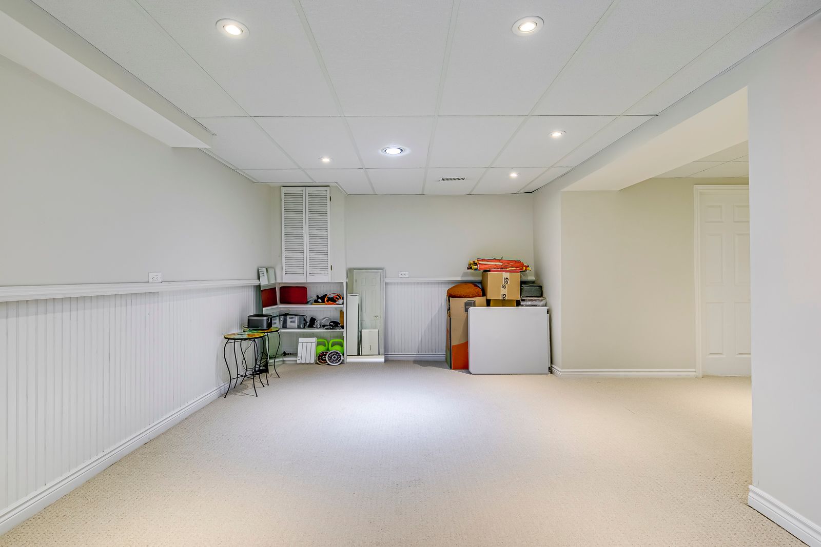 • Finished basement includes a rec room, gym area, and extra bedroom.
