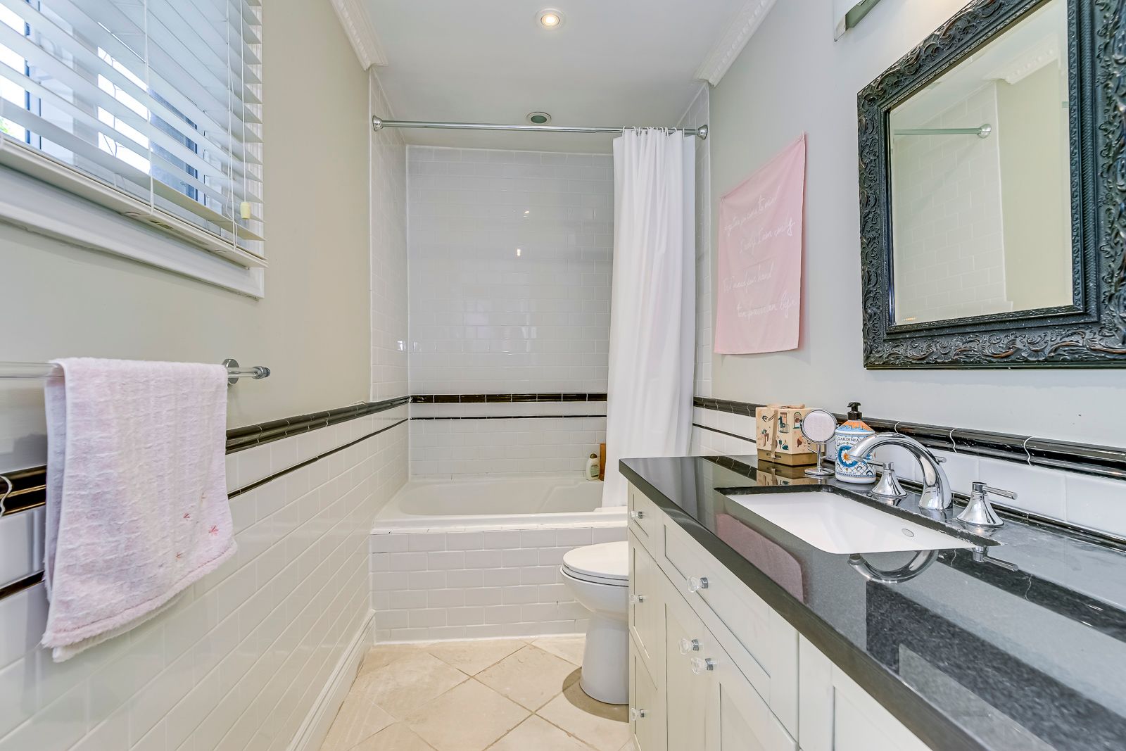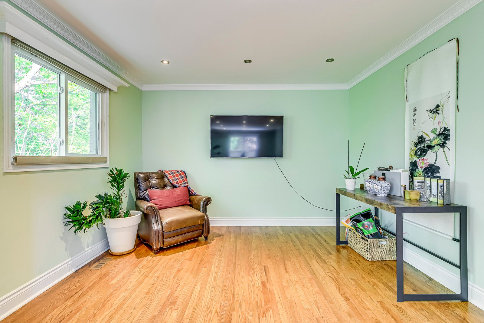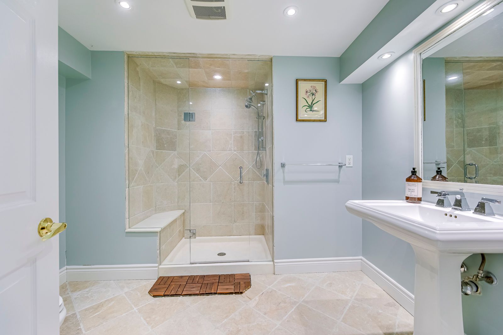 • Finished basement includes a rec room, gym area, and extra bedroom.
